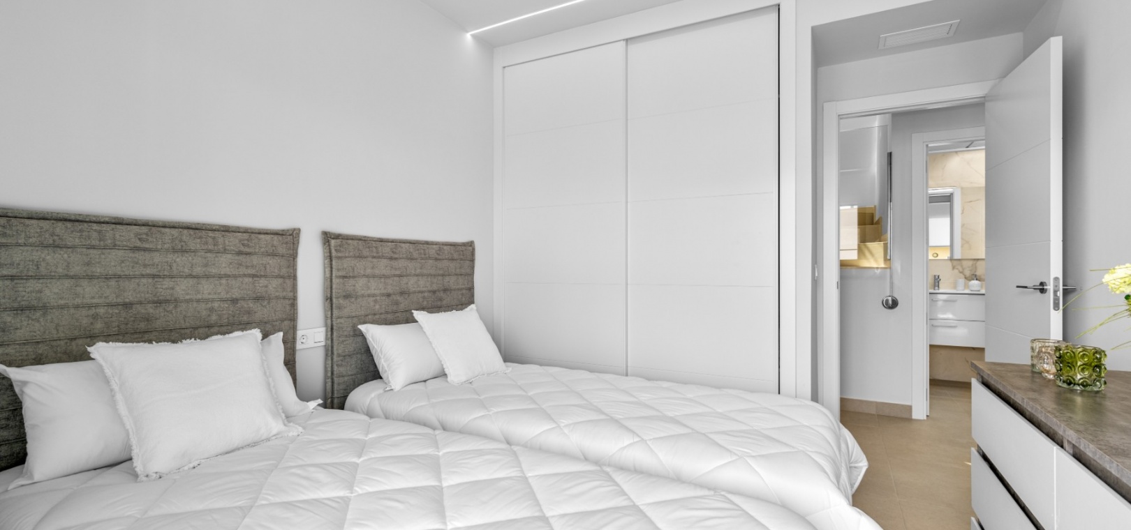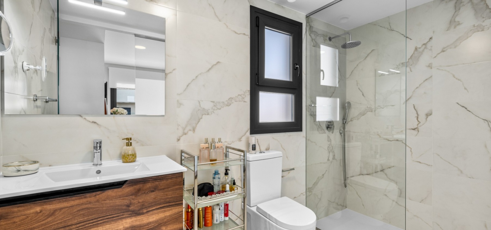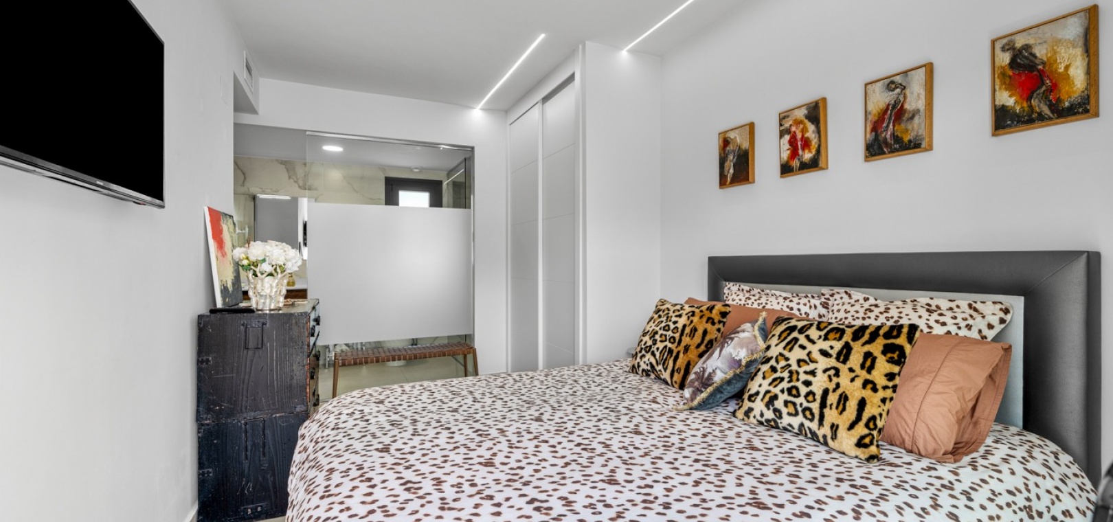 De woning beschikt over 3 ruime slaapkamers, waarvan één met een moderne ensuite badkamer, en in totaal 2 elegante badkamers. De lichte en open leefruimte loopt naadloos over in een royaal terras met een privésolarium waar u kunt genieten van een adembenemend uitzicht op zee.