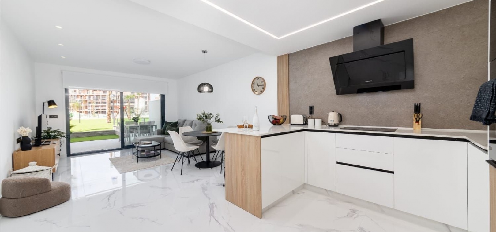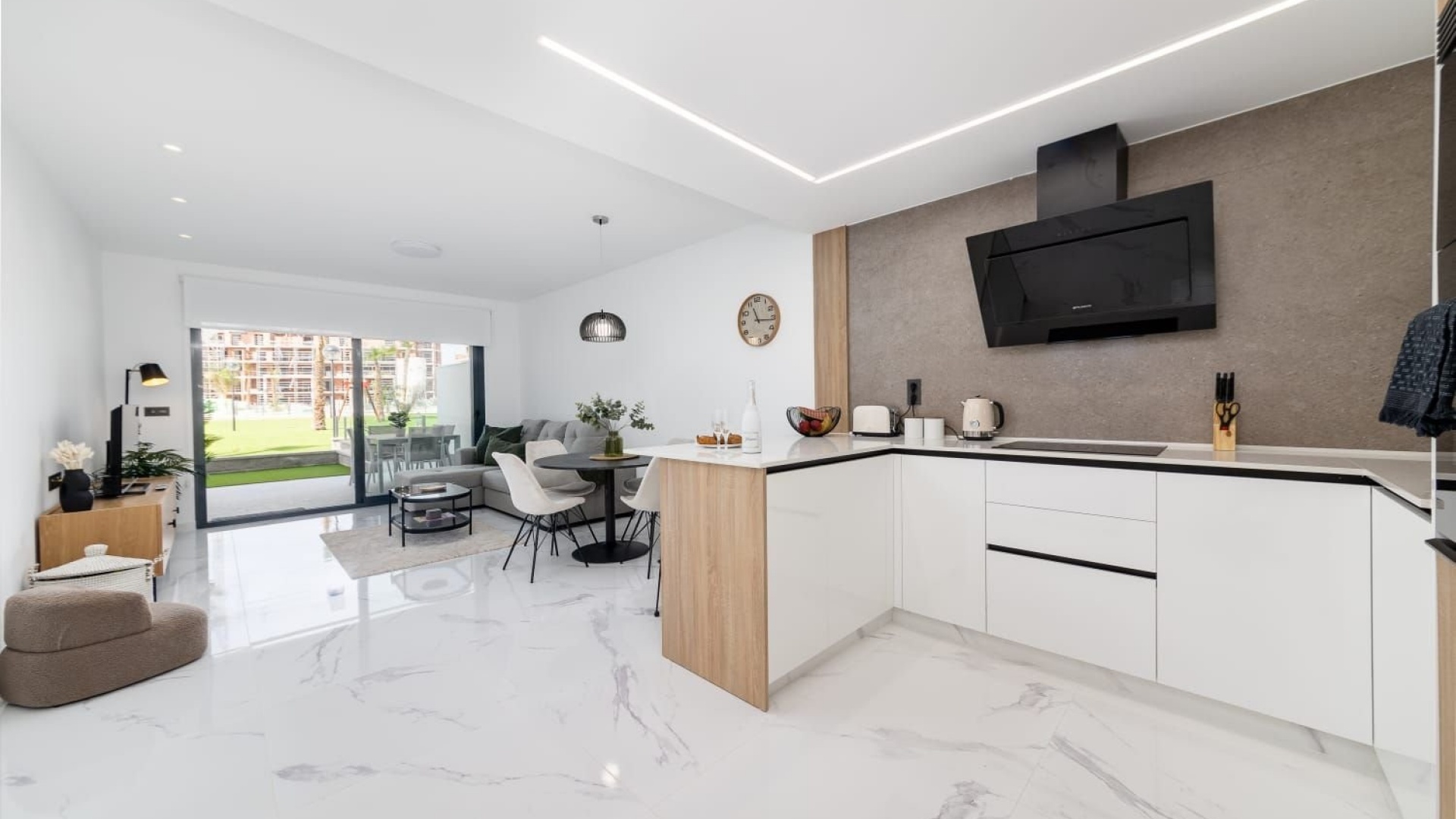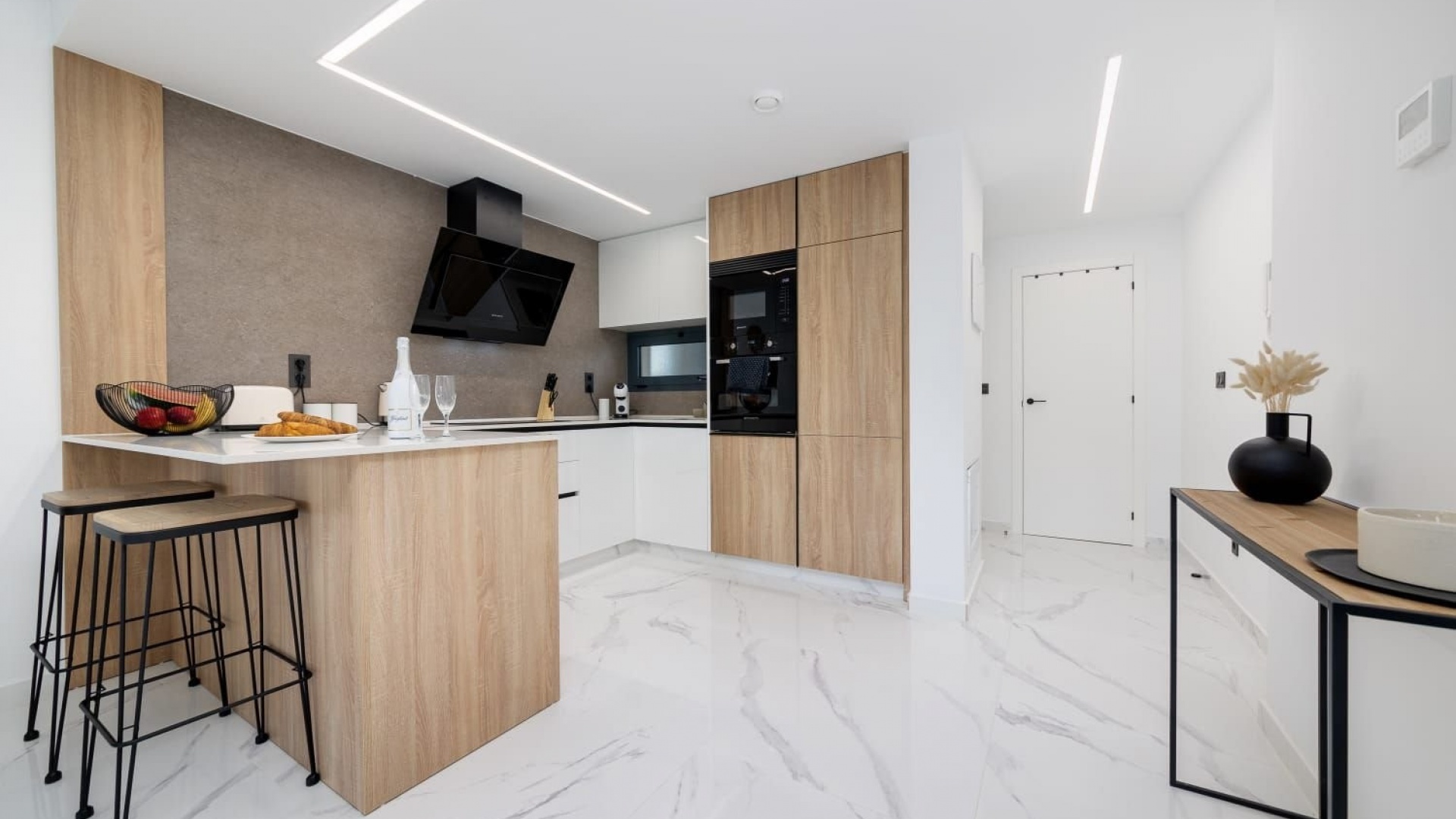 Deze woning, gebouwd in 2024, heeft een eigentijds design met hoogwaardige afwerkingen. De ligging op het zuidwesten zorgt voor veel natuurlijk licht, wat een warme en gastvrije sfeer creëert. Geniet van veilig comfort met een centraal airconditioningsysteem, dat het hele jaar door voor een aangename temperatuur zorgt.