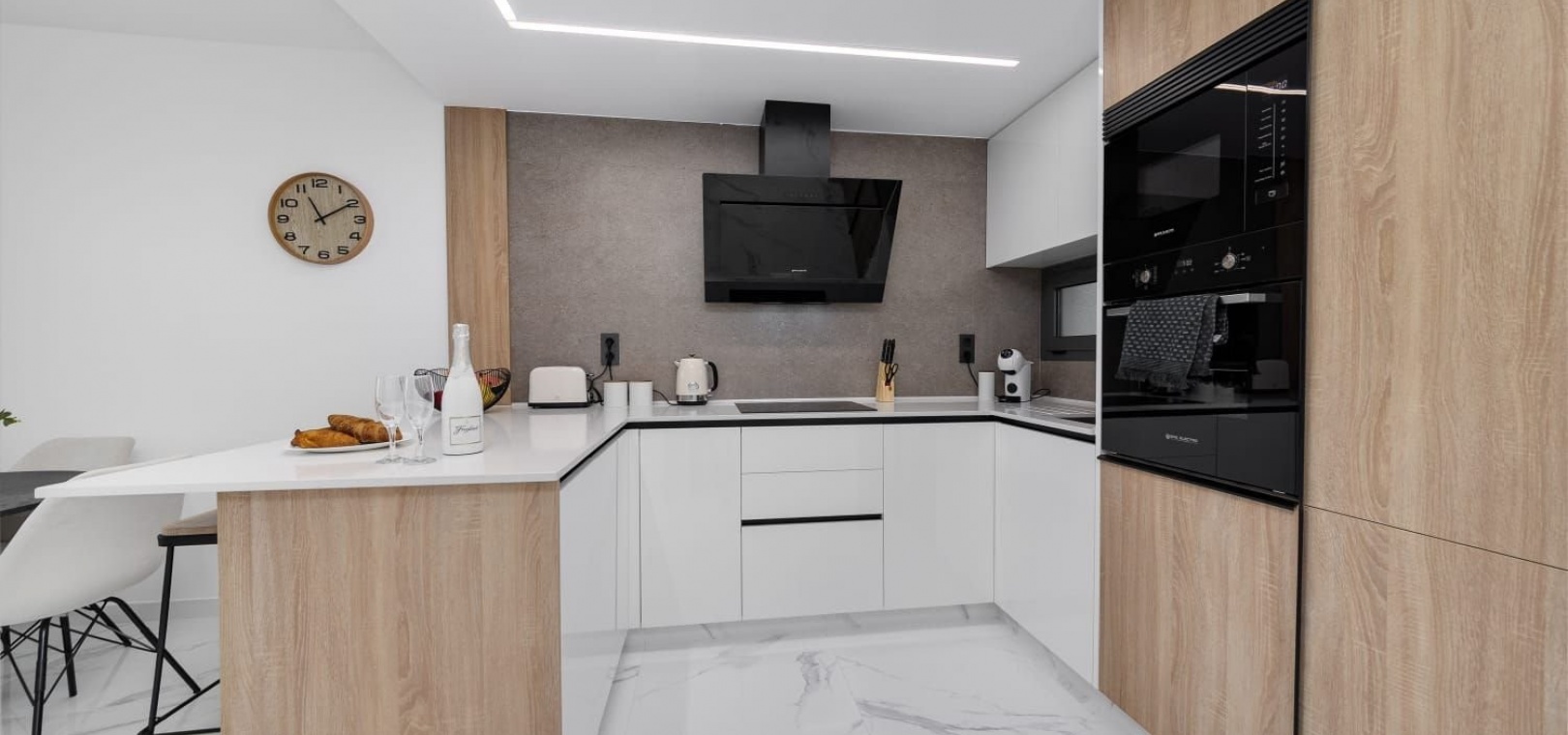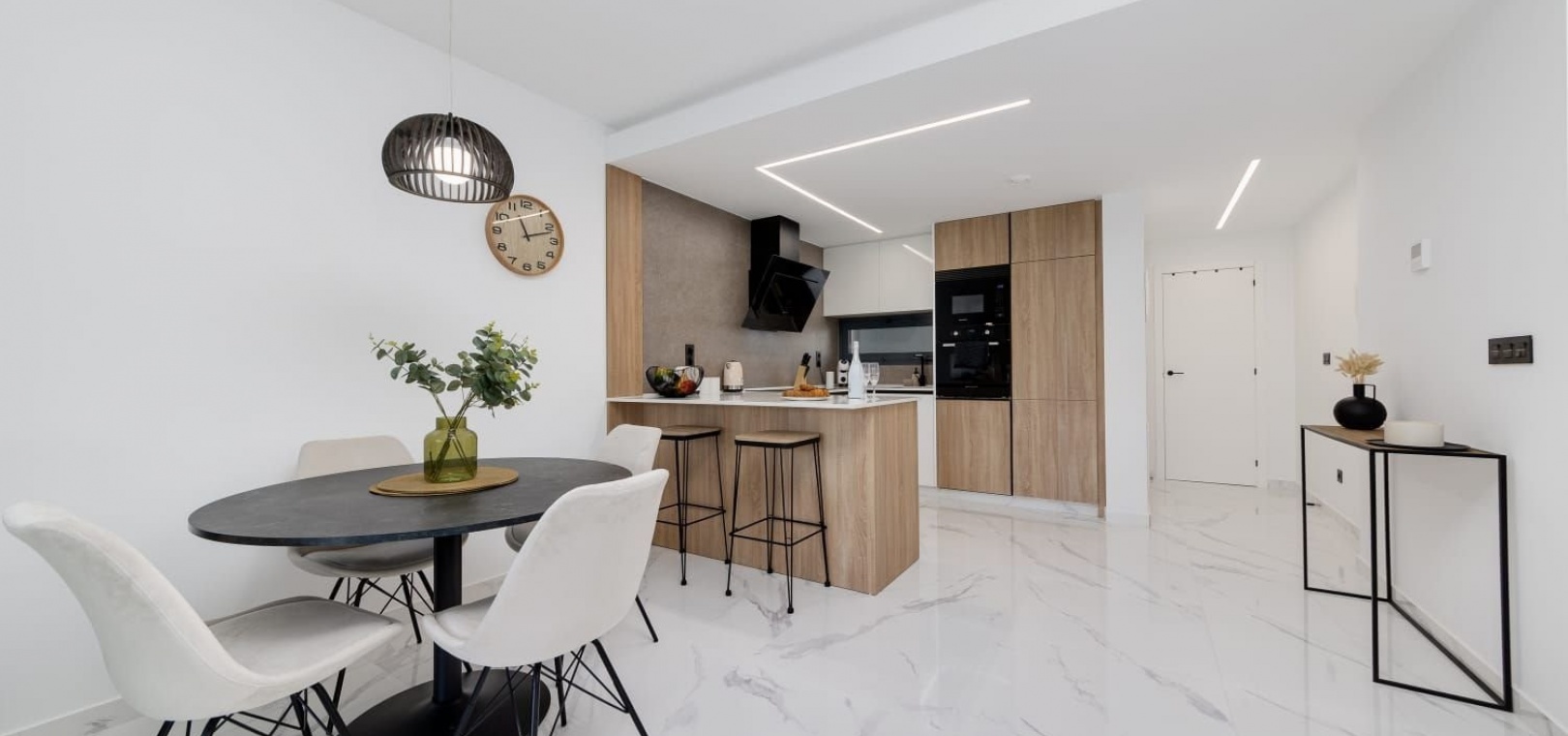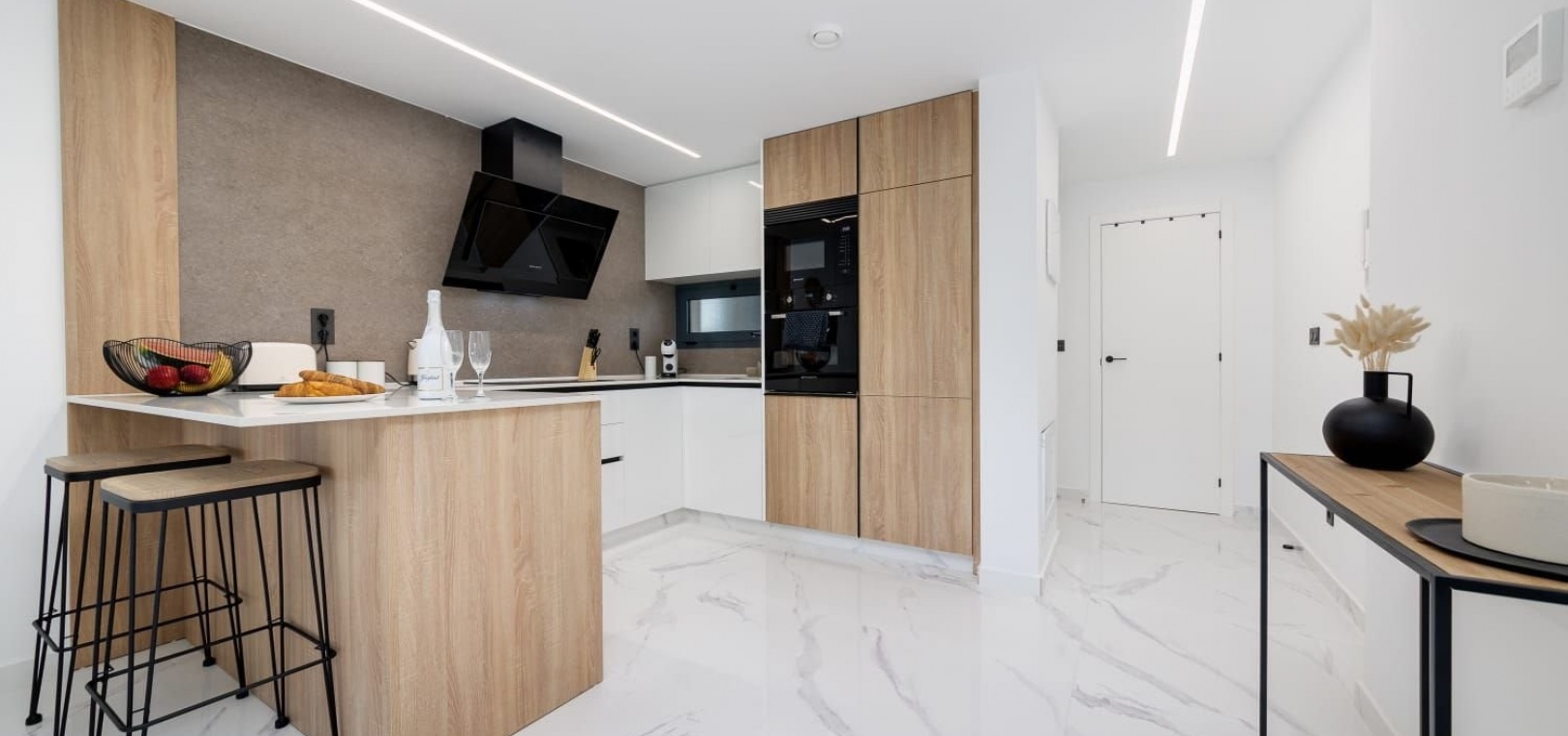 Deze woning, gebouwd in 2024, heeft een eigentijds design met hoogwaardige afwerkingen. De ligging op het zuidwesten zorgt voor veel natuurlijk licht, wat een warme en gastvrije sfeer creëert. Geniet van veilig comfort met een centraal airconditioningsysteem, dat het hele jaar door voor een aangename temperatuur zorgt.