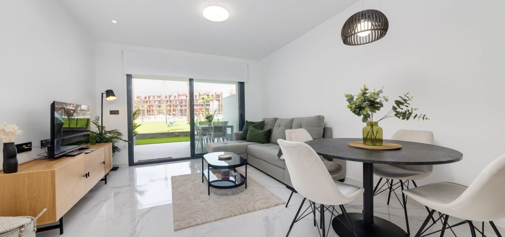 Te koop: een prachtig appartement op de begane grond in de gewilde wijk El Raso. Dit moderne, volledig gemeubileerde appartement heeft een oppervlakte van 85 m² en beschikt over twee ruime slaapkamers en twee badkamers, perfect voor comfortabel wonen.