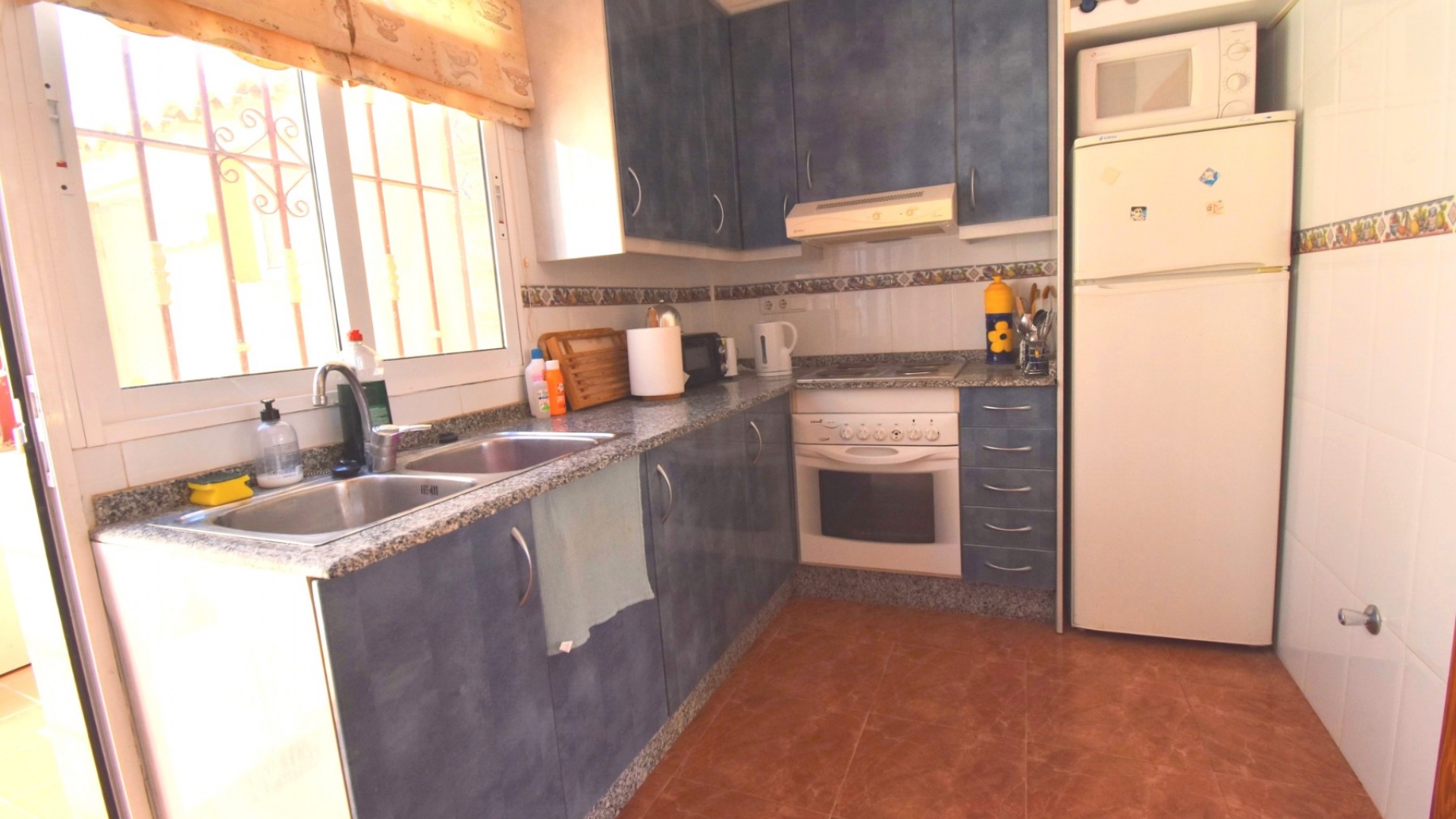 Deze op het zuiden gelegen woning met drie slaapkamers in Playa Flamenca is gelegen in een centrale en gewilde wijk van Orihuela Costa, op slechts 10 minuten lopen van diverse cafés, bars en restaurants. Het winkelcentrum La Zenia Boulevard ligt op slechts 15 minuten lopen, terwijl de prachtige stranden van de Costa Blanca op slechts 5 minuten rijden liggen. Binnen een straal van 10 minuten rijden vindt u diverse populaire golfbanen. Deze goed ingedeelde woning is gelegen op een gewild hoekperceel en is verdeeld over drie verdiepingen. De begane grond bestaat uit een ruime woon-/eetkamer, een aparte ingerichte keuken met een deur naar een patio aan de achterzijde en een handige bijkeuken/doucheruimte. Op de eerste verdieping bevinden zich twee tweepersoonsslaapkamers – de hoofdslaapkamer met airconditioning en de tweede met toegang tot een privéterras – en een familiebadkamer. Op de tweede verdieping bevindt zich nog een tweepersoonsslaapkamer met een eigen terras en een eigen badkamer met douche. Buiten vindt u een betegelde tuin met parkeergelegenheid op eigen terrein en een ingebouwde barbecue, ideaal om buiten te leven. Extra voorzieningen zijn onder andere ingebouwde kasten en toegang tot een mooi gemeenschappelijk zwembad. Een ideale permanente woning of vakantiewoning in het hart van de Costa Blanca Zuid.
