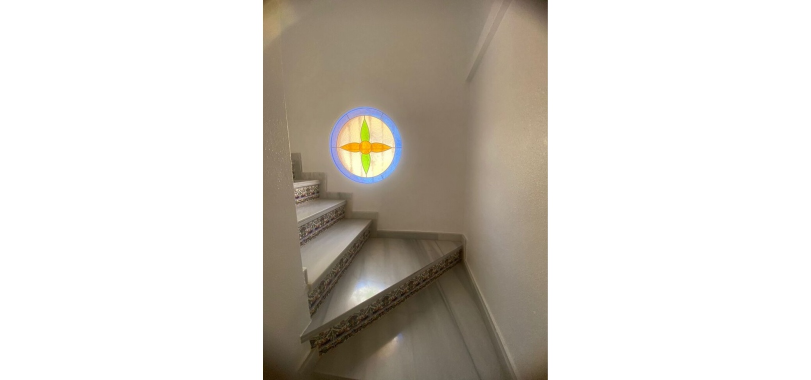 De interne trap leidt naar de eerste verdieping, waar zich twee tweepersoonsslaapkamers bevinden, beide met ingebouwde kasten en een eigen balkon, en één nieuw ingerichte doucheruimte.