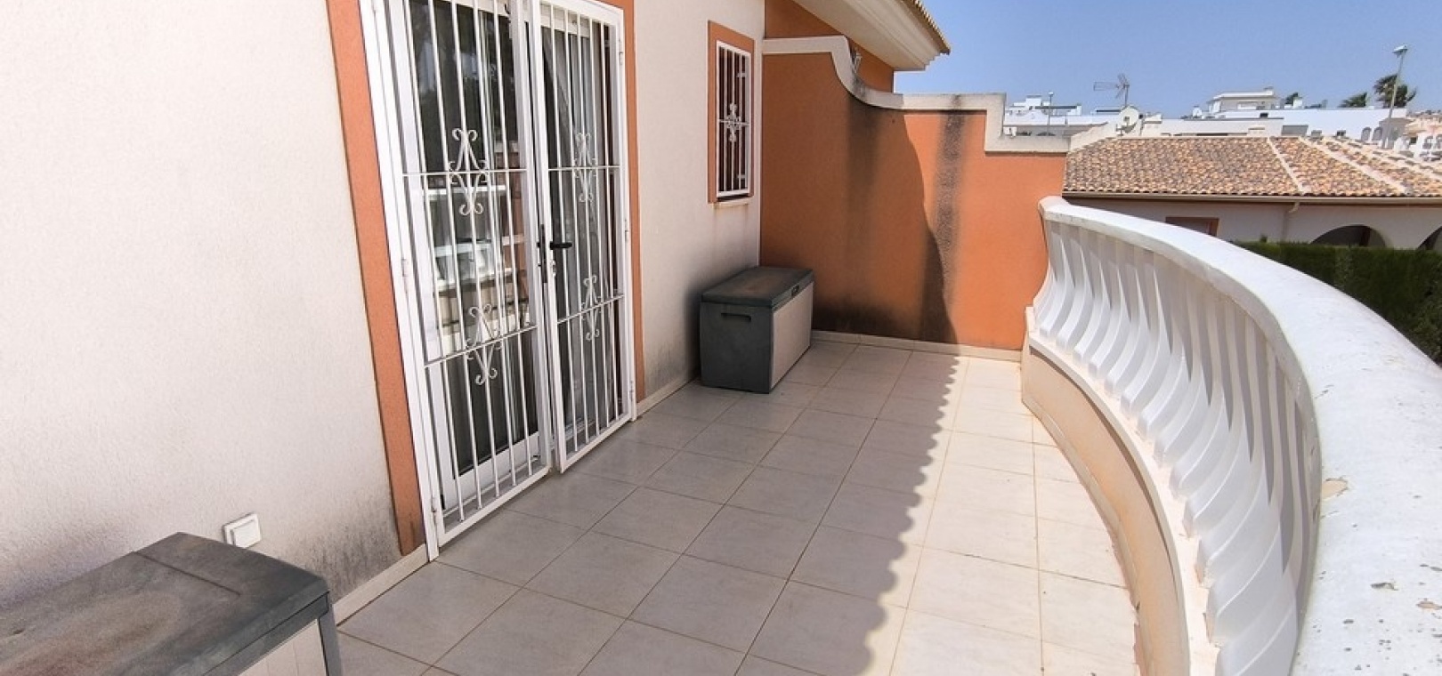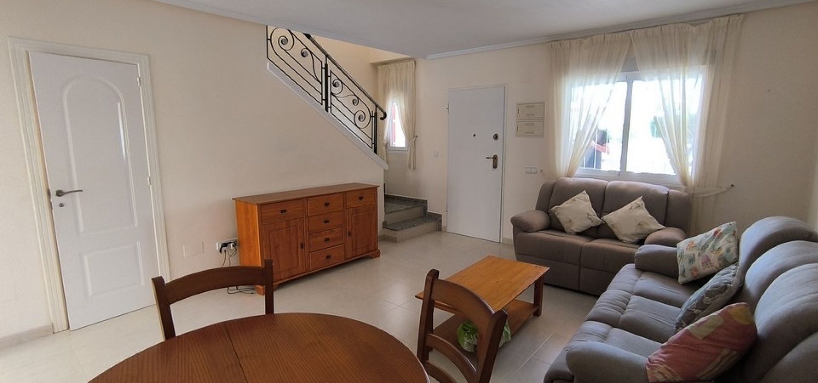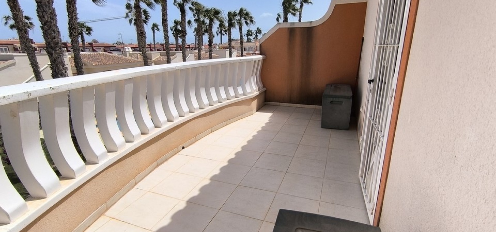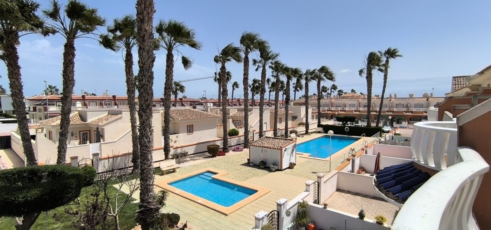 Ontdek deze prachtig gepresenteerde Lola-woning met 3 slaapkamers en 2 badkamers in de gewilde wijk Doña Pepa, Ciudad Quesada. Gelegen in een beveiligde, afgesloten woonwijk, biedt de woning rust en een eigen parkeerplaats. De oostgerichte ligging zorgt voor een heerlijke ochtendzon en een prachtig uitzicht over de onberispelijke gemeenschappelijke tuinen en zwembaden. Stap via de privétuin aan de voorzijde het ruime overdekte terras op - perfect om te ontspannen of gasten te ontvangen. Binnen biedt de lichte en luchtige woon-/eetkamer een gastvrije ruimte om te ontspannen. Op de begane grond bevinden zich ook een doucheruimte onder de trap, een tweepersoonsslaapkamer en een goed uitgeruste keuken. Aan de achterzijde leidt een kleine privétuin naar een bijkeuken met de wasmachine en boiler. Boven vindt u een grote familiebadkamer met een moderne inloopdouche. Beide slaapkamers op deze verdieping zijn ruim en hebben een eigen balkon. De hoofdslaapkamer biedt een prachtig uitzicht over het zwembad en de aangelegde tuinen. De woning wordt volledig gemeubileerd verkocht, dus u kunt er direct intrekken. De woning is tevens voorzien van pre-installatie voor airconditioning, waardoor u in de toekomst eenvoudig kunt upgraden. Gelegen op slechts 5 minuten lopen van lokale bars, restaurants en supermarkten, is dit een waar gemak voor de deur. De levendige winkelstraat van Ciudad Quesada ligt op slechts 10 minuten loopafstand. Bovendien liggen de prachtige zandstranden van Guardamar op slechts 15 minuten rijden. De golfbaan La Marquesa is nog dichterbij, terwijl diverse andere topgolfresorts in de buurt zijn. De luchthaven van Alicante is in minder dan 40 minuten te bereiken. Deze Lola-woning met 3 slaapkamers in Doña Pepa biedt een perfecte combinatie van comfort, locatie en levensstijl. Mis uw kans niet om een woning te bezitten in een van de populairste wijken van de regio.