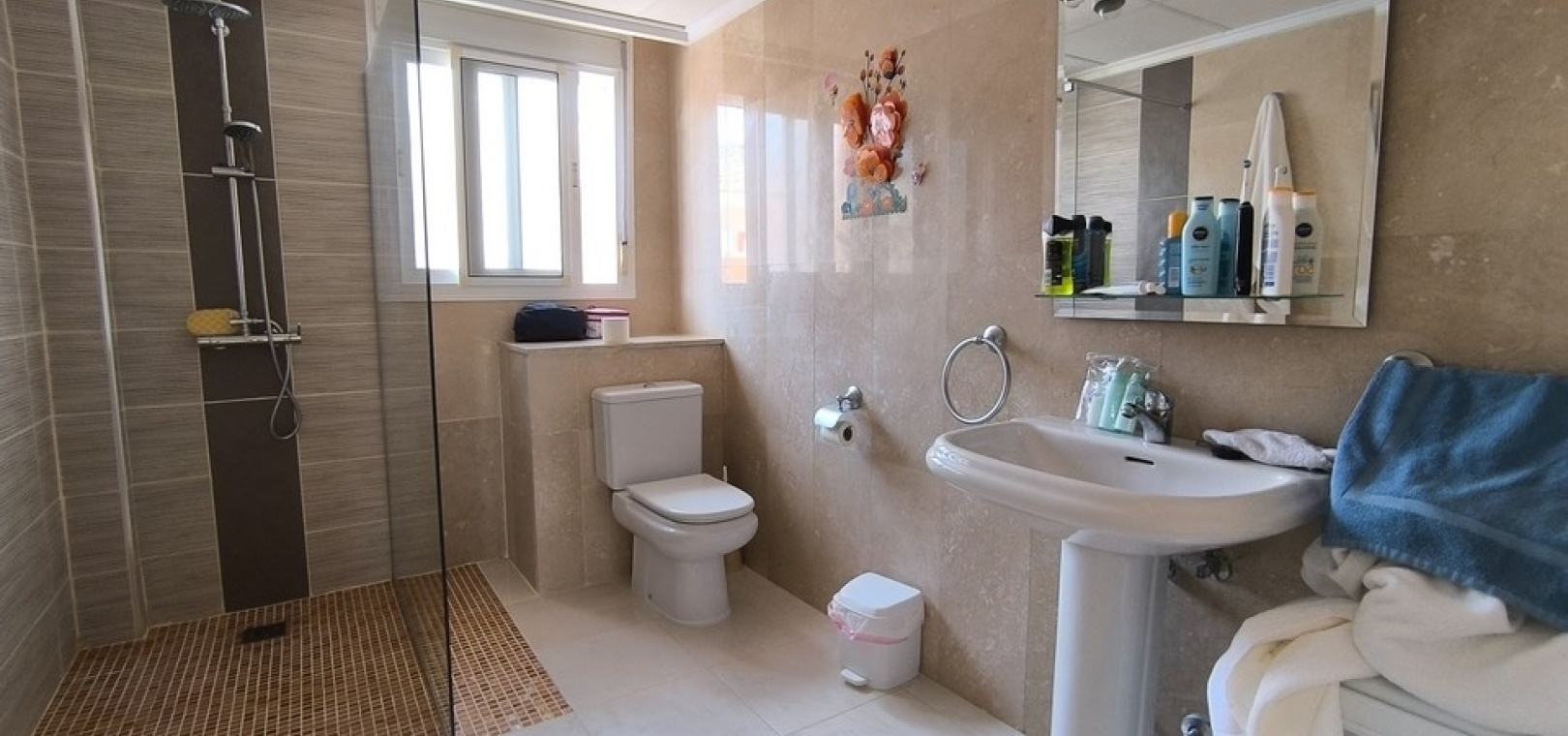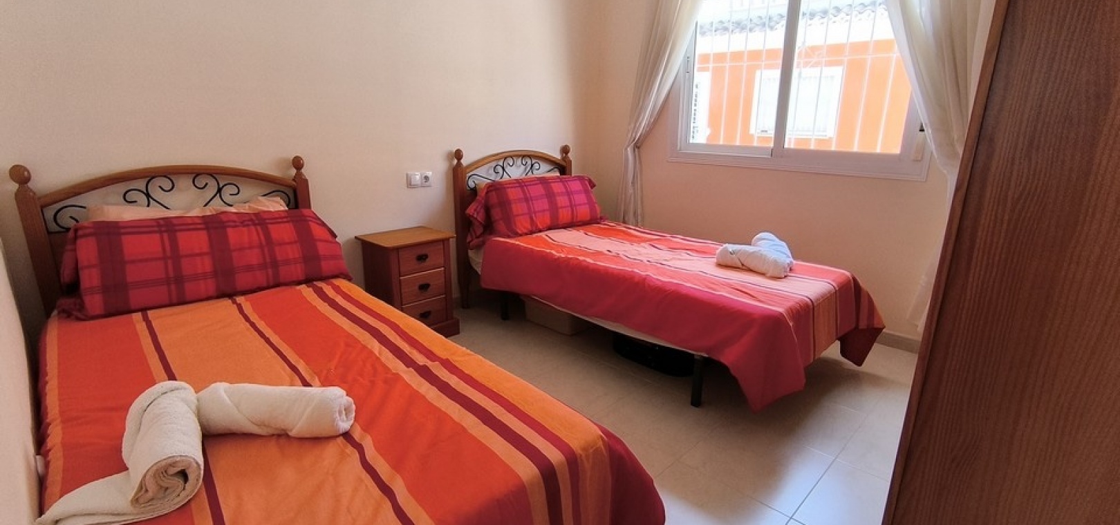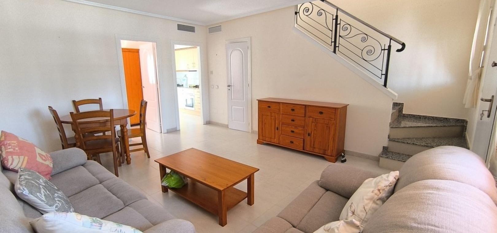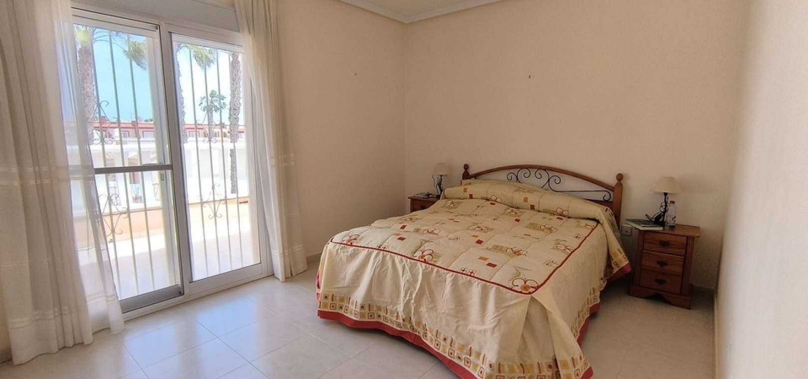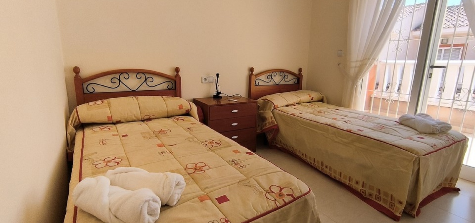 Ontdek deze prachtig gepresenteerde Lola-woning met 3 slaapkamers en 2 badkamers in de gewilde wijk Doña Pepa, Ciudad Quesada. Gelegen in een beveiligde, afgesloten woonwijk, biedt de woning rust en een eigen parkeerplaats. De oostgerichte ligging zorgt voor een heerlijke ochtendzon en een prachtig uitzicht over de onberispelijke gemeenschappelijke tuinen en zwembaden. Stap via de privétuin aan de voorzijde het ruime overdekte terras op - perfect om te ontspannen of gasten te ontvangen. Binnen biedt de lichte en luchtige woon-/eetkamer een gastvrije ruimte om te ontspannen. Op de begane grond bevinden zich ook een doucheruimte onder de trap, een tweepersoonsslaapkamer en een goed uitgeruste keuken. Aan de achterzijde leidt een kleine privétuin naar een bijkeuken met de wasmachine en boiler. Boven vindt u een grote familiebadkamer met een moderne inloopdouche. Beide slaapkamers op deze verdieping zijn ruim en hebben een eigen balkon. De hoofdslaapkamer biedt een prachtig uitzicht over het zwembad en de aangelegde tuinen. De woning wordt volledig gemeubileerd verkocht, dus u kunt er direct intrekken. De woning is tevens voorzien van pre-installatie voor airconditioning, waardoor u in de toekomst eenvoudig kunt upgraden. Gelegen op slechts 5 minuten lopen van lokale bars, restaurants en supermarkten, is dit een waar gemak voor de deur. De levendige winkelstraat van Ciudad Quesada ligt op slechts 10 minuten loopafstand. Bovendien liggen de prachtige zandstranden van Guardamar op slechts 15 minuten rijden. De golfbaan La Marquesa is nog dichterbij, terwijl diverse andere topgolfresorts in de buurt zijn. De luchthaven van Alicante is in minder dan 40 minuten te bereiken. Deze Lola-woning met 3 slaapkamers in Doña Pepa biedt een perfecte combinatie van comfort, locatie en levensstijl. Mis uw kans niet om een woning te bezitten in een van de populairste wijken van de regio.