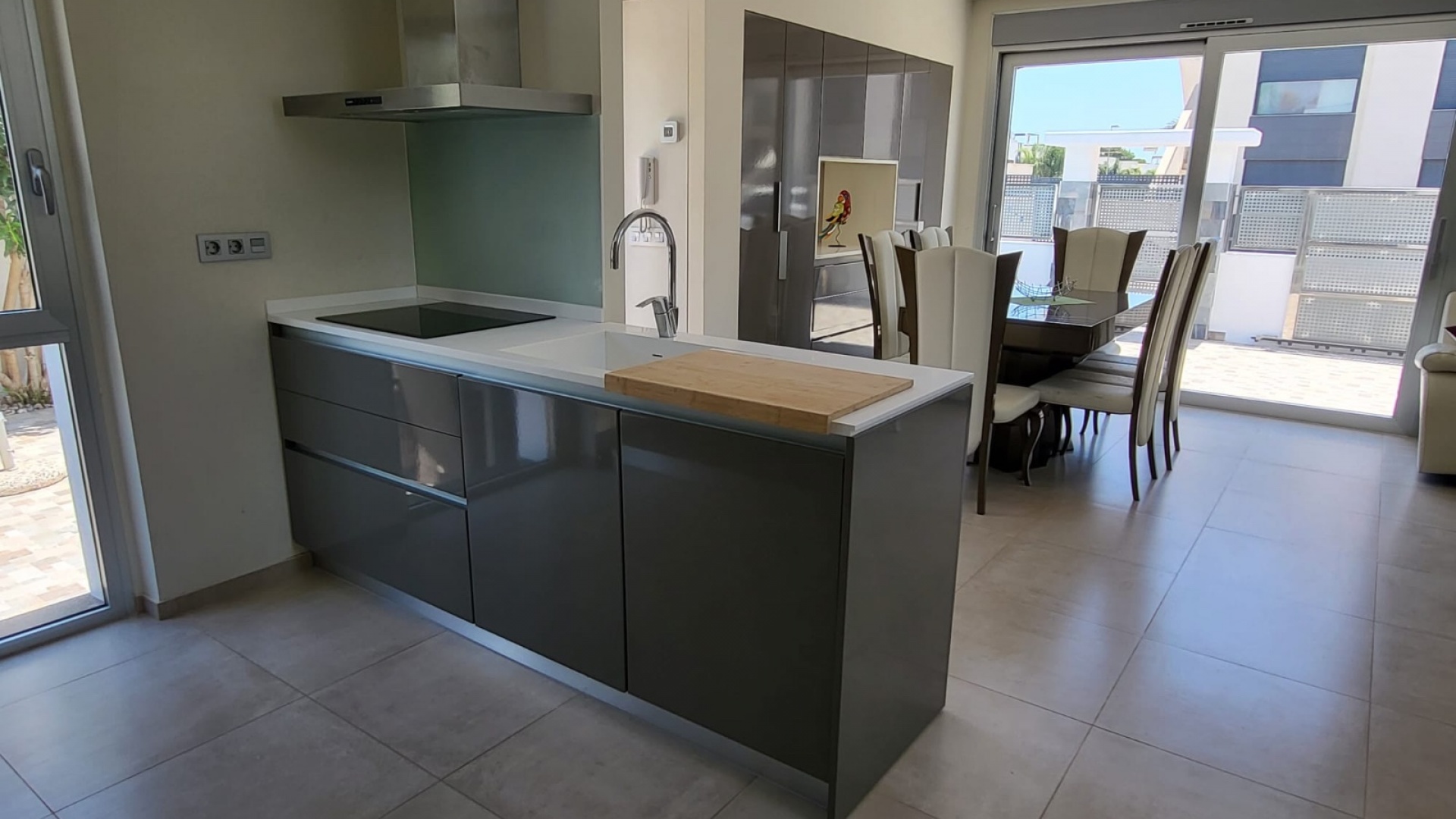 Charmante vrijstaande villa met privézwembad in Ciudad Quesada, Rojales. Stap in het mediterrane leven met deze prachtige vrijstaande villa in de rustige urbanisatie Ciudad Quesada, Rojales. Deze goed onderhouden woning staat op een perceel van 255 m² en biedt 3 ruime slaapkamers, waarvan één gunstig gelegen op de begane grond, en een lichte, open woonkamer met veel natuurlijk licht. De begane grond verwelkomt u met een zonnige woon- en eetkamer, een volledig uitgeruste open keuken, een gastentoilet en een praktische berging. Ook op deze verdieping bevindt zich een ruime slaapkamer met een eigen en-suite badkamer. Boven vindt u twee extra slaapkamers, een complete badkamer en toegang tot een groot zonneterras, perfect om te genieten van de Spaanse zon en in alle privacy te ontspannen. Buiten beschikt de villa over een groot privézwembad en diverse zitgedeeltes, ideaal om buiten te eten of gewoon te genieten van het warme klimaat. De woning is ideaal gelegen, dicht bij alle essentiële voorzieningen, en biedt zowel comfort als gemak in een serene omgeving.
