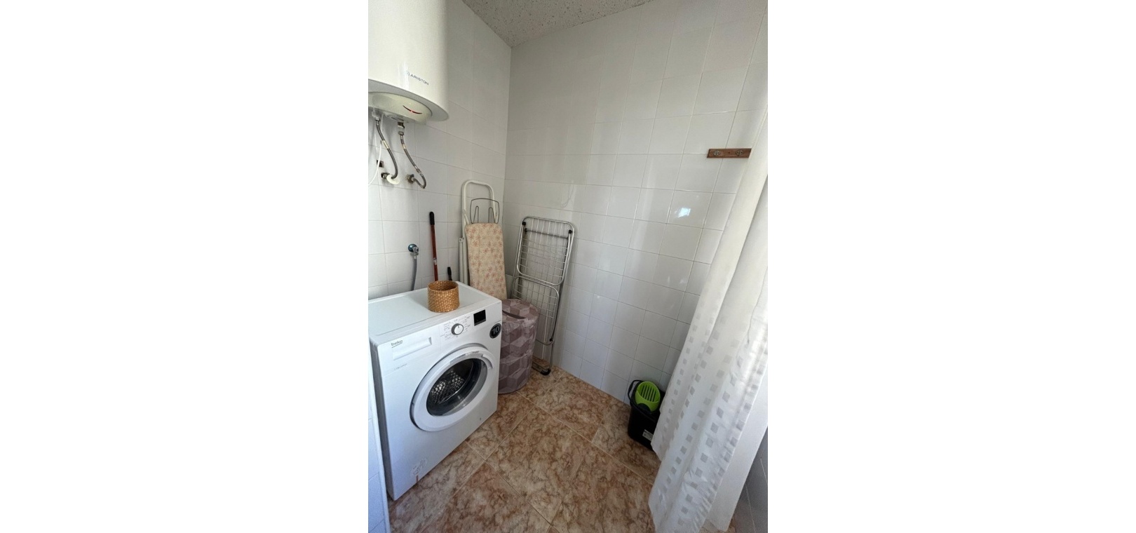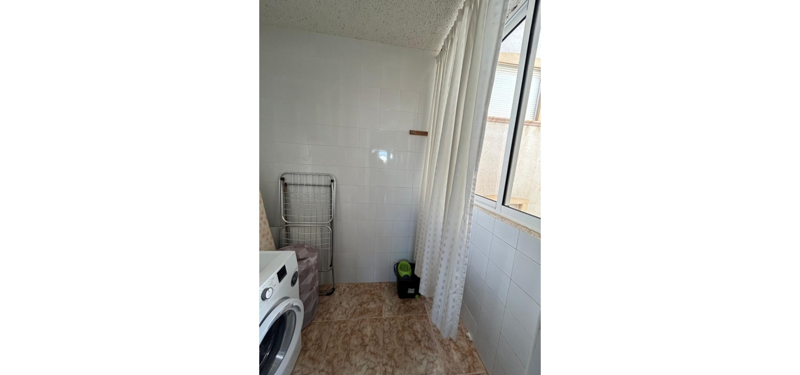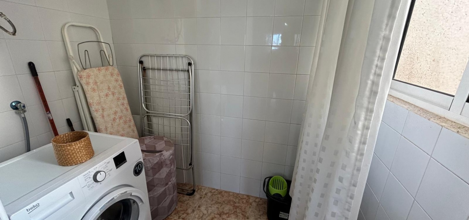 Woonkamer/eetkamer met warme en koude airconditioning, aparte keuken met een grote bijkeuken/bergruimte, 2 slaapkamers met tweepersoonsbed, beide met inbouwkasten, 1 familiebadkamer, overdekt balkon aan de voorzijde, gemeenschappelijk zwembad en nog veel meer.