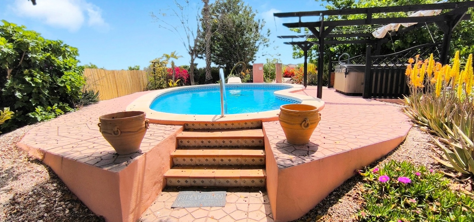 **Landhuis te koop** Ontdek de perfecte mix van comfort en rust in dit prachtige landhuis aan de rand van San Bartolomé, Orihuela. Deze charmante woning beschikt over drie ruime slaapkamers en twee moderne badkamers, waardoor het een ideale gezinswoning is. Gelegen op een royaal perceel van 2.000 m² biedt het volop ruimte voor buitenactiviteiten en ontspanning. Geniet van de luxe van een privézwembad en een rustgevende jacuzzi, perfect om te ontspannen na een lange dag. Stap binnen en ontdek 110 m² aan zorgvuldig ontworpen woonruimte, met een grote woonkamer die natuurlijk licht en warmte uitstraalt. De goed uitgeruste en zorgvuldig ontworpen keuken is compleet met essentiële apparatuur, zodat culinaire hoogstandjes binnen handbereik zijn. Elke slaapkamer is voorzien van kledingkasten, plafondventilatoren en airconditioning voor maximaal comfort, terwijl de hoofdslaapkamer een eigen badkamer en suite heeft. De woning biedt niet alleen binnencomfort; het beschikt ook over prachtige terrassen van in totaal 30 m², perfect om te genieten van een kopje koffie in de ochtend of de zonsondergang in de avond. Met voldoende parkeergelegenheid op eigen terrein en aangelegde tuinen belichaamt dit huis werkelijk rust. Gelegen nabij voorzieningen zoals het Vega Baja Ziekenhuis, combineert het gemak met rust. Mis deze uitzonderlijke kans niet om een stukje paradijs te bezitten!