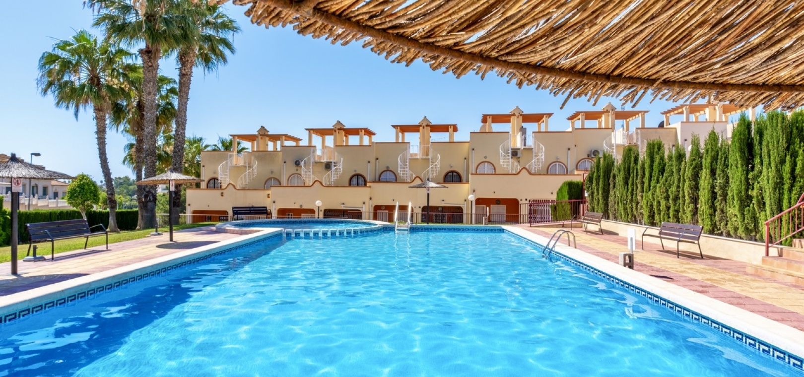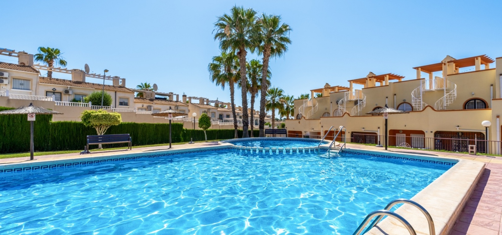 Perfect gelegen in het hart van Villamartin, biedt deze prachtig gerenoveerde woning de ideale combinatie van comfort, gemak en mediterrane charme. Met 2 ruime slaapkamers en 2 moderne badkamers is deze woning perfect geschikt voor permanente bewoning, een vakantieverblijf of een investering voor de verhuur. De woning beschikt over fantastische buitenruimtes, waaronder een privé dakterras en twee terrassen op de begane grond met uitzicht op verschillende richtingen - perfect om te genieten van de zon of om op elk moment van de dag buiten te dineren. Gelegen in een goed onderhouden complex, kunnen bewoners ontspannen bij het aantrekkelijke gemeenschappelijke zwembad, omgeven door weelderige tuinen. Alle essentiële voorzieningen bevinden zich op loopafstand, waaronder populaire winkelcentra, de golfbaan van Villamartin en een ruime keuze aan restaurants, winkels en voorzieningen. U bevindt zich dus midden in het centrum, maar toch in een rustige, residentiële omgeving. Mis deze fantastische kans niet, want het huis blijft niet lang op de markt!