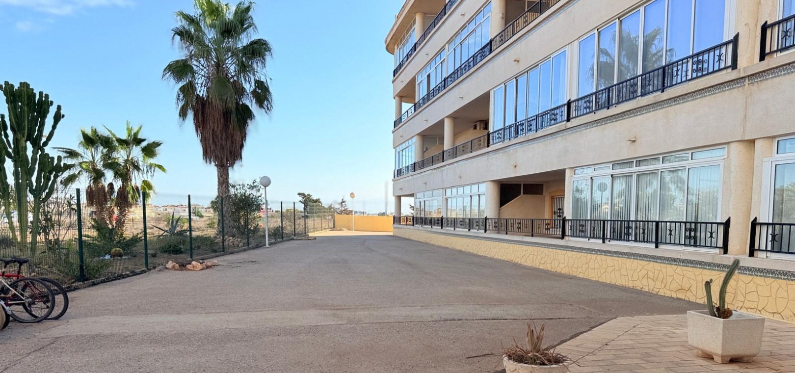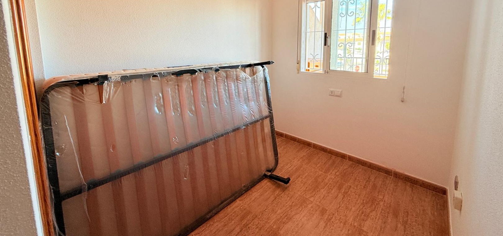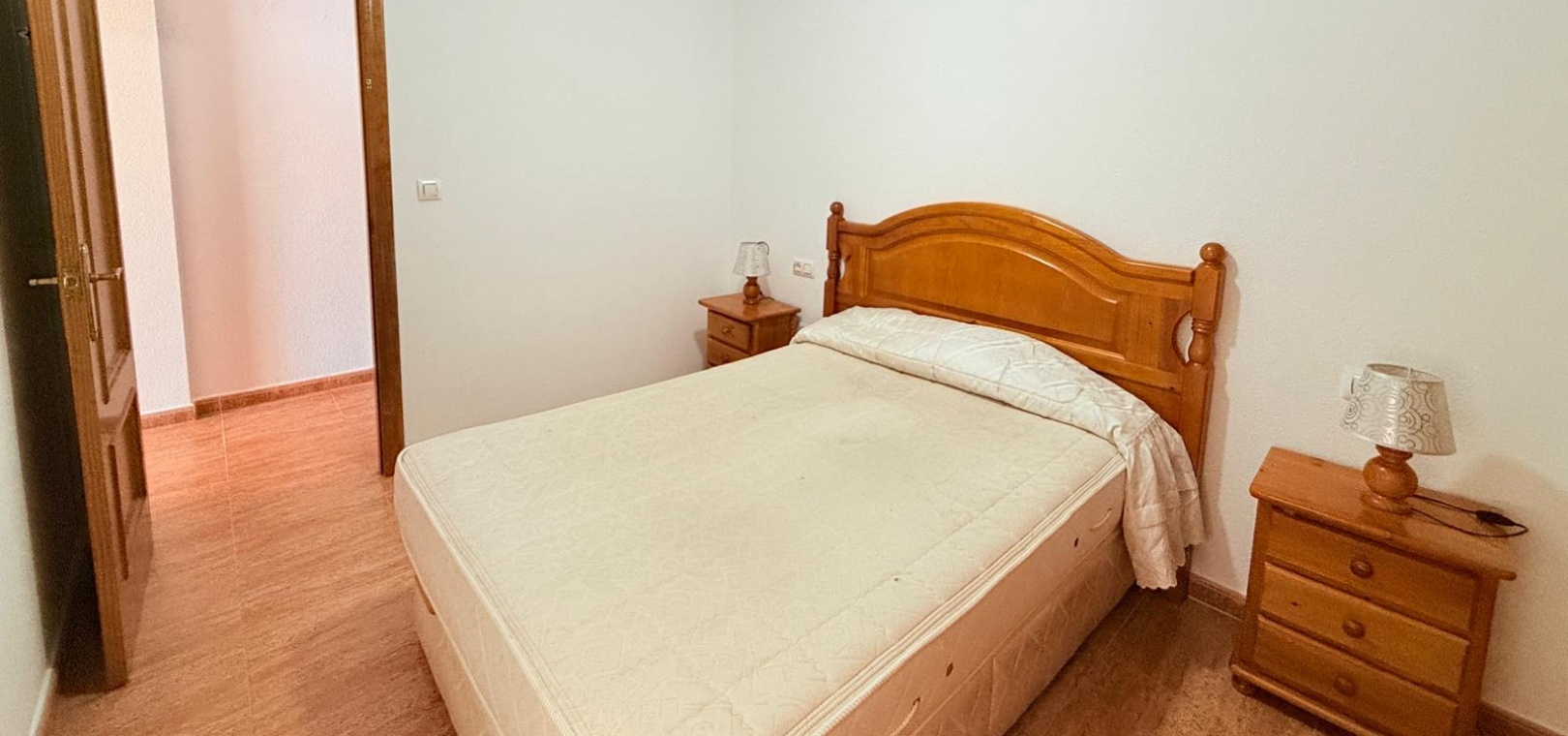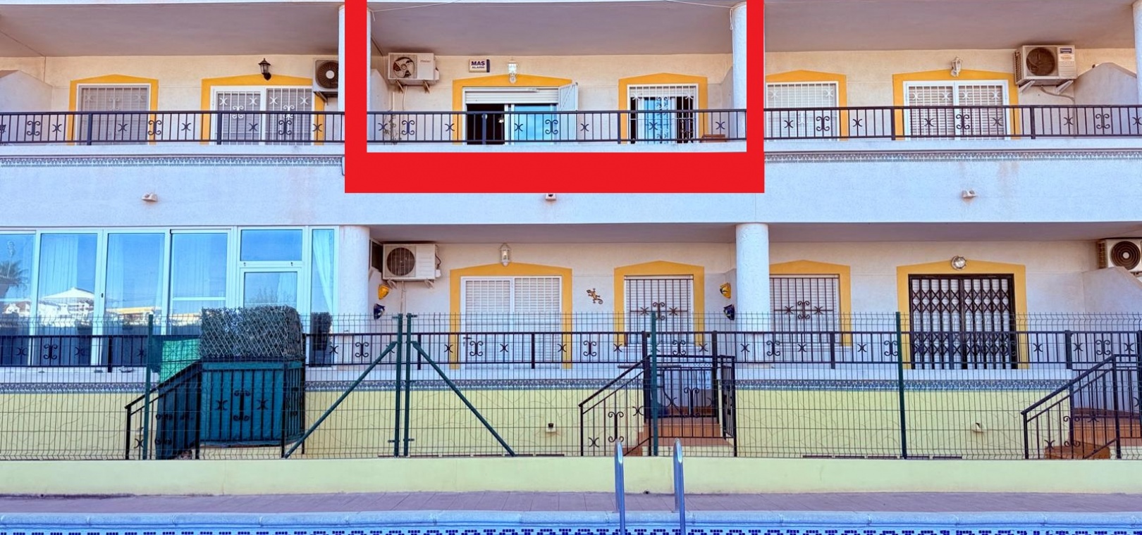 Een appartement met 2 slaapkamers, 1 badkamer op de eerste verdieping met uitzicht op het gemeenschappelijke zwembad, gelegen in Res. La Mirada, Playa Flamenca, Costa Blanca.