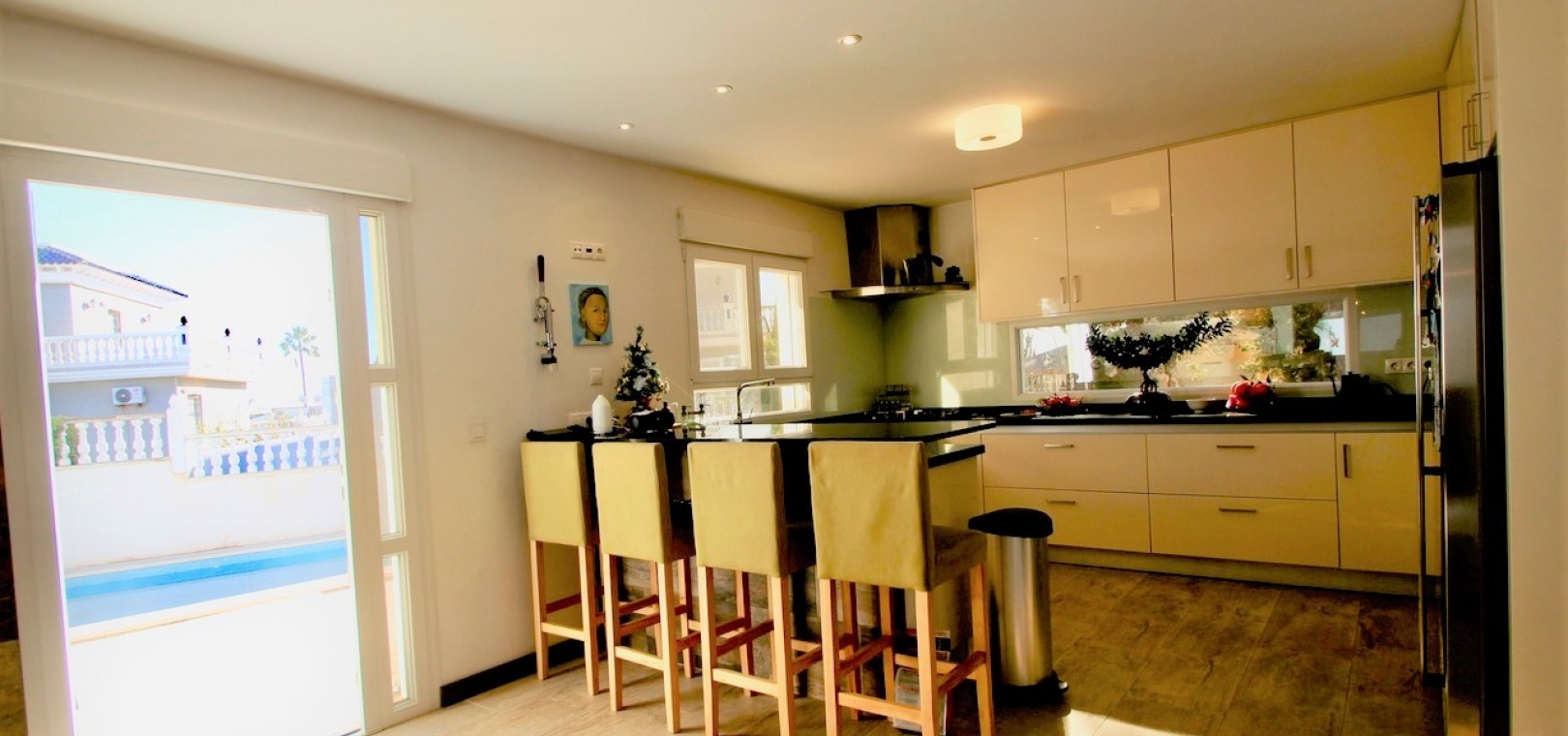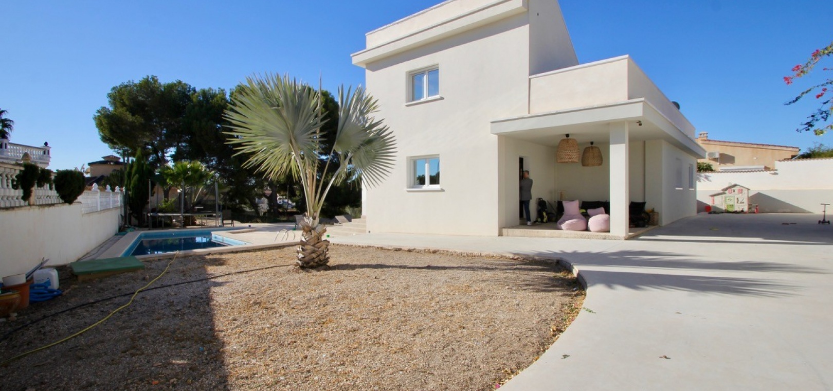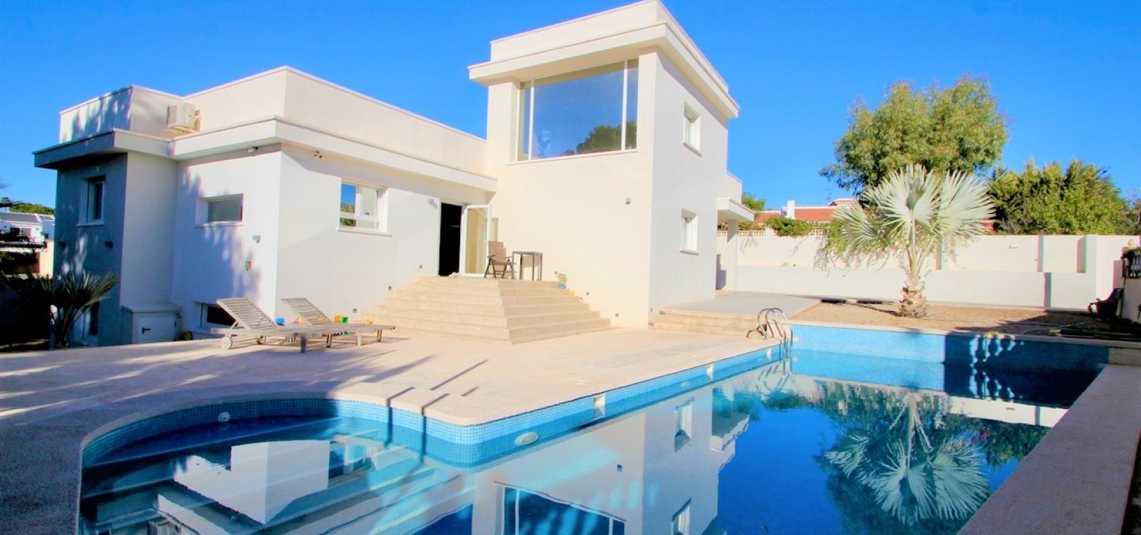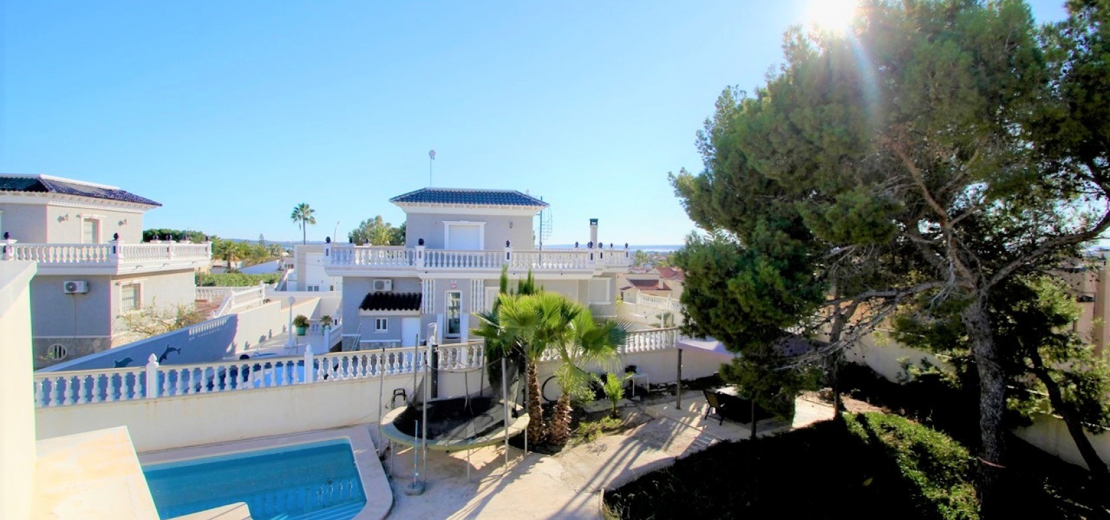 Vrijstaande villa op groot perceel met uitzicht op zee Gerenoveerde en goed onderhouden villa op een perceel van 1.254 m2 met een grote aangelegde groene tuin, een groot privézwembad (5×12) en een eethoek in de buitenlucht De woning heeft een bebouwde oppervlakte van 270 m2, verdeeld over een woonkamer, een open keuken met eethoek 3 tweepersoonsslaapkamers en een familiebadkamer Een semi-kelder met een wasruimte, een speelkamer, een kantoor en een toilet Op de bovenste verdieping is er nog een kantoor/lounge met toegang tot een groot solarium met uitzicht op de omgeving Parkeergelegenheid op het perceel voor maximaal 3 auto's, er zijn ook zonnepanelen voor water op het dakterras en nog een berging buiten het pand met een stookruimte. De woning wordt gedeeltelijk gemeubileerd verkocht, onder voorbehoud van inventaris en met airconditioning Prijs 620.000€ Jaarlijkse onroerendgoedbelasting: 379€