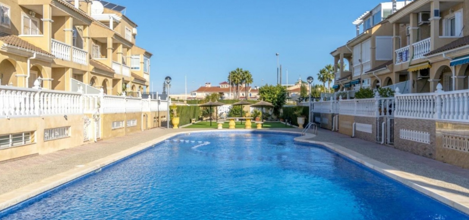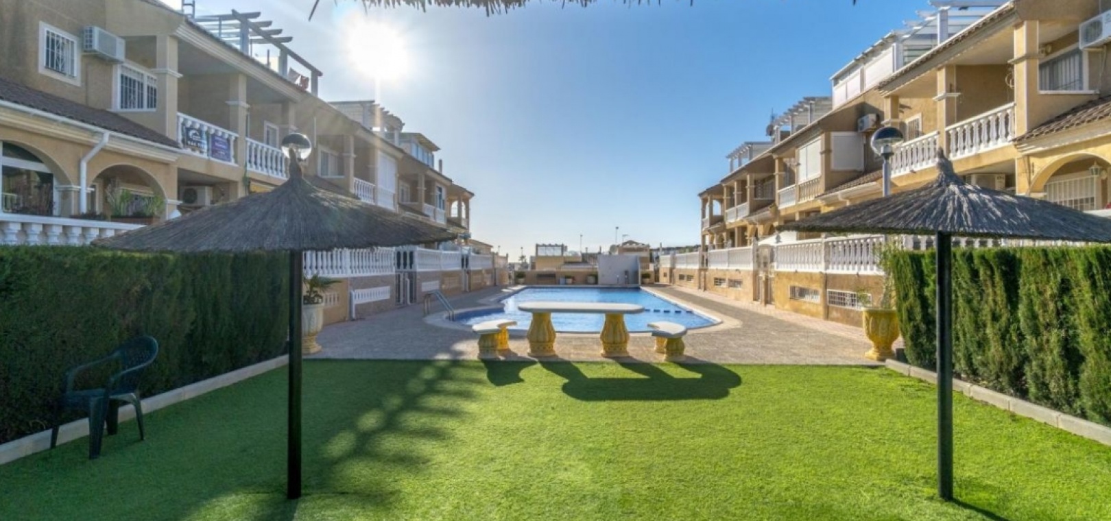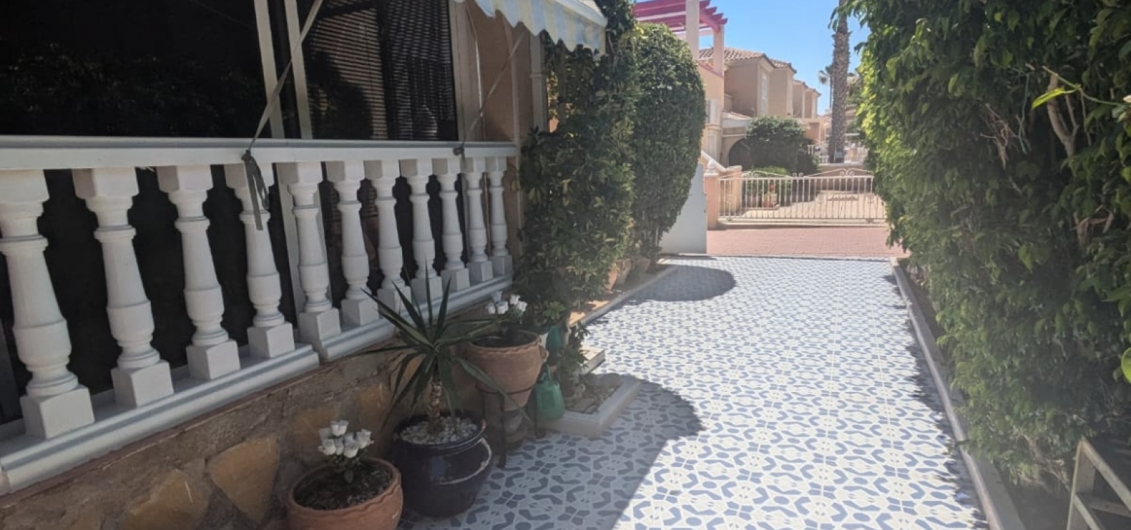 Deze keurig afgewerkte bungalow ligt in de populaire woonwijk Laguna III van Playa Flamenca en biedt een comfortabele, onderhoudsarme levensstijl dicht bij de zee en alle voorzieningen.