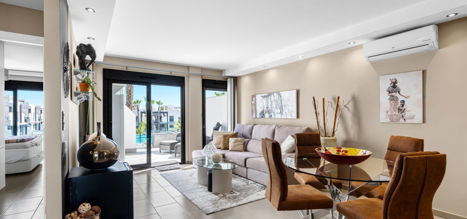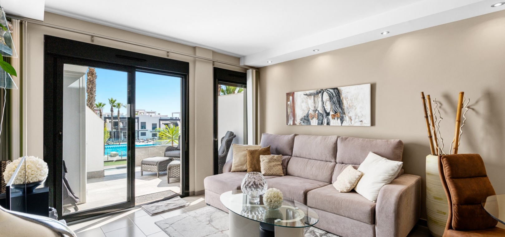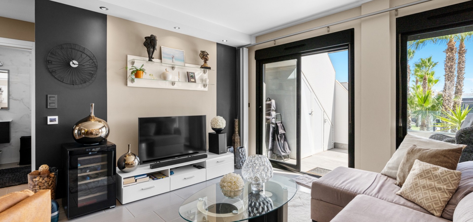 Stranden: 20 minuten lopen naar de stranden La Zenia en Playa Flamenca Golf: Drie topbanen - Villamartin, Las Ramblas en Campoamor - binnen 10 minuten rijden Vervoer: 45 minuten naar de luchthavens van Alicante en Murcia via de snelweg AP-7 Voorzieningen: Dichtbij supermarkten, restaurants en wekelijkse markten