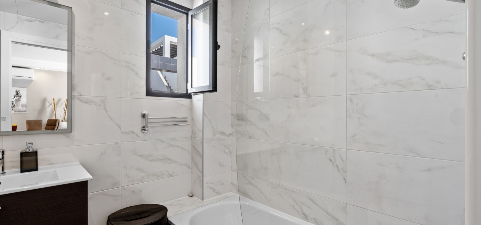 Twee ruime slaapkamers , waaronder een master suite met en-suite badkamer en uitzicht over aangelegde gemeenschappelijke tuinen Twee moderne badkamers met hoogwaardige voorzieningen en vloerverwarming Vloerverwarming in het gehele pand: keuken, woonkamer, slaapkamers en badkamers Lichte, open keuken, woon- en eetkamer met toegang tot een privéterras met uitschuifbaar zonnescherm Ruim privé dakterras met: Volledig geïntegreerde buitenkeuken (met wasmachine, vaatwasser, koelkast, warm/koud water en extra stopcontacten) Nieuw vervangen tegels en waterdicht membraan over het terras, de trap en het balkon Ruime ruimte om te dineren, gasten te ontvangen of te zonnebaden met uitzicht op zee en de tuin Warme en koude airconditioning in het hele huis Beveiligde ondergrondse parkeerplaats inbegrepen Wordt volledig gemeubileerd aangeboden (exclusief persoonlijke spullen)