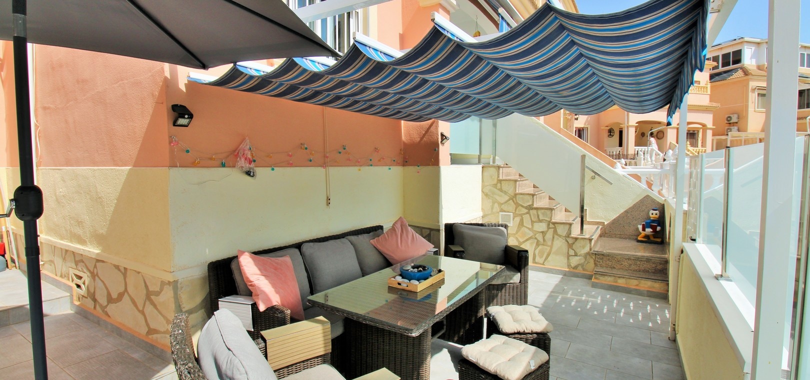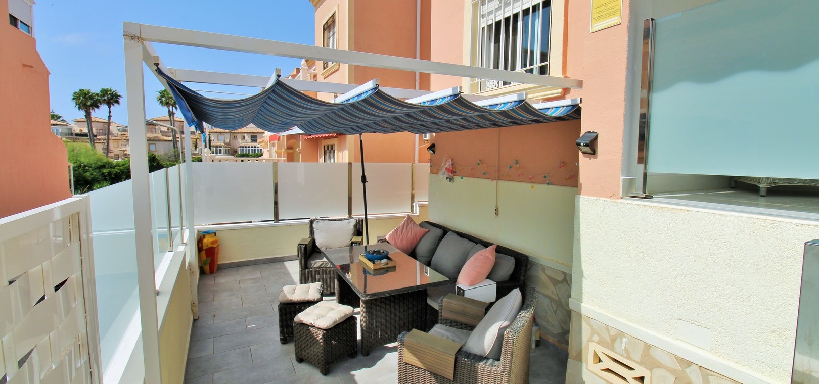 Toplocatie aan het zwembad Drie slaapkamers, twee moderne badkamers Vernieuwde keuken en interieur Privé dakterras Luchtige L-vormige voortuin met verhoogde veranda Rustige maar centrale ligging Op loopafstand van Zenia Boulevard, stranden en voorzieningen