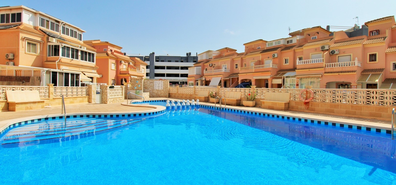 Stijlvolle vierkamerwoning met 3 slaapkamers en uitzicht op het zwembad in Pueblo Caballero I, Playa Flamenca