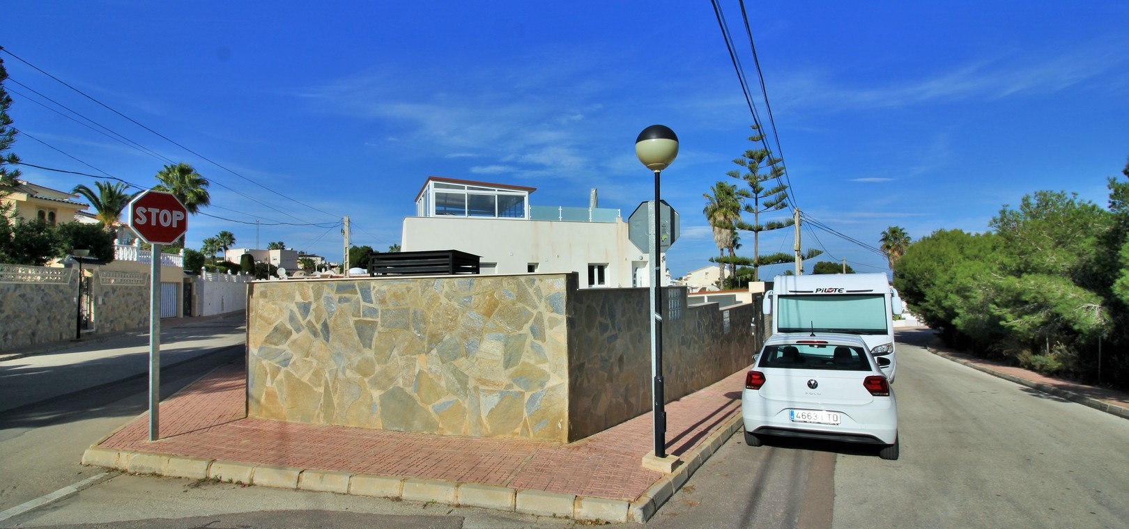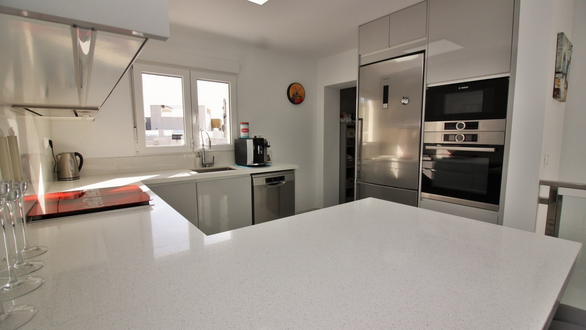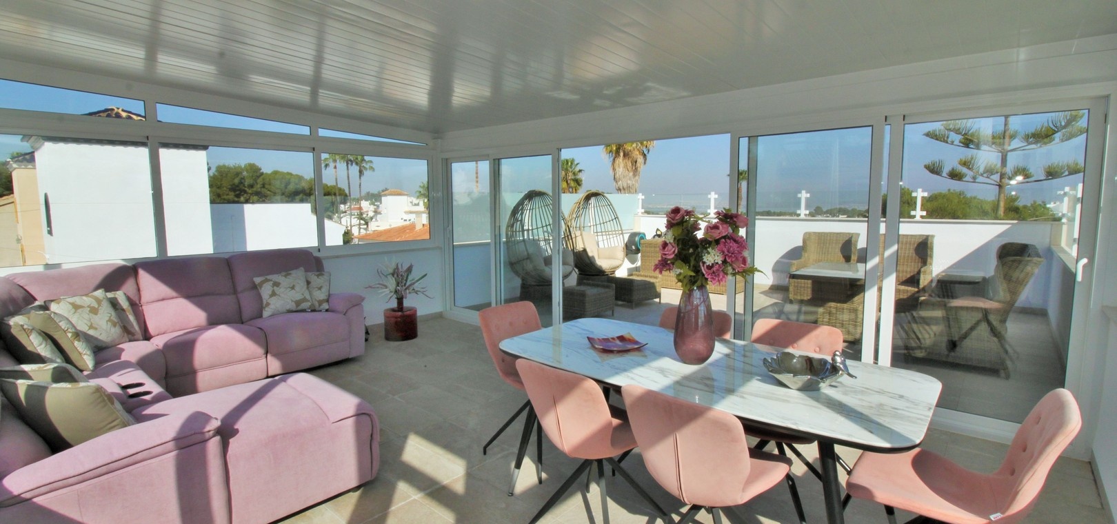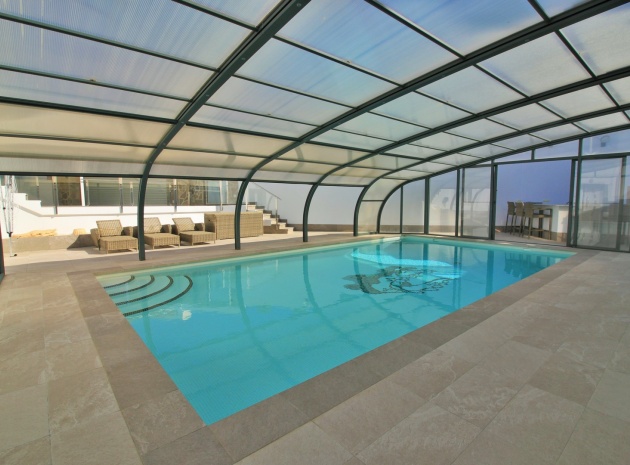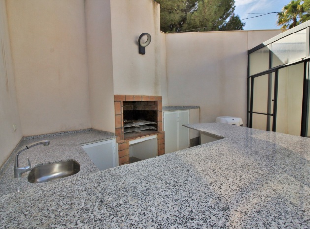 Verwarmd privézwembad Intrekbare koepelafdekking voor gebruik het hele seizoen door Groot dakterras met gedeeltelijke omheining Biedt een prachtig uitzicht op de zoutmeren van Torrevieja Zomerkeuken met ingebouwde BBQ Overdekte carport met elektrische toegangspoort