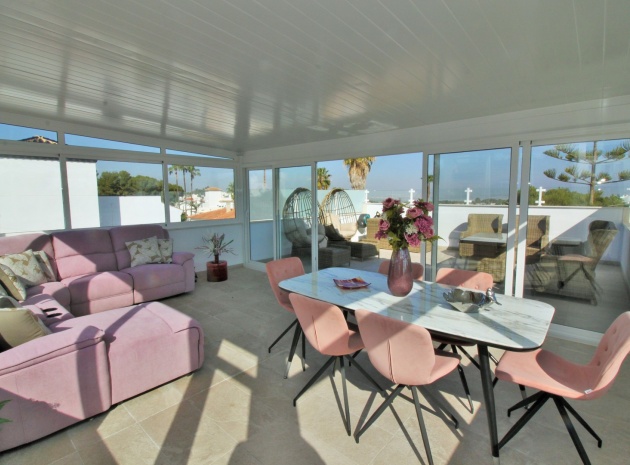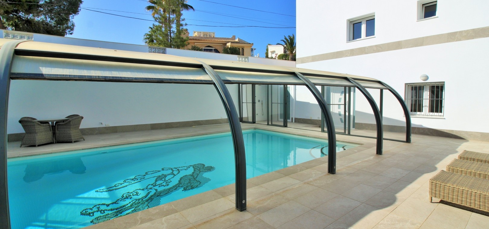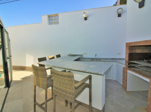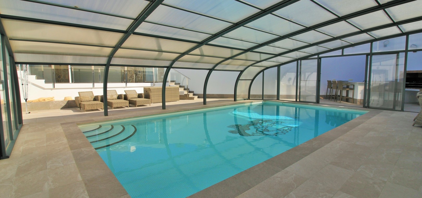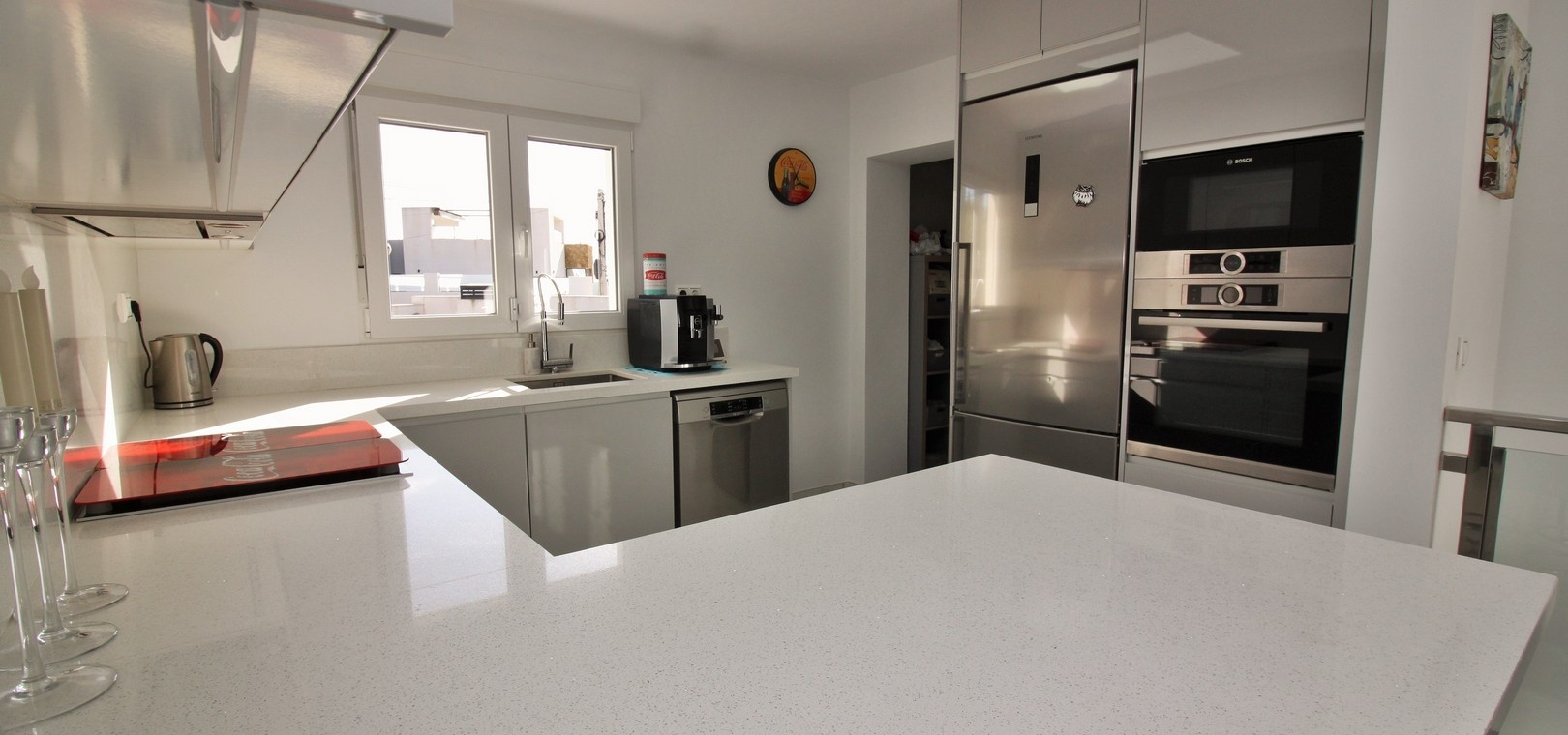 Verwarmd privézwembad Intrekbare koepelafdekking voor gebruik het hele seizoen door Groot dakterras met gedeeltelijke omheining Biedt een prachtig uitzicht op de zoutmeren van Torrevieja Zomerkeuken met ingebouwde BBQ Overdekte carport met elektrische toegangspoort