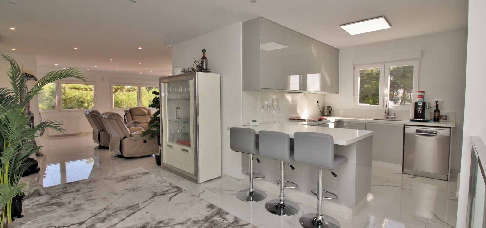 Perceeloppervlakte: 361 m² Volledig gerenoveerd Nieuwe vloer, keuken, badkamers, deuren, ramen Vernieuwde loodgieterswerkzaamheden, elektriciteit en afvoer 2 ruime lounges (één op elke verdieping) 2 tweepersoonsslaapkamers (gelegen op de benedenverdieping) 2 moderne badkamers met inloopdouches Open keuken met aangrenzende bijkeuken Extra berging/bijkeuken met toegang tot het zwembad