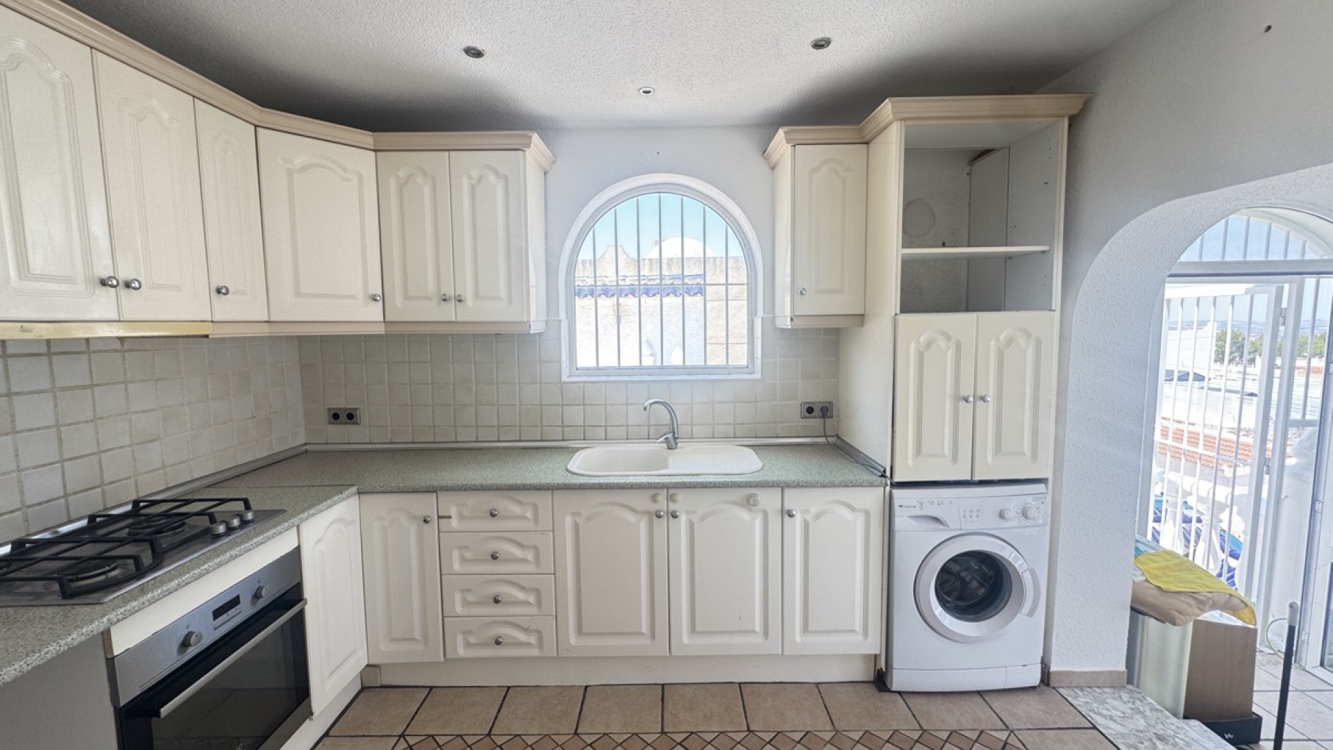 Renovatiemogelijkheid met adembenemend uitzicht – Blue Lagoon, Villamartin Ontdek de mogelijkheden van deze halfvrijstaande woning met 3 slaapkamers en 3 badkamers, gelegen in de zeer gewilde wijk Blue Lagoon in Villamartin. Met een adembenemend uitzicht op de zee en de zoutmeren, een privézwembad en een ruime garage biedt deze woning een fantastische kans om uw droomhuis of investeringsproject te realiseren. Belangrijkste kenmerken 3 ruime slaapkamers, klaar voor renovatie en gepersonaliseerd ontwerp 3 badkamers, met veel potentieel voor modernisering Grote garage met ruimte voor twee auto's, of om te bouwen tot extra woon- of recreatieruimtes Privézwembad, ideaal om te ontspannen en te entertainen Fantastisch panoramisch uitzicht op de zee en het zoutmeer, wat een rustige en schilderachtige sfeer creëert Renovatiepotentieel Een echt blanco canvas, klaar voor volledige renovatie en aangepaste styling Mogelijkheid voor upgrades overal, inclusief het opnieuw ontwerpen van keuken en badkamer Potentieel om de indeling uit te breiden of opnieuw in te richten naar uw wensen Mogelijkheid om de waarde en aantrekkingskracht te verhogen door middel van een doordachte renovatie Ideaal voor Kopers die op zoek zijn naar een renovatieproject met een prachtig uitzicht en locatie Investeerders die waarde willen toevoegen en het rendement willen maximaliseren door renovatie Gezinnen of stellen die op zoek zijn naar een ruim, aanpasbaar huis in een rustige omgeving Mis de kans niet om dit pand te transformeren tot iets echt speciaals. Neem vandaag nog contact met ons op om een bezichtiging te plannen en de mogelijkheden van dit huis te verkennen.