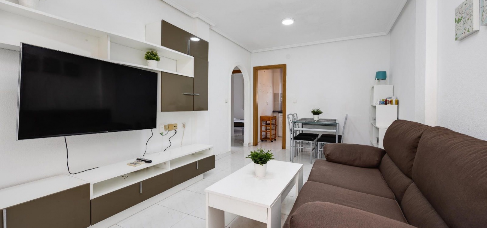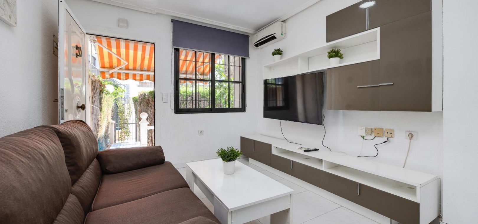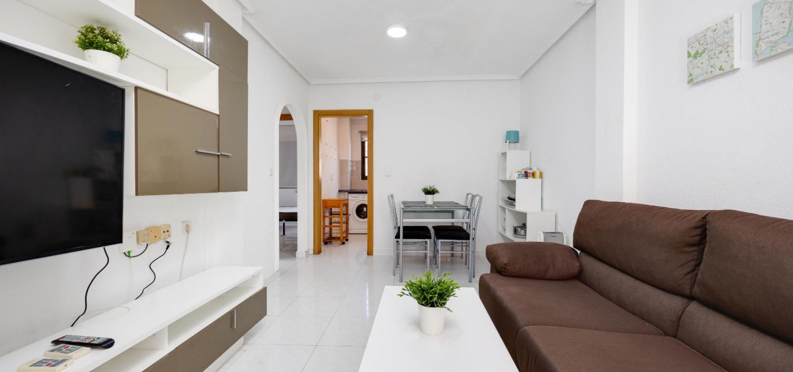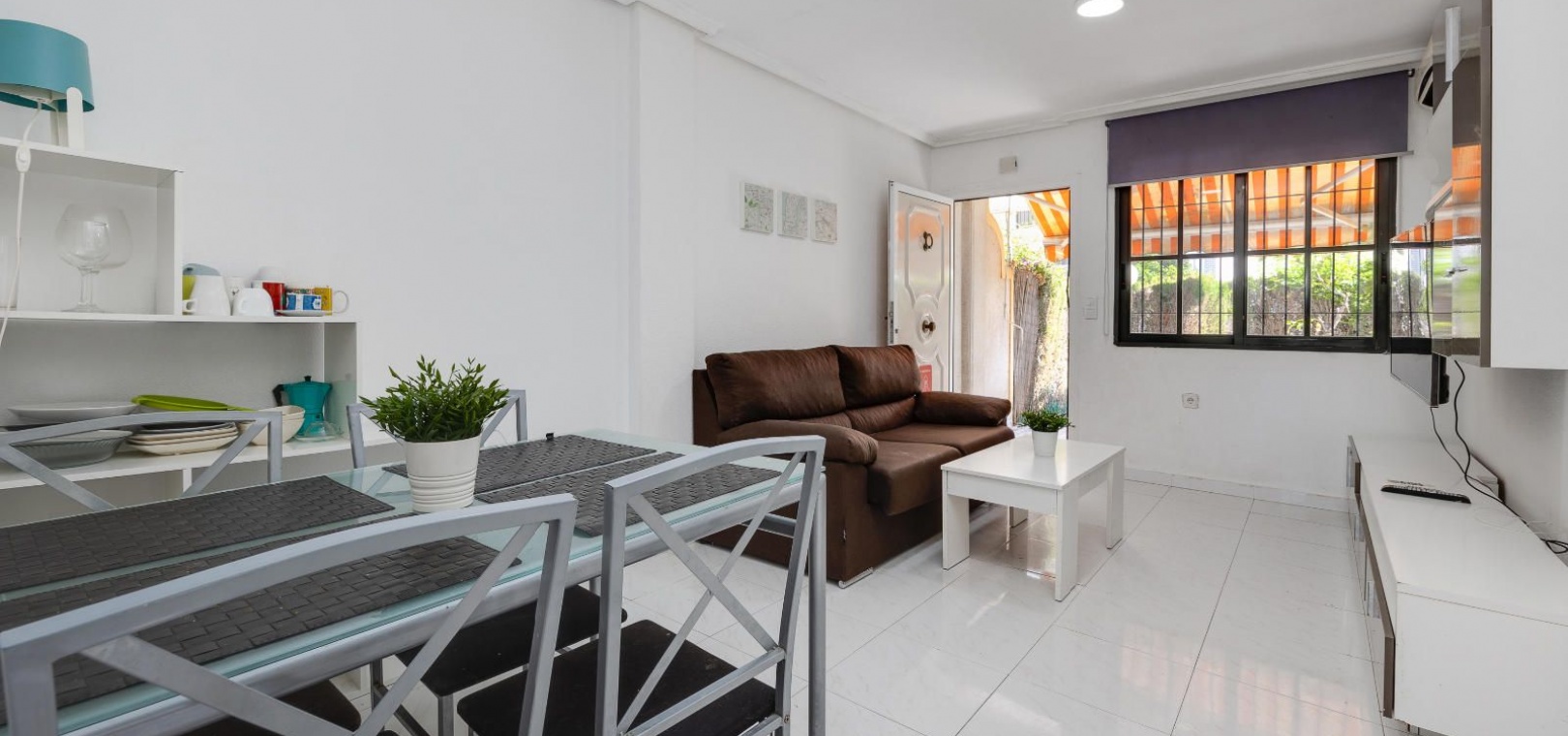 Ontdek dit heerlijke appartement op de begane grond, perfect om het hele jaar door te genieten van de mediterrane levensstijl. Met 60 m² comfortabele woonruimte beschikt de woning over 2 knusse slaapkamers, 1 complete badkamer en een lichte woon-/eetkamer met directe toegang tot een privéterras – ideaal om te ontspannen of buiten te eten.
