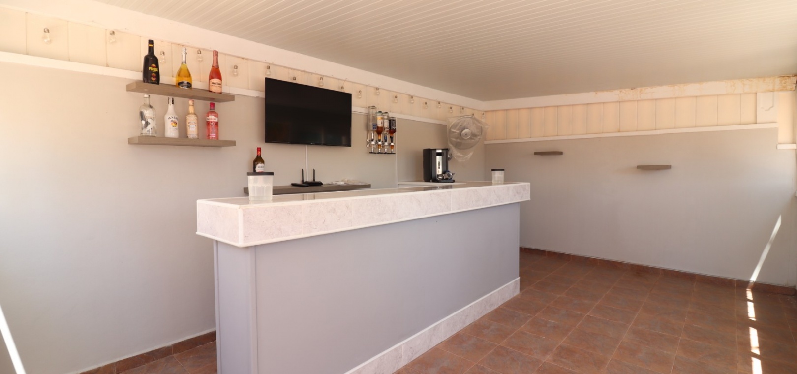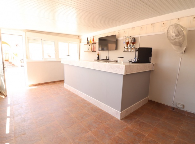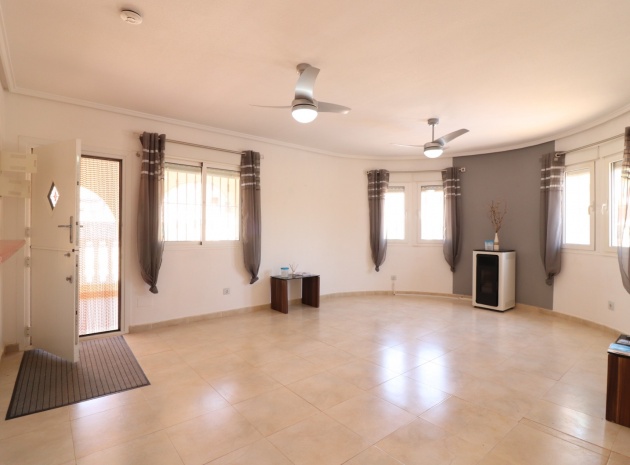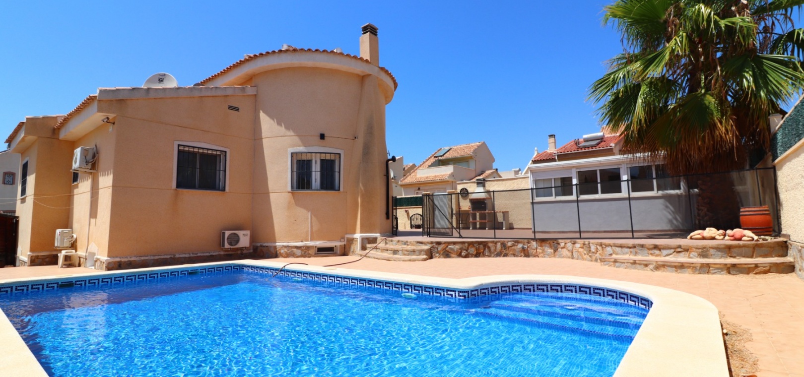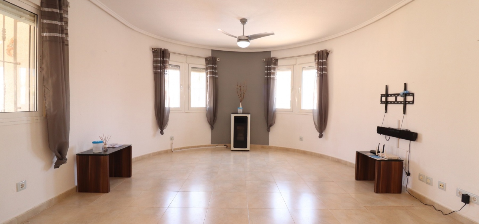 Deze vrijstaande villa met vijf slaapkamers, gelegen op het oosten in Atalaya Park, ligt vlakbij het Rojales Aquapark en op slechts enkele minuten van de bruisende winkelstraat Quesada, met een breed scala aan restaurants, cafés en winkels. De golfbaan La Marquesa ligt op slechts 5 minuten rijden en de prachtige stranden van de Costa Blanca Zuid zijn in ongeveer 15 minuten te bereiken. Deze ruime villa van 202 m² ligt op een betegeld perceel van 420 m² en beschikt over een overdekt terras dat leidt naar een lichte, gebogen woonkamer met drie ramen en een pelletkachel. De open, in Amerikaanse stijl ingerichte keuken wordt aangevuld door een aparte bijkeuken. Op de begane grond bevinden zich drie tweepersoonsslaapkamers met inbouwkasten, een familiebadkamer met douche en een hoofdslaapkamer met eigen badkamer. De onderbouw, die van buitenaf toegankelijk is, biedt uitstekende accommodatie voor gasten of gezinnen met een grote familie met twee extra tweepersoonsslaapkamers, een natte ruimte en een ruime woon-/eetkamer. Een buitentrap leidt naar een solarium met prachtig uitzicht op de bergen en het gemeenschappelijke zwembad. De buitenruimte omvat een gerenoveerd privézwembad met zout water, een aparte afgesloten ruimte die momenteel als bar wordt gebruikt, een barbecueplek en parkeergelegenheid op eigen terrein. Alle slaapkamers zijn voorzien van airconditioning, waardoor dit het hele jaar door een comfortabel huis is. Een uitzonderlijke en veelzijdige woning op een goed bereikbare locatie aan de Costa Blanca Zuid.