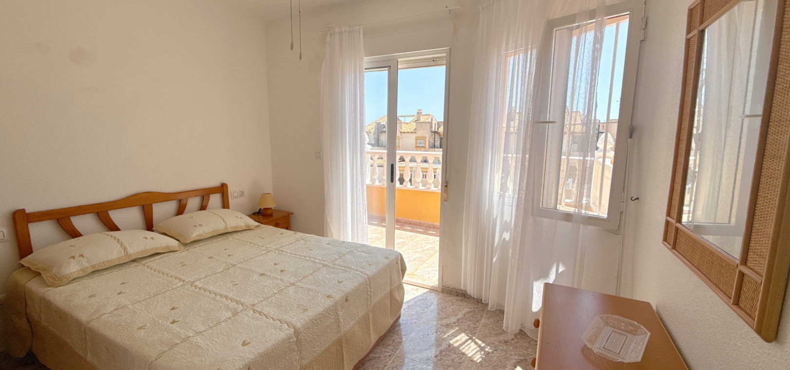 Boven vindt u twee ruime tweepersoonsslaapkamers. Een van de slaapkamers heeft een heerlijk privébalkon met open uitzicht, en op de bovenverdieping bevindt zich een complete familiebadkamer.