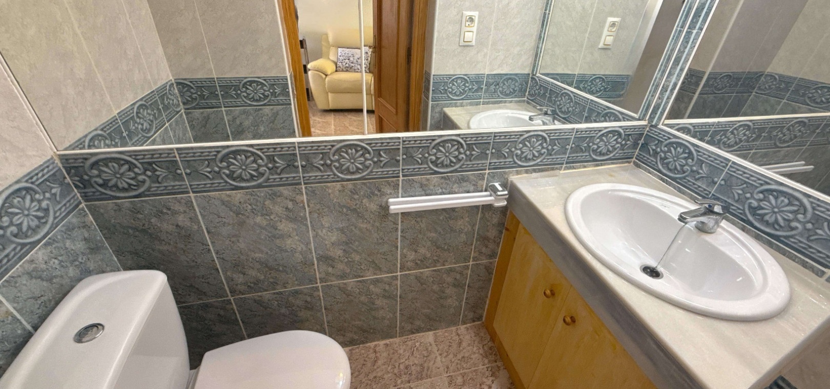 De woning beschikt over een zonnig terras aan de voorzijde met parkeergelegenheid op eigen terrein, evenals een schaduwrijke veranda die leidt naar een lichte en gastvrije woonkamer. Op de begane grond bevinden zich een handig gastentoilet, een Amerikaanse keuken en een extra overdekte ruimte aan de achterzijde – perfect als eetkamer of potentiële derde slaapkamer.