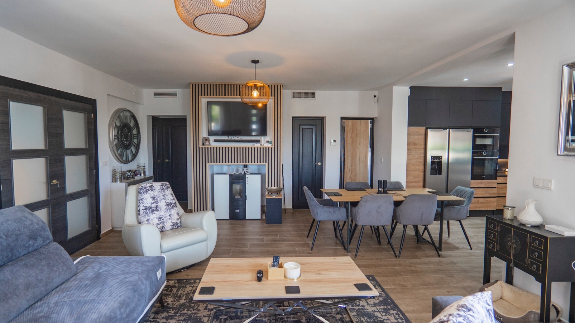 Uitzonderlijke villa die modern comfort combineert met tijdloze mediterrane elegantie — Uitzicht op het meer en de zee. Deze uitzonderlijke villa combineert op meesterlijke wijze hedendaags comfort met tijdloze mediterrane architectuur en creëert een luxe toevluchtsoord op slechts een steenworp afstand van het stadscentrum, maar toch perfect beschut voor maximale privacy. Elegante stenen accenten, klassieke witte gevels en moderne, strakke lijnen versterken het verfijnde karakter van de woning. Gelegen op een verhoogd perceel, biedt de woning een panoramisch uitzicht over het omliggende landschap, de zoutmeren en zelfs de verre Middellandse Zee. Dit biedt een uniek gevoel van openheid en rust dat zelden zo dicht bij de stad wordt gevonden. Belangrijkste kenmerken: Drie slaapkamers met eigen badkamer. Elke slaapkamer is ruim van formaat, heeft inbouwkasten en een eigen badkamer, afgewerkt met hoogwaardige armaturen en natuursteen. Open woonkamer: Een naadloze indeling verenigt de woon-, eet- en loungeruimtes onder hoge plafonds, waardoor het interieur baadt in natuurlijk licht. Schuifdeuren leiden naar een winterkamer, omgeven door glazen gordijnen, ideaal om het hele jaar door te ontspannen en te genieten van het weidse uitzicht. Gourmetkeuken & BijkeukenDe strakke, volledig uitgeruste keuken wordt gecomplementeerd door een aparte wasruimte en een handig gastentoilet. Dubbele opritten & Beveiligde parkeergelegenheidTwee onafhankelijke opritten met een poort bieden flexibele toegang. Onder de villa bevindt zich een ruime garage met ruimte voor meerdere voertuigen. Mits verdere uitgraving kan deze worden uitgebreid tot een volwaardige kelder, geschikt voor een fitnessruimte, bioscoop of extra gastensuites. Buitenentertainment Verwarmd zwembad omgeven door ruime zonneterrassenZomerkeuken & ingebouwde barbecue om buiten te dinerenZwembaddouche en buitentoiletGazontuin aan de overkant - momenteel een blanco canvas voor landschapsarchitectuur, sport of spelUitbreidingsmogelijkhedenDe bestaande bouwvergunning staat de bouw van een vrijstaand gastenverblijf met maximaal drie slaapkamers toe. Het perceel kan ook wettelijk worden afgescheiden, wat aantrekkelijke mogelijkheden biedt voor toekomstige ontwikkeling of wederverkoop. Locatie: Gelegen op een toplocatie, het beste van twee werelden, in het hart van de stad – op loopafstand van cafés, boetieks en essentiële voorzieningen – maar toch discreet verscholen aan een rustige weg, waardoor rust, privacy en een weids uitzicht op het meer en de zee gegarandeerd zijn. Aantrekkelijke investering: of het nu gaat om een prestigieuze permanente woning, een luxe vakantiebestemming of een hoogrentende verhuurinvestering, deze villa biedt een unieke kans op een onovertroffen locatie, met de mogelijkheid om in de loop der tijd nog meer waarde te creëren. Plan vandaag nog uw bezichtiging om het volledige potentieel te ervaren.