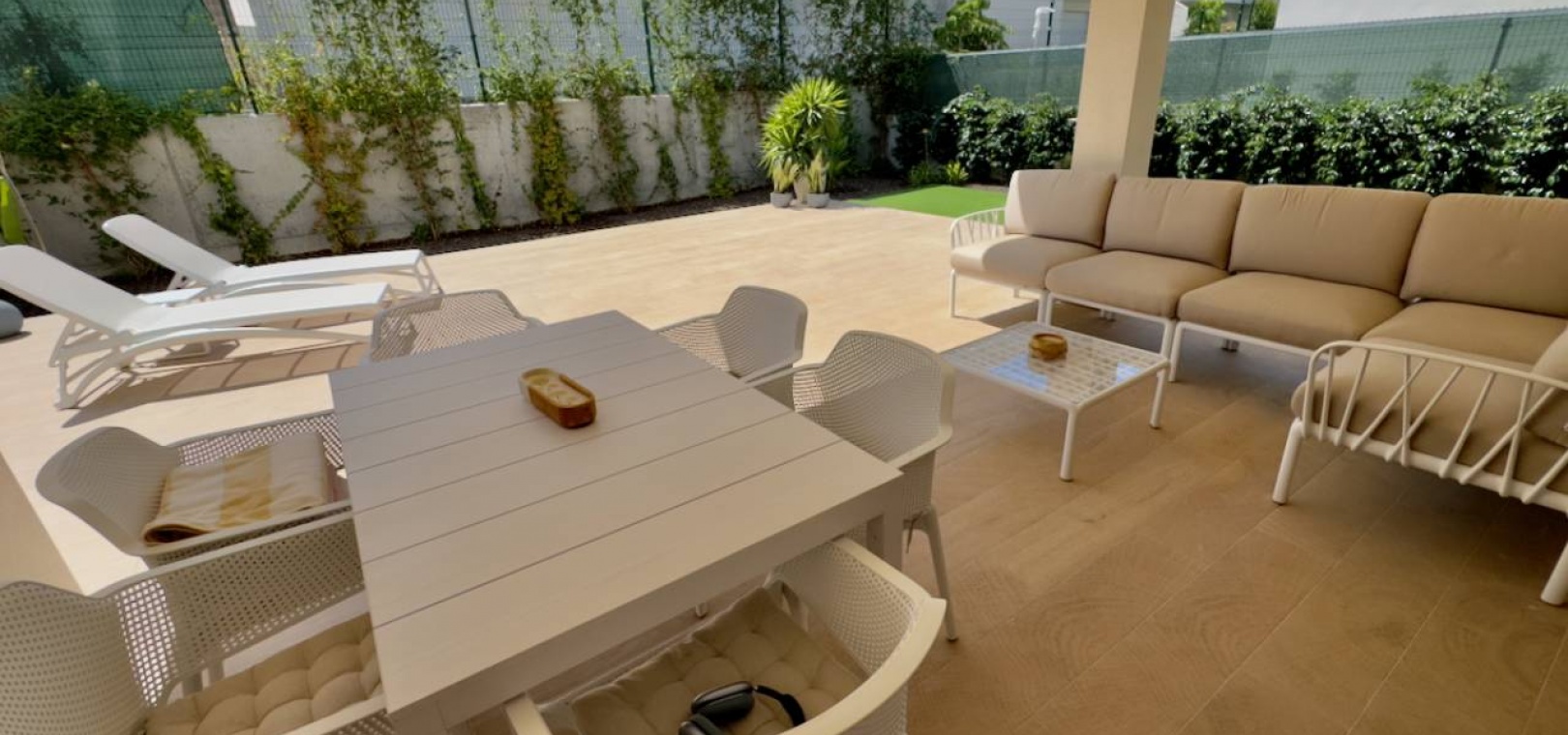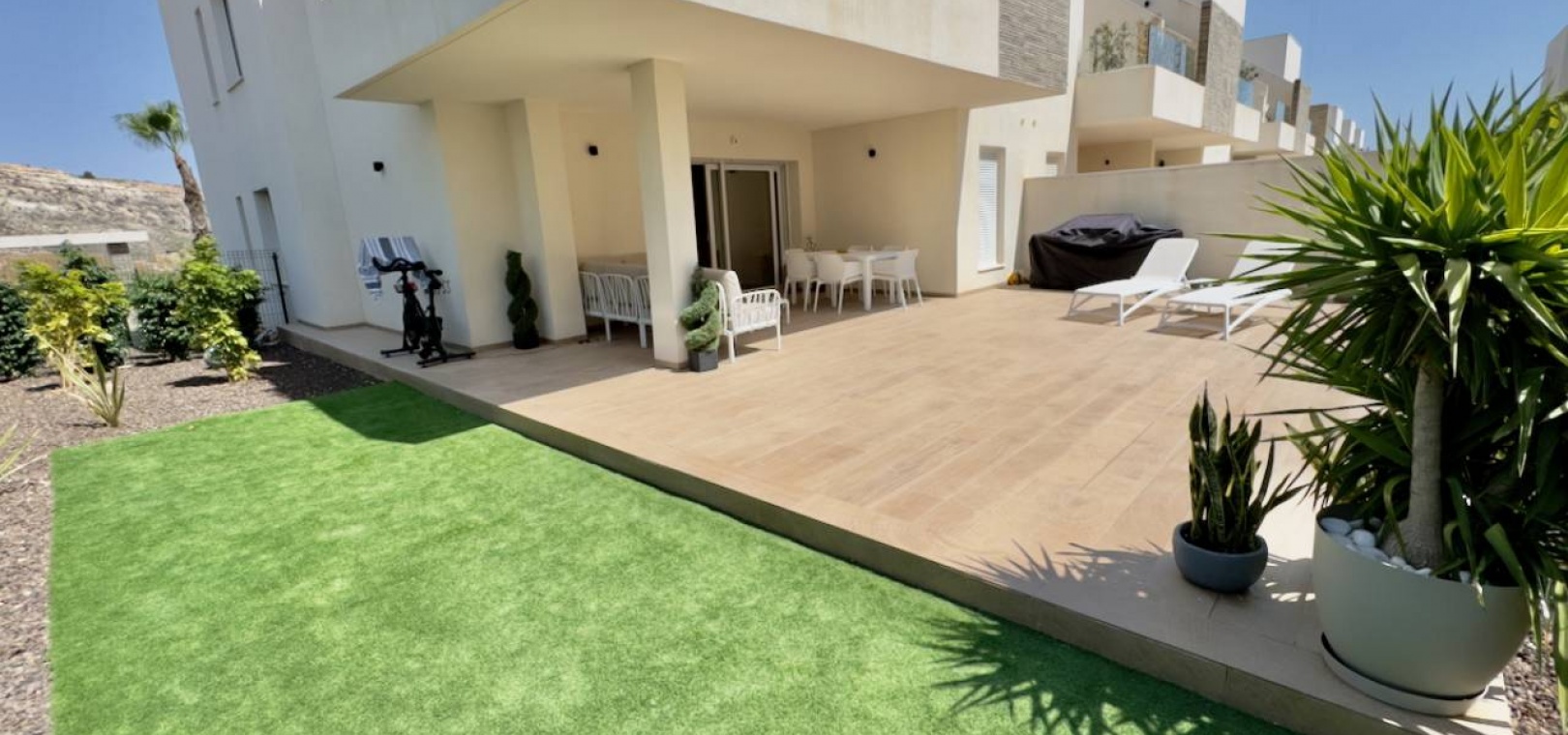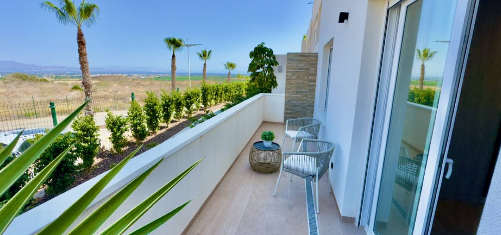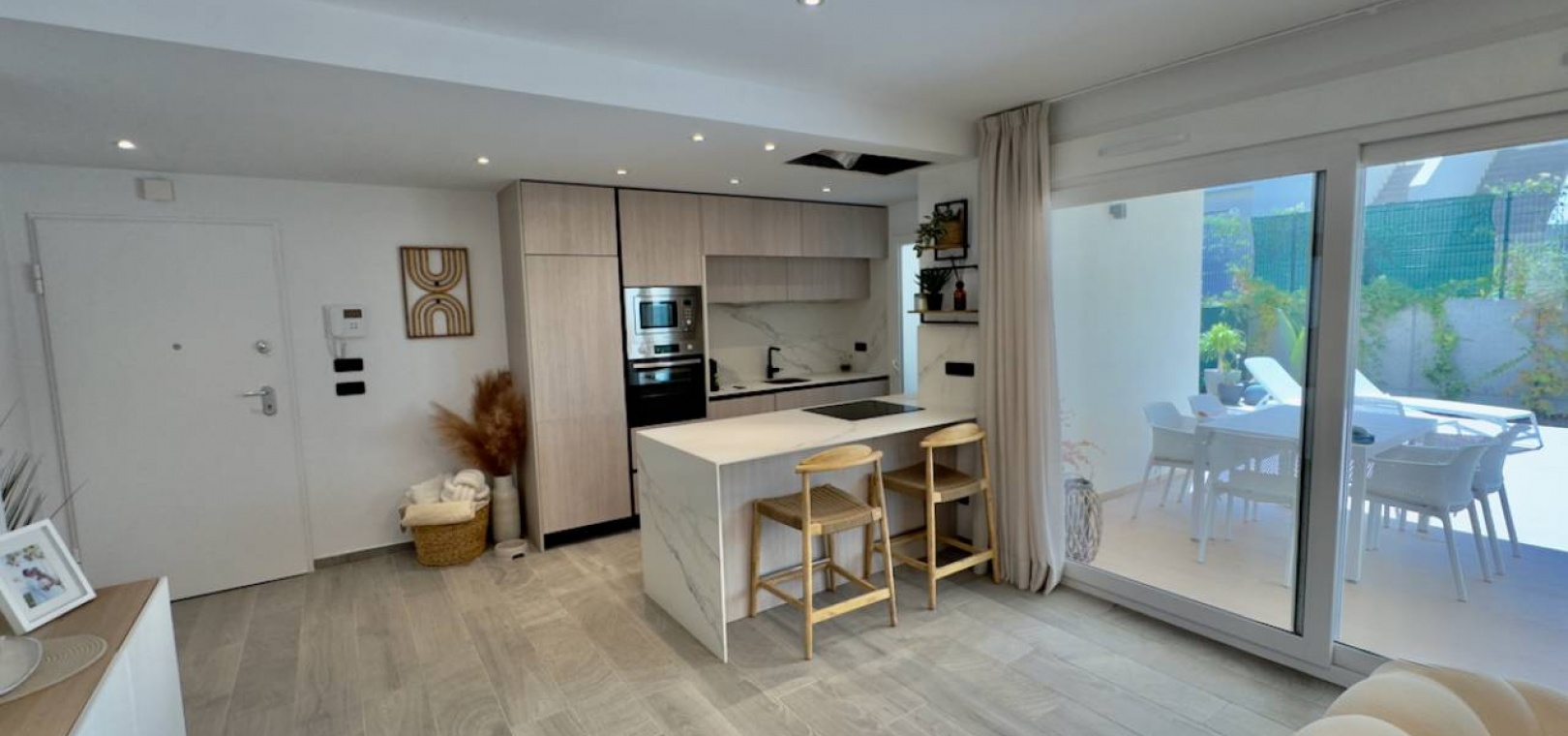 Prachtig modern appartement op het zuiden in La Finca Golf Resort. Dit is een fantastische kans om een prachtig gepresenteerd, modern appartement op het zuiden te kopen, gelegen in het prestigieuze La Finca Golf & Spa Resort, op slechts enkele minuten van het charmante Spaanse dorpje Algorfa aan de Costa Blanca Zuid. Dit hoekappartement op de begane grond biedt een ongeëvenaarde combinatie van stijl, ruimte en gemak. Het is direct klaar om te betrekken en beschikt over drie slaapkamers, twee badkamers en een scala aan hoogwaardige voorzieningen die het perfect maken voor permanente bewoning, een vakantieverblijf of een investeringspand. Belangrijkste kenmerken: 3 slaapkamers en 2 badkamers, zuidoriëntatie, groot hoekperceel met omlopende tuin, fantastisch uitgebreid terras - ideaal om gasten te ontvangen, lichte en ruime open woonkamer, luxe keuken met hoogwaardige apparatuur en marmeren ontbijtbar, bijkeuken, airconditioning met kanalen, gedeeltelijk gemeubileerd, directe toegang tot gemeenschappelijk zwembad, off-road parkeren en privé berging, omheinde community met prachtige gemeenschappelijke tuinen, slechts 17 minuten naar de kust en minder dan 35 minuten naar de luchthaven van Alicante, woningomschrijving: vanaf het moment dat u binnenkomt, zal dit appartement u versteld doen staan. De open woonruimte wordt overspoeld met natuurlijk licht, wat een warme en uitnodigende sfeer creëert. De stijlvolle keuken, afgewerkt tot een uitzonderlijke standaard, is voorzien van hoogwaardige apparatuur, een marmeren werkblad en een bijkeuken voor extra gemak. Glazen schuifdeuren leiden naar een heerlijk uitgebreid terras, perfect om buiten te eten, te zonnebaden of gewoon te ontspannen. De omlopende tuin is prachtig onderhouden en biedt voldoende ruimte om gasten te ontvangen, een barbecue te organiseren of te ontspannen met een goed boek. Aan het einde van de gang vindt u twee ruime gastenkamers met inbouwkasten, een moderne familiebadkamer met douche en de hoofdslaapkamer met en-suite badkamer, inbouwkasten en toegang tot een eigen terras met uitzicht op het platteland. Hoogtepunten van de locatie: La Finca Golf is een zeer gewilde locatie met een breed scala aan bars, restaurants en winkels. Het nabijgelegen dorp Algorfa biedt extra voorzieningen en authentieke Spaanse charme. De kustlijn ligt op slechts 17 minuten rijden, waardoor u gemakkelijk kunt genieten van het strand, de boulevard en de restaurants aan zee. Bovendien is de luchthaven van Alicante op minder dan 35 minuten afstand, ideaal voor wie regelmatig vliegt.