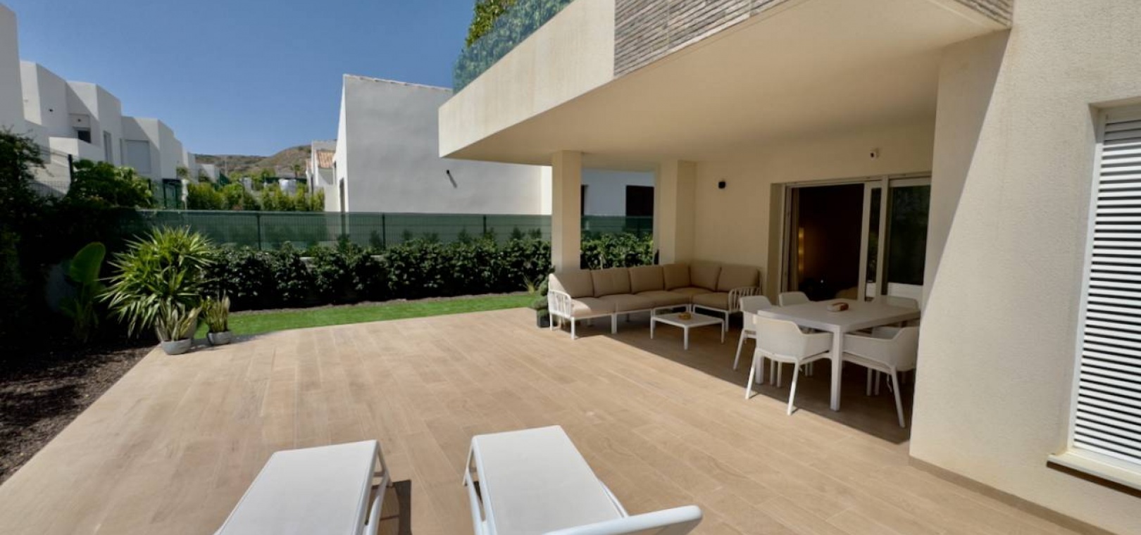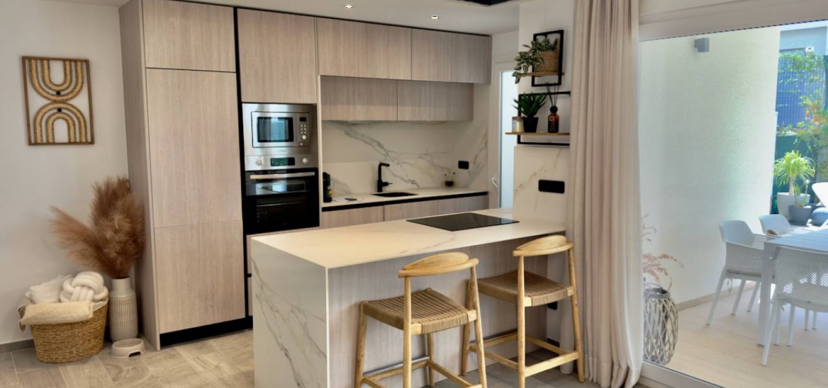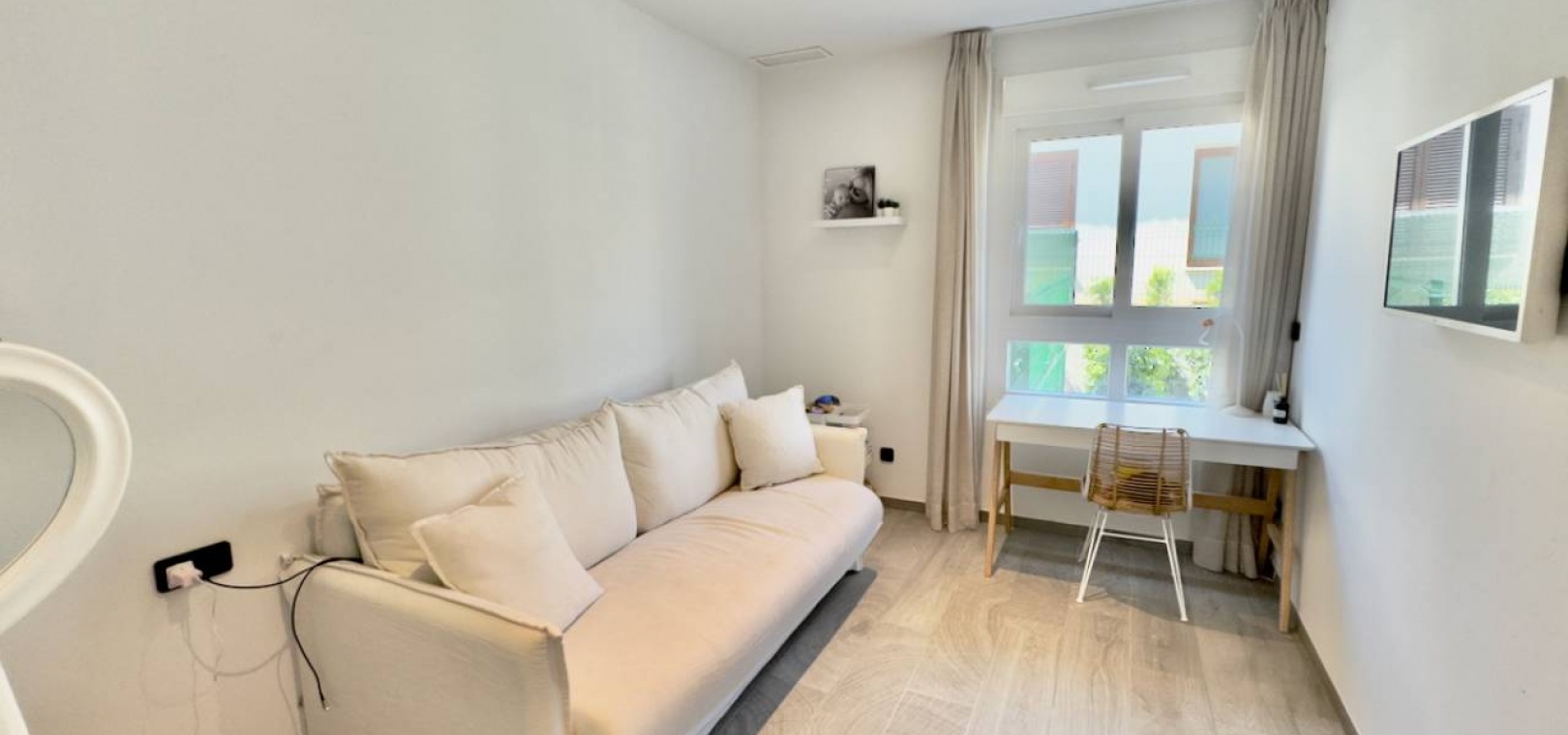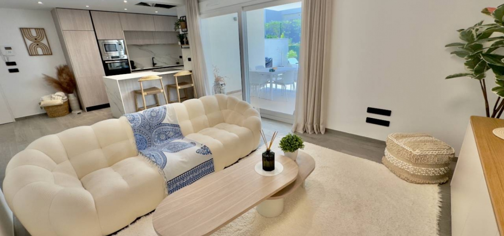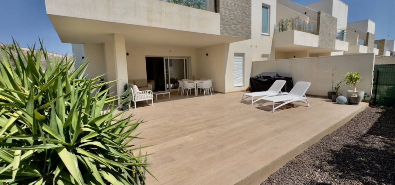 Prachtig modern appartement op het zuiden in La Finca Golf Resort. Dit is een fantastische kans om een prachtig gepresenteerd, modern appartement op het zuiden te kopen, gelegen in het prestigieuze La Finca Golf & Spa Resort, op slechts enkele minuten van het charmante Spaanse dorpje Algorfa aan de Costa Blanca Zuid. Dit hoekappartement op de begane grond biedt een ongeëvenaarde combinatie van stijl, ruimte en gemak. Het is direct klaar om te betrekken en beschikt over drie slaapkamers, twee badkamers en een scala aan hoogwaardige voorzieningen die het perfect maken voor permanente bewoning, een vakantieverblijf of een investeringspand. Belangrijkste kenmerken: 3 slaapkamers en 2 badkamers, zuidoriëntatie, groot hoekperceel met omlopende tuin, fantastisch uitgebreid terras - ideaal om gasten te ontvangen, lichte en ruime open woonkamer, luxe keuken met hoogwaardige apparatuur en marmeren ontbijtbar, bijkeuken, airconditioning met kanalen, gedeeltelijk gemeubileerd, directe toegang tot gemeenschappelijk zwembad, off-road parkeren en privé berging, omheinde community met prachtige gemeenschappelijke tuinen, slechts 17 minuten naar de kust en minder dan 35 minuten naar de luchthaven van Alicante, woningomschrijving: vanaf het moment dat u binnenkomt, zal dit appartement u versteld doen staan. De open woonruimte wordt overspoeld met natuurlijk licht, wat een warme en uitnodigende sfeer creëert. De stijlvolle keuken, afgewerkt tot een uitzonderlijke standaard, is voorzien van hoogwaardige apparatuur, een marmeren werkblad en een bijkeuken voor extra gemak. Glazen schuifdeuren leiden naar een heerlijk uitgebreid terras, perfect om buiten te eten, te zonnebaden of gewoon te ontspannen. De omlopende tuin is prachtig onderhouden en biedt voldoende ruimte om gasten te ontvangen, een barbecue te organiseren of te ontspannen met een goed boek. Aan het einde van de gang vindt u twee ruime gastenkamers met inbouwkasten, een moderne familiebadkamer met douche en de hoofdslaapkamer met en-suite badkamer, inbouwkasten en toegang tot een eigen terras met uitzicht op het platteland. Hoogtepunten van de locatie: La Finca Golf is een zeer gewilde locatie met een breed scala aan bars, restaurants en winkels. Het nabijgelegen dorp Algorfa biedt extra voorzieningen en authentieke Spaanse charme. De kustlijn ligt op slechts 17 minuten rijden, waardoor u gemakkelijk kunt genieten van het strand, de boulevard en de restaurants aan zee. Bovendien is de luchthaven van Alicante op minder dan 35 minuten afstand, ideaal voor wie regelmatig vliegt.