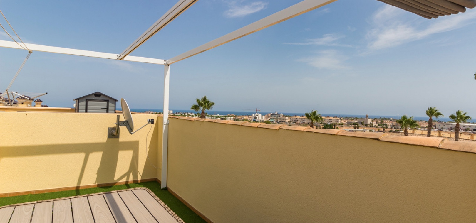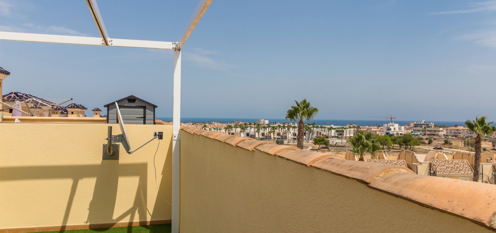 Een bijzonder kenmerk is het indrukwekkende privé-solarium op het dak van ruim 25 m², compleet met kunstgras, een pergola voor schaduw en een uitzonderlijk uitzicht op de Middellandse Zee - ideaal om te zonnebaden, gasten te ontvangen of buiten te eten.