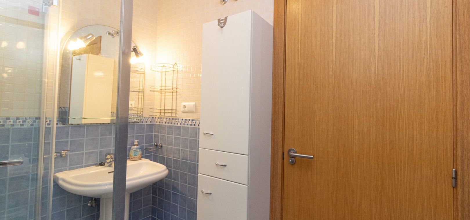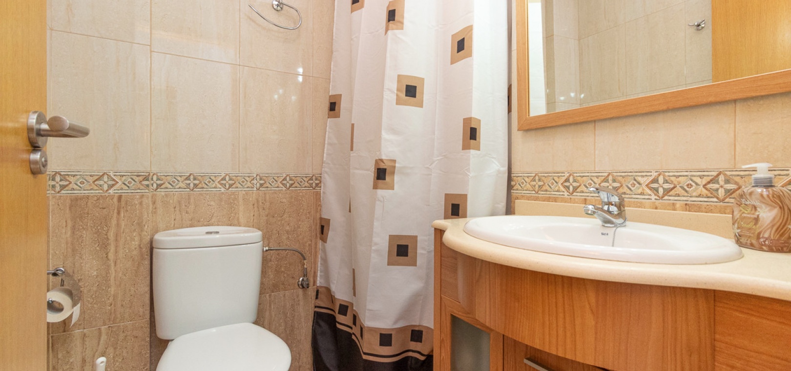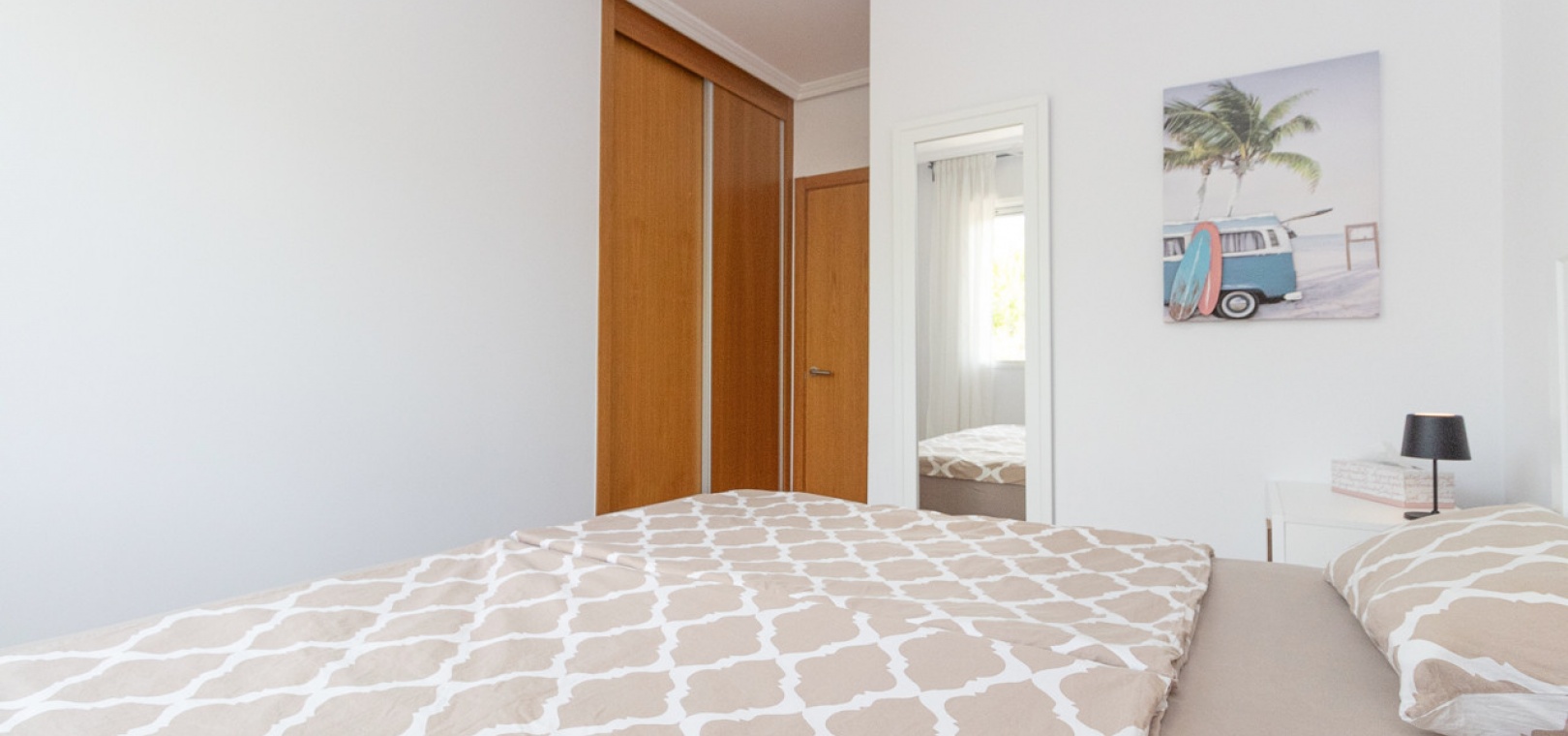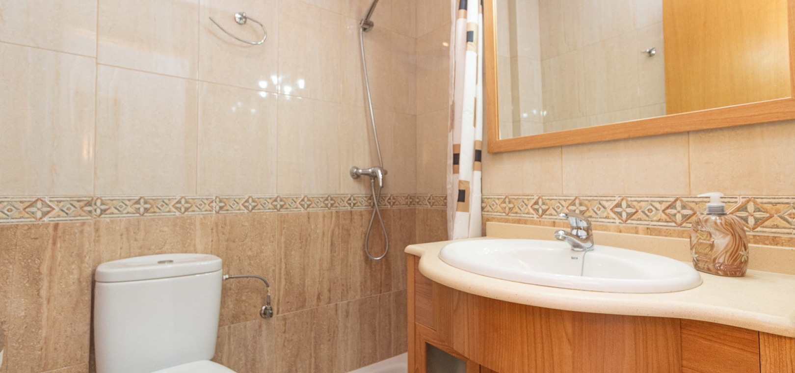 Het appartement beschikt over een hoofdslaapkamer met eigen badkamer en douche, een tweede slaapkamer met tweepersoonsbed, een extra moderne badkamer met douche en een aparte, volledig uitgeruste keuken met voldoende ruimte om te eten. De lichte woonkamer komt uit op een eigen balkonterras met uitzicht op het gemeenschappelijke zwembad en de tuinen.