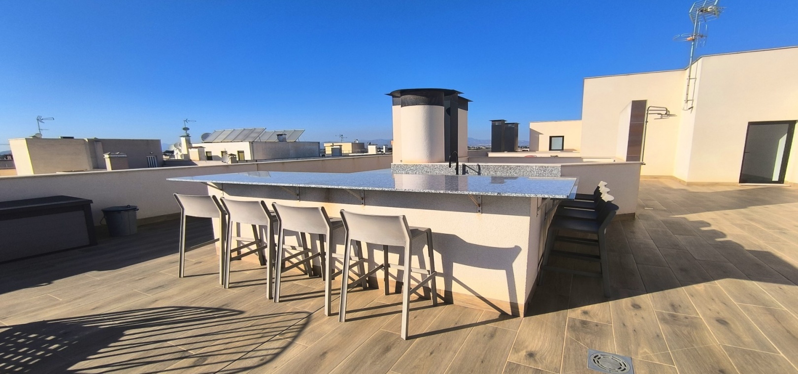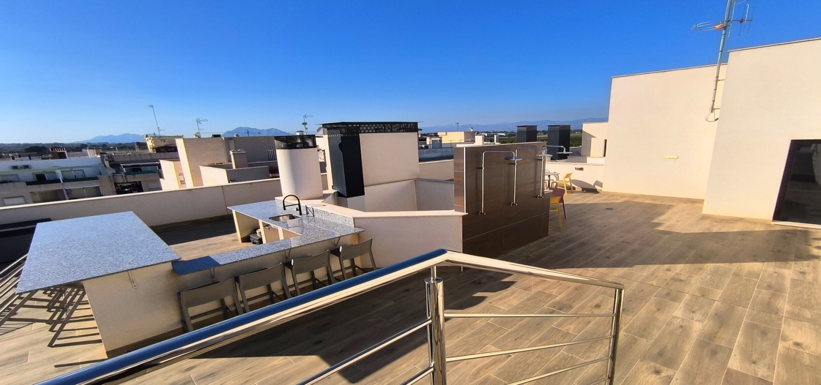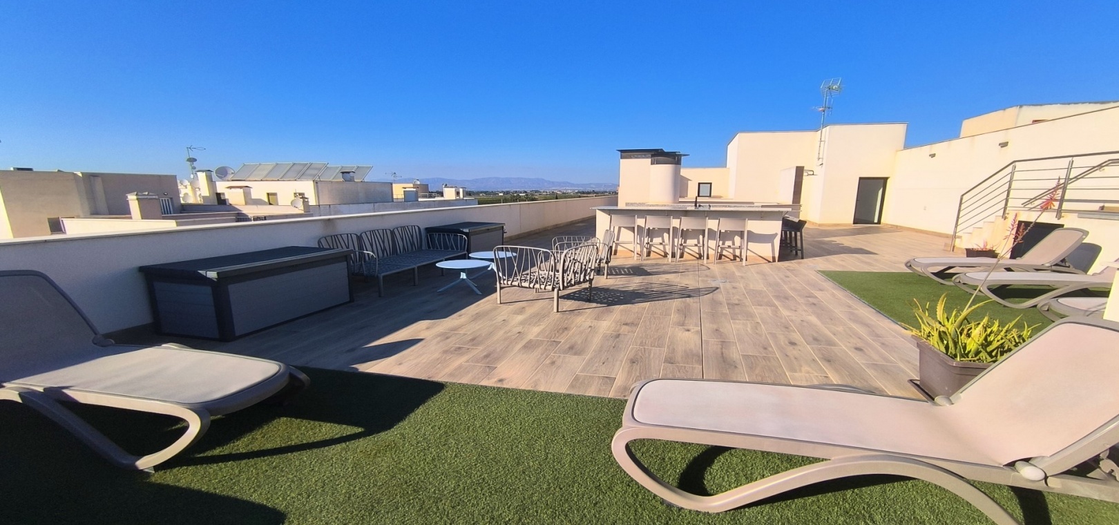 Bewoners hebben toegang tot uitzonderlijke gemeenschappelijke faciliteiten, waaronder een fantastisch dakterras met een buitenfitnessruimte, sauna en zonneterrassen. De woning beschikt ook over een ondergrondse berging, een lift en voorzieningen die speciaal zijn ontworpen voor mensen met beperkte mobiliteit.