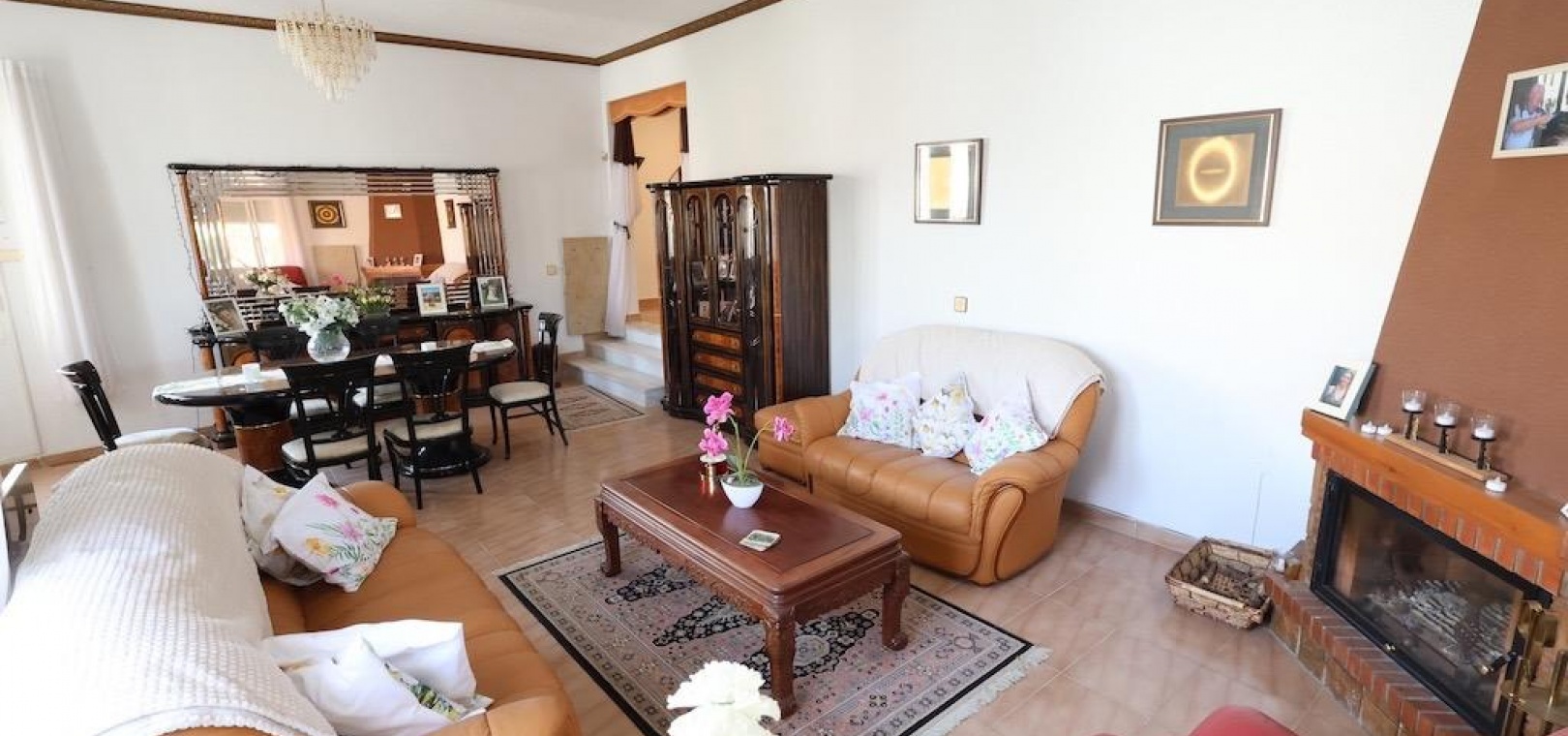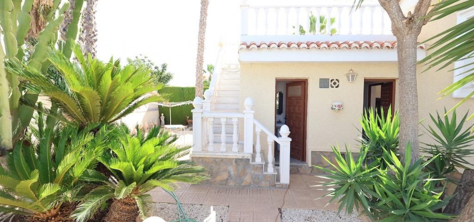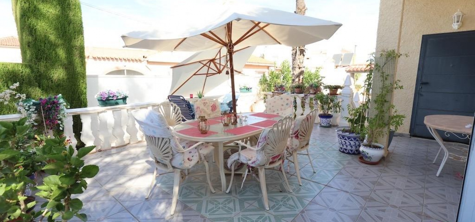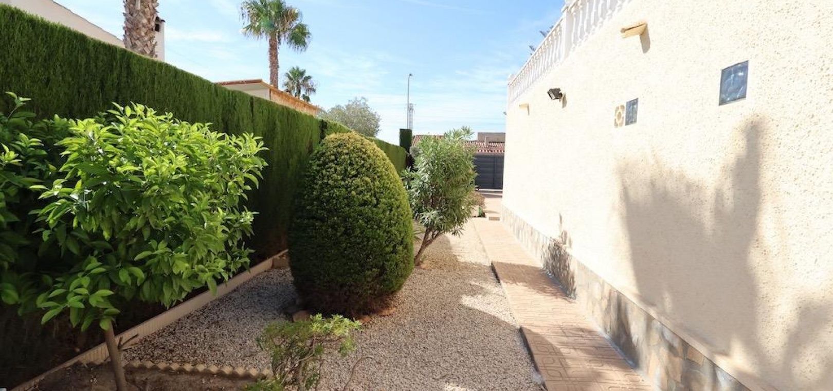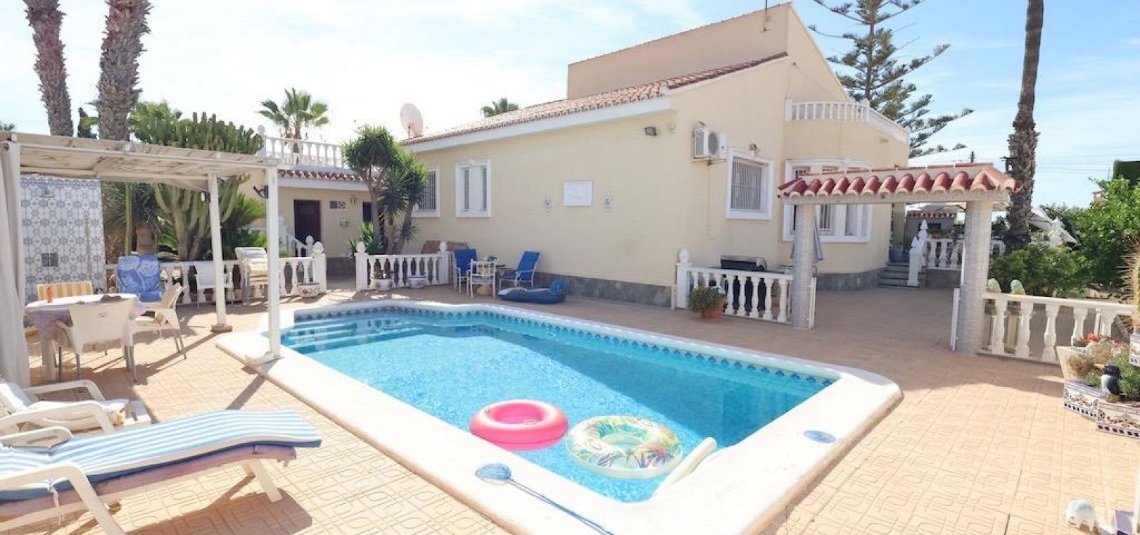 Deze charmante vrijstaande villa, gelegen in de rustige woonwijk El Chaparral, biedt comfort en privacy op een royaal perceel van 800 m² . Met een gelijkvloerse indeling en een bebouwde oppervlakte van 188 m² is deze villa perfect voor bewoning het hele jaar door.