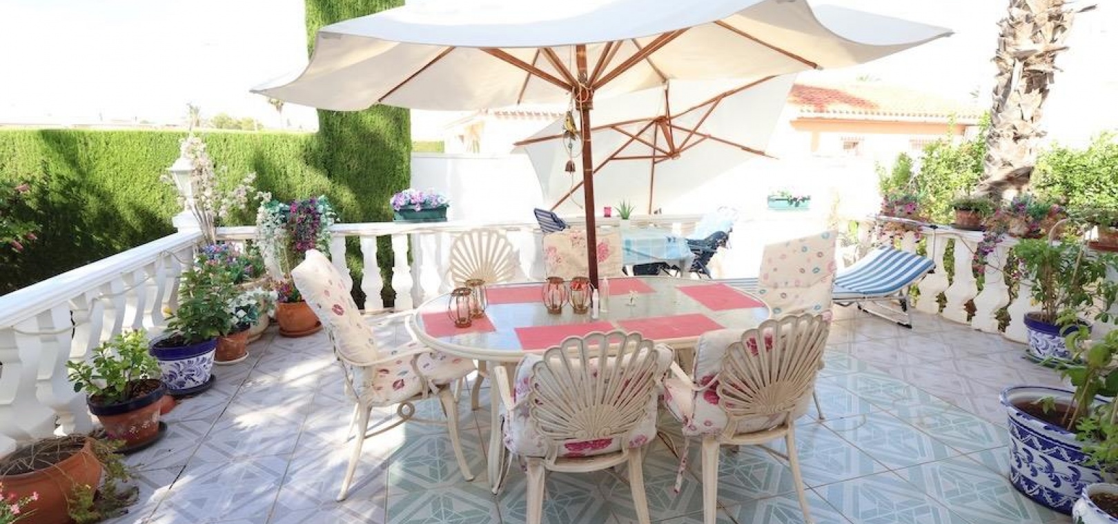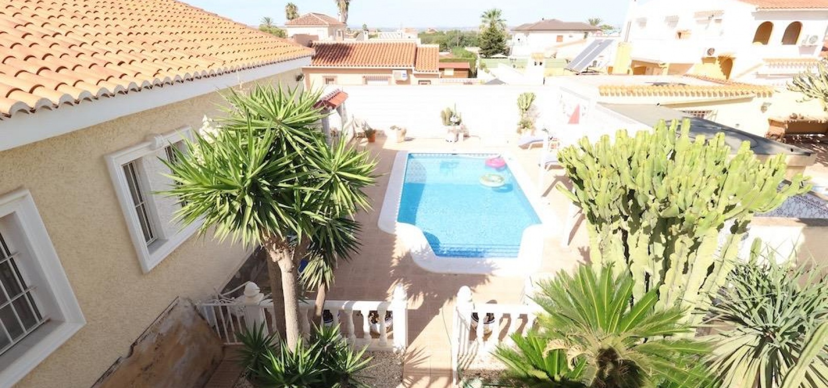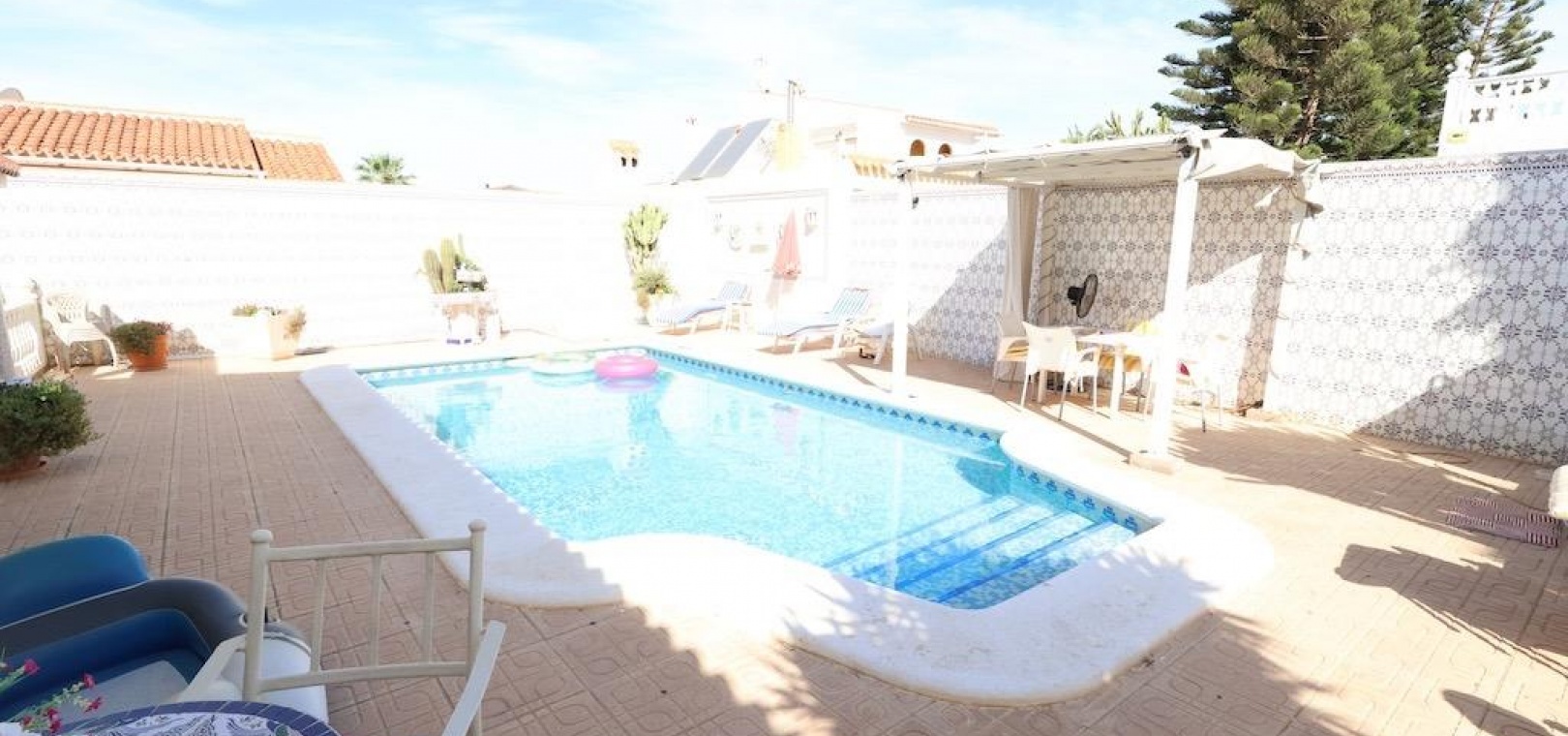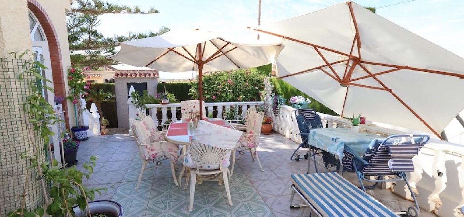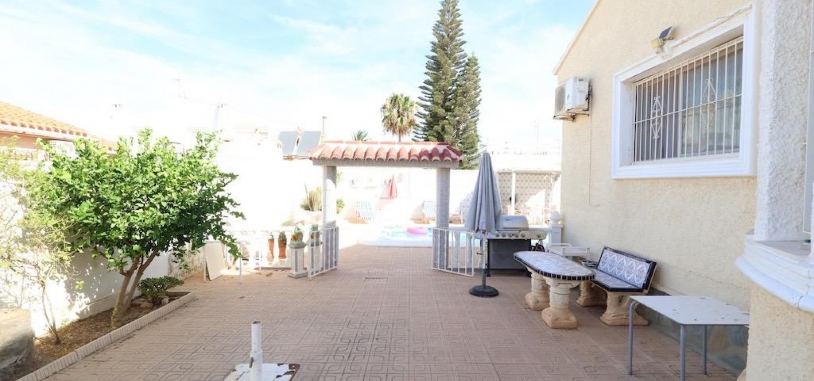 Deze charmante vrijstaande villa, gelegen in de rustige woonwijk El Chaparral, biedt comfort en privacy op een royaal perceel van 800 m² . Met een gelijkvloerse indeling en een bebouwde oppervlakte van 188 m² is deze villa perfect voor bewoning het hele jaar door.