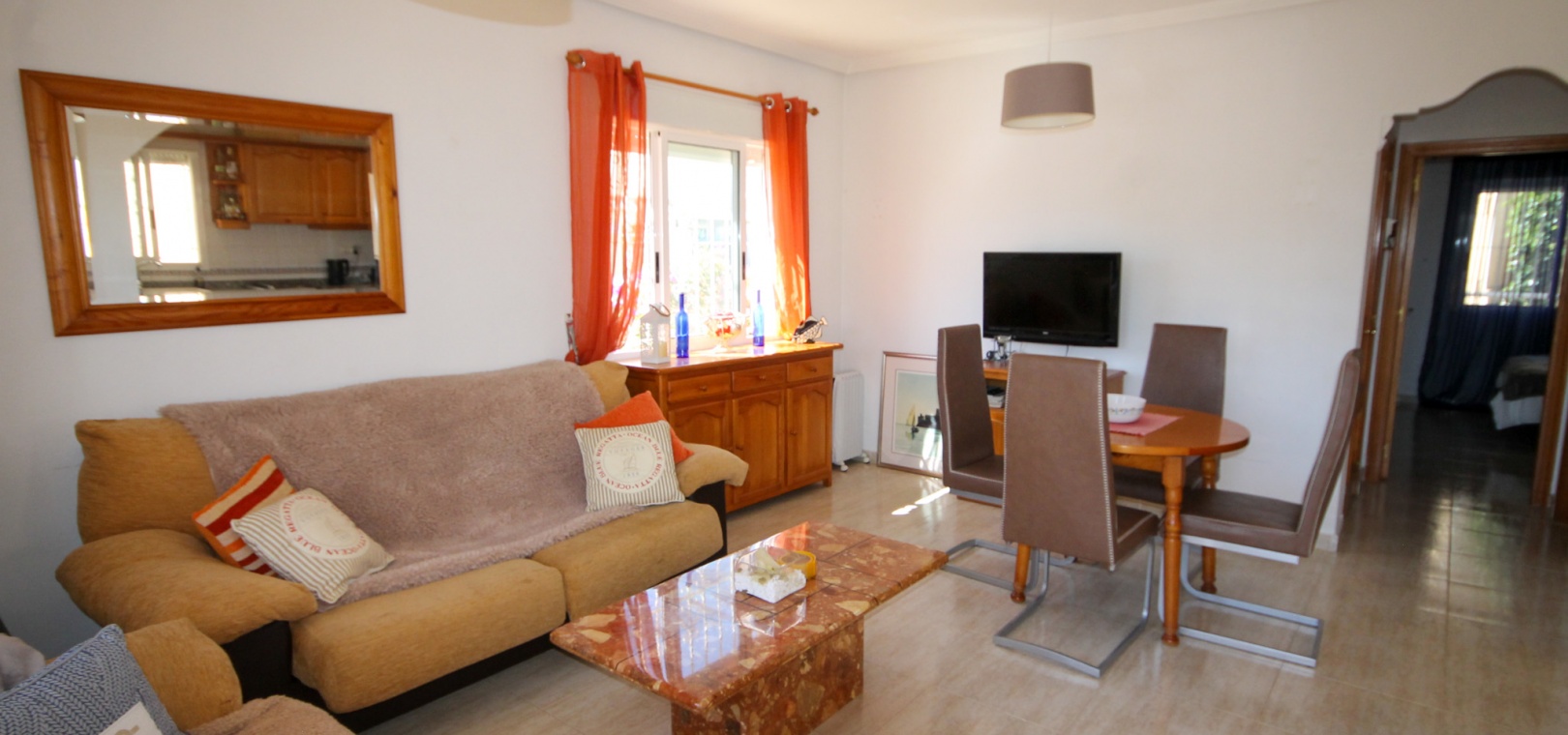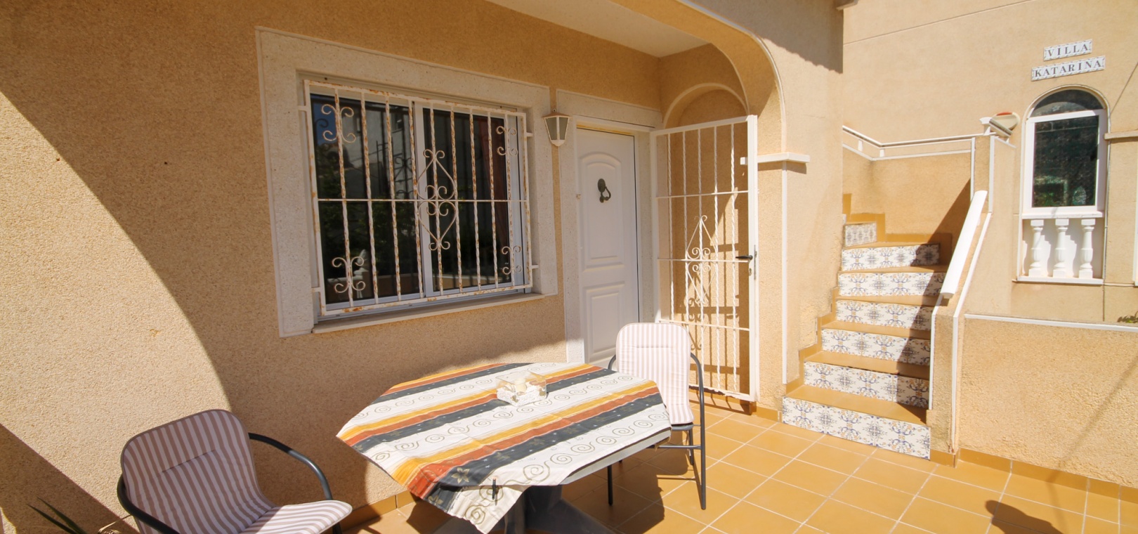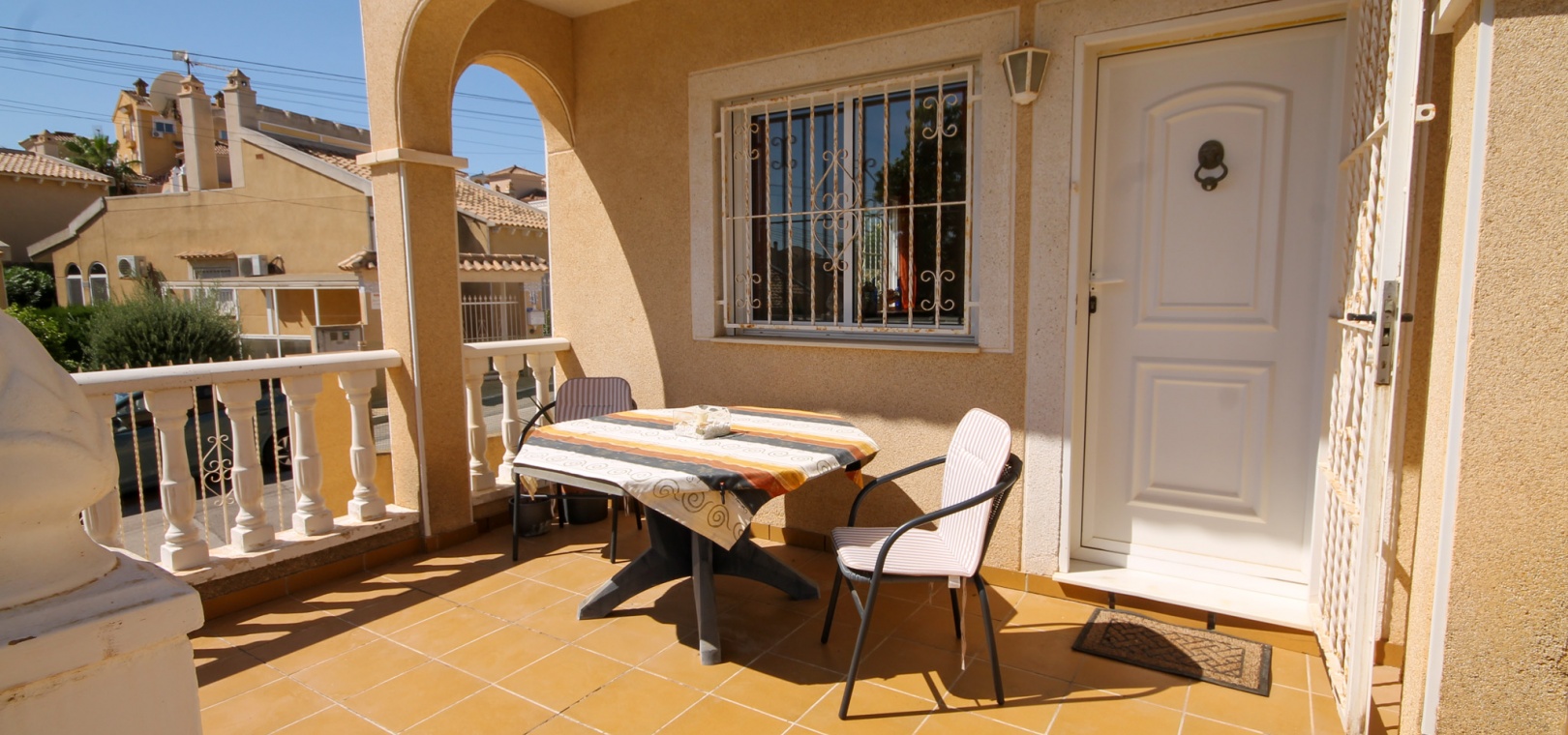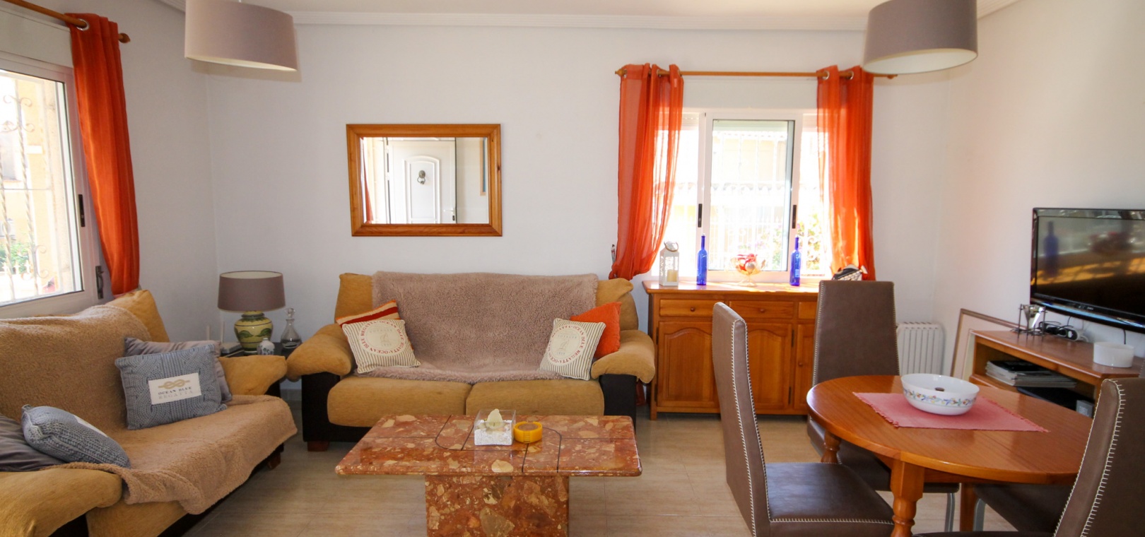 Gelegen in de populaire urbanisatie Blue Lagoon, bieden wij deze goed gepresenteerde vrijstaande gelijkvloerse woning aan. Deze villa is sinds de bouw op de markt gekomen en is uitsluitend als vakantiehuis voor de eigenaar gebruikt. De villa bestaat uit een zonnig terras dat grenst aan een ruime woon-/eetkamer met ramen aan beide zijden, waardoor er veel licht binnenkomt. Aangrenzend bevinden zich een open keuken en een bijkeuken. De hal leidt naar een familiebadkamer, de hoofdslaapkamer met een en-suite badkamer met douche en een tweede tweepersoonsslaapkamer met inbouwkasten. Vanaf het terras leidt een trap naar het dakterras met voldoende ruimte om te ontspannen of gasten te ontvangen. Er is een grote berging met ramen en aansluitingen voor de installatie van een slaapkamer en badkamer. De tuin is onderhoudsarm en het terras biedt parkeergelegenheid op eigen terrein. De villa ligt op loopafstand van alle voorzieningen, op korte loopafstand van een aangelegd park en op slechts 10 minuten rijden van de dichtstbijzijnde stranden aan de Orihuela Costa.