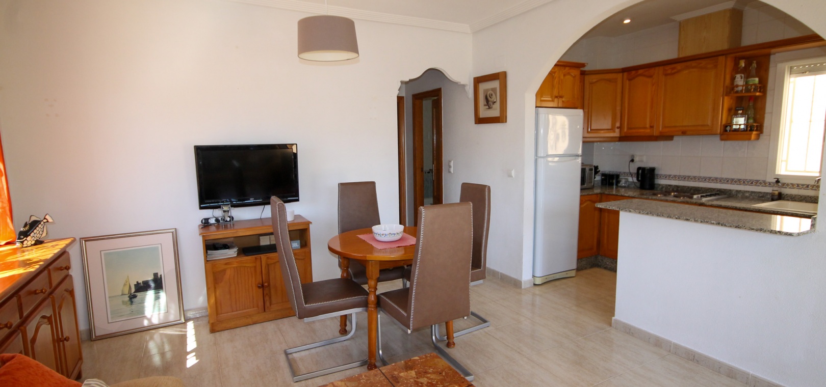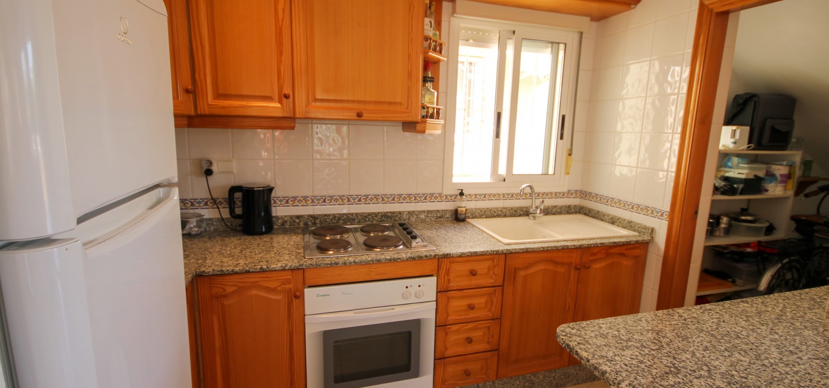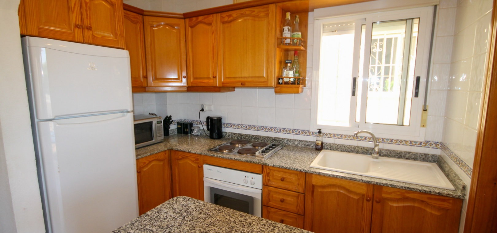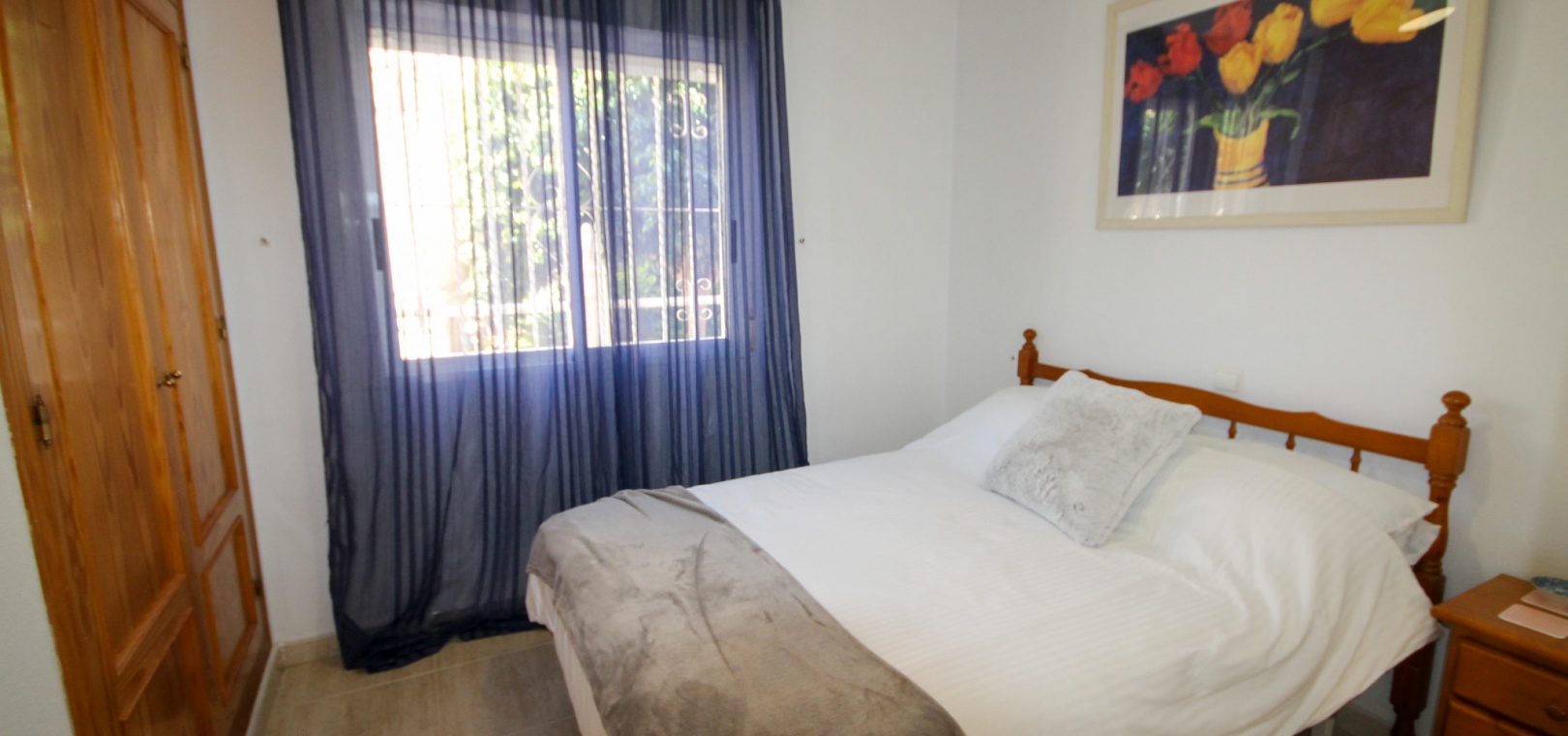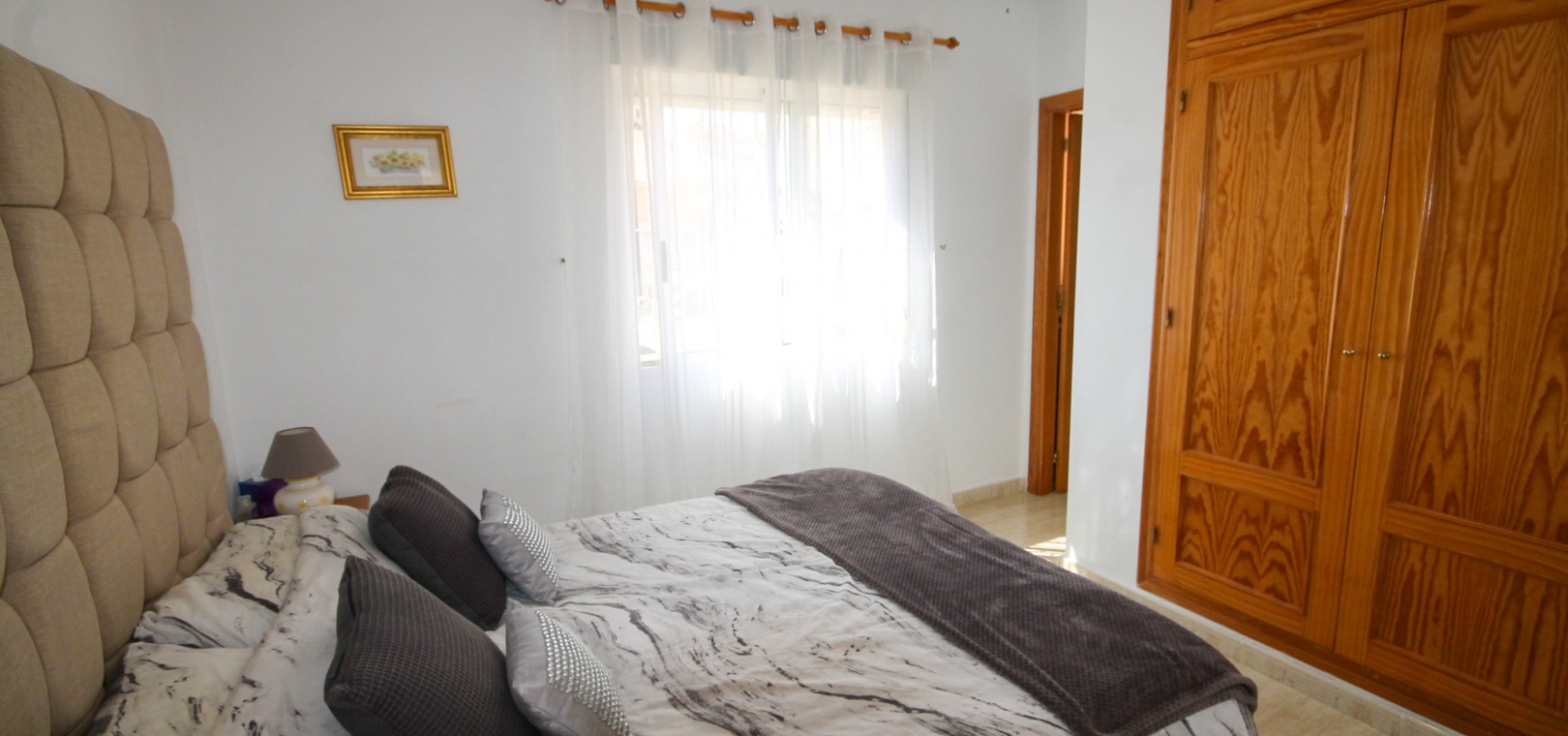 Gelegen in de populaire urbanisatie Blue Lagoon, bieden wij deze goed gepresenteerde vrijstaande gelijkvloerse woning aan. Deze villa is sinds de bouw op de markt gekomen en is uitsluitend als vakantiehuis voor de eigenaar gebruikt. De villa bestaat uit een zonnig terras dat grenst aan een ruime woon-/eetkamer met ramen aan beide zijden, waardoor er veel licht binnenkomt. Aangrenzend bevinden zich een open keuken en een bijkeuken. De hal leidt naar een familiebadkamer, de hoofdslaapkamer met een en-suite badkamer met douche en een tweede tweepersoonsslaapkamer met inbouwkasten. Vanaf het terras leidt een trap naar het dakterras met voldoende ruimte om te ontspannen of gasten te ontvangen. Er is een grote berging met ramen en aansluitingen voor de installatie van een slaapkamer en badkamer. De tuin is onderhoudsarm en het terras biedt parkeergelegenheid op eigen terrein. De villa ligt op loopafstand van alle voorzieningen, op korte loopafstand van een aangelegd park en op slechts 10 minuten rijden van de dichtstbijzijnde stranden aan de Orihuela Costa.