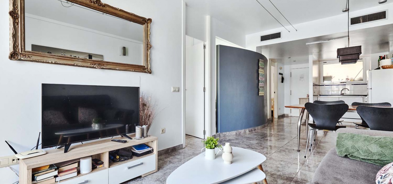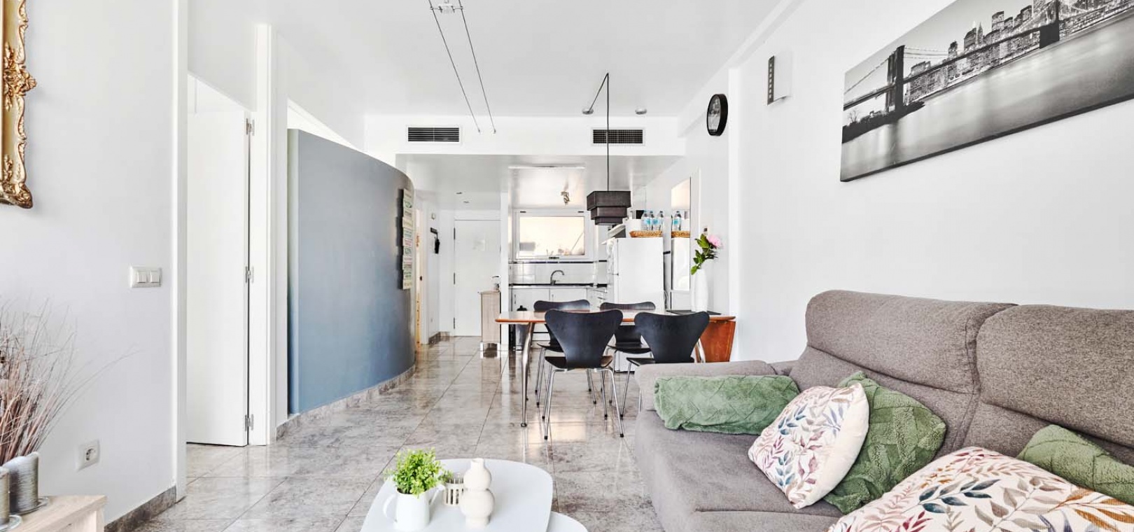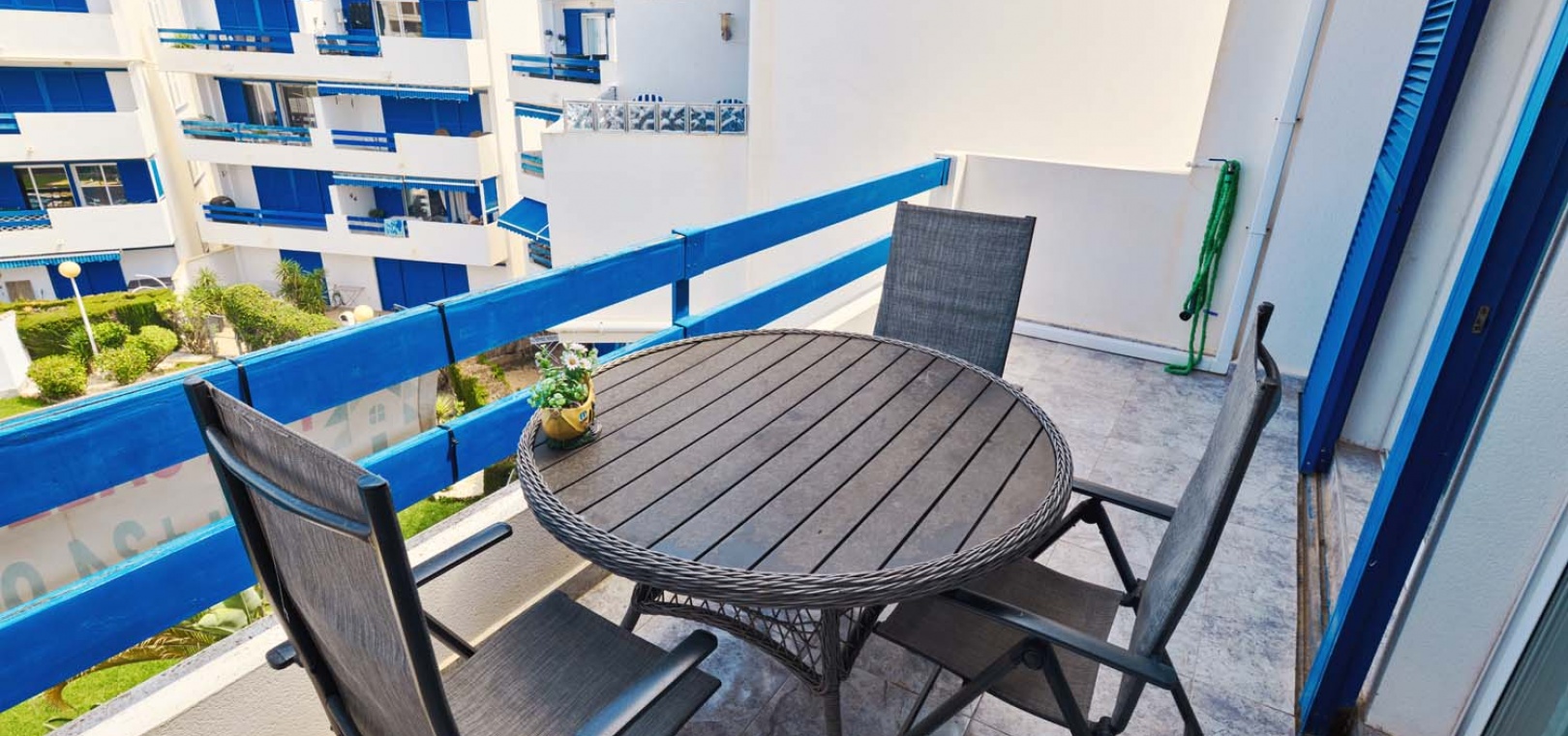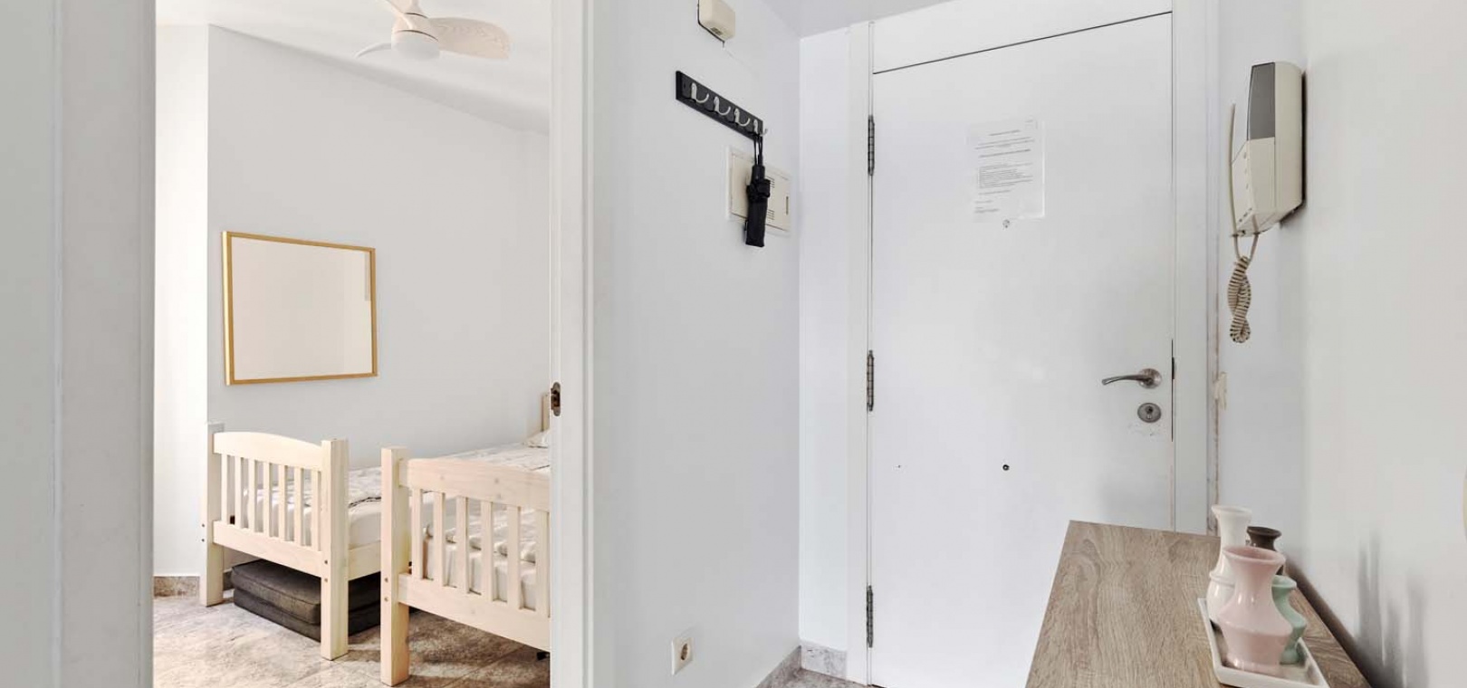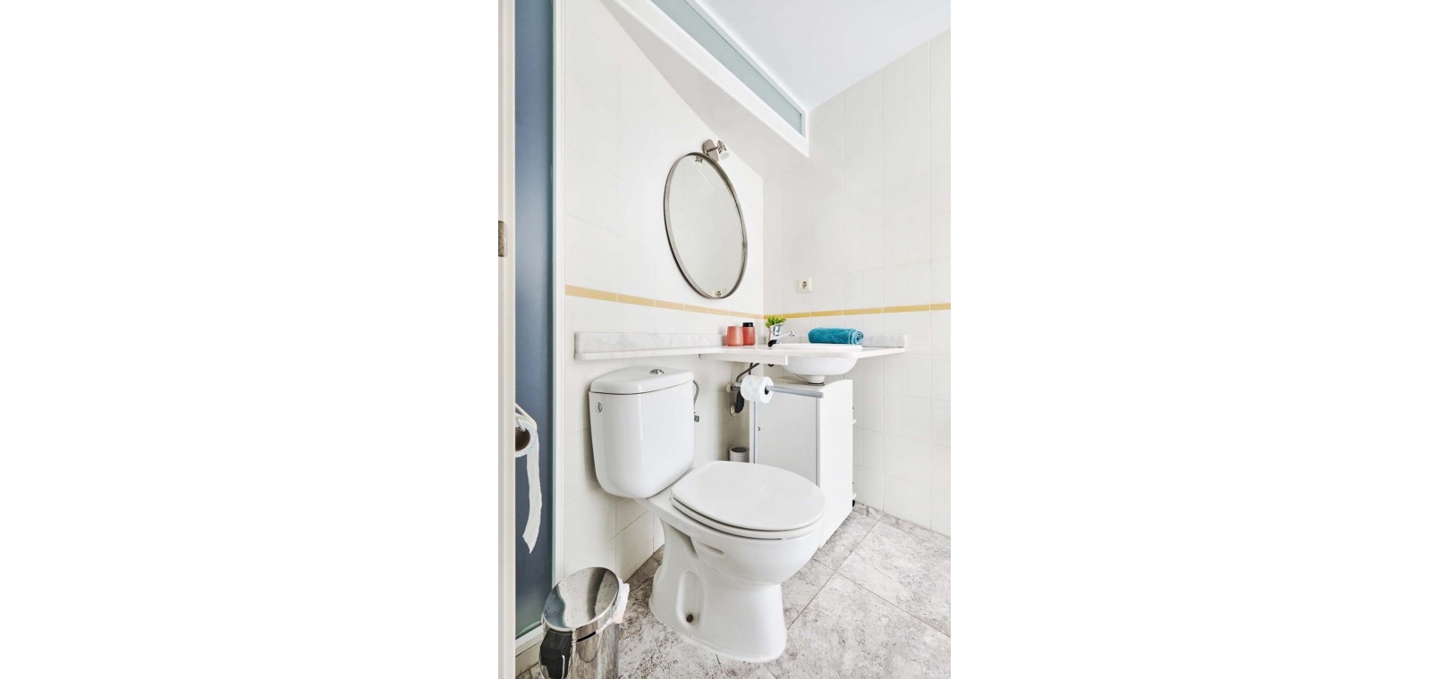 Een van de meest opvallende kenmerken is het grote privé-solarium, bereikbaar via een trap net buiten de ingang van het appartement. Vanaf hier geniet u van een spectaculair uitzicht op zee, met een zonnescherm dat schaduw biedt wanneer nodig – perfect om te ontspannen of gasten te ontvangen.