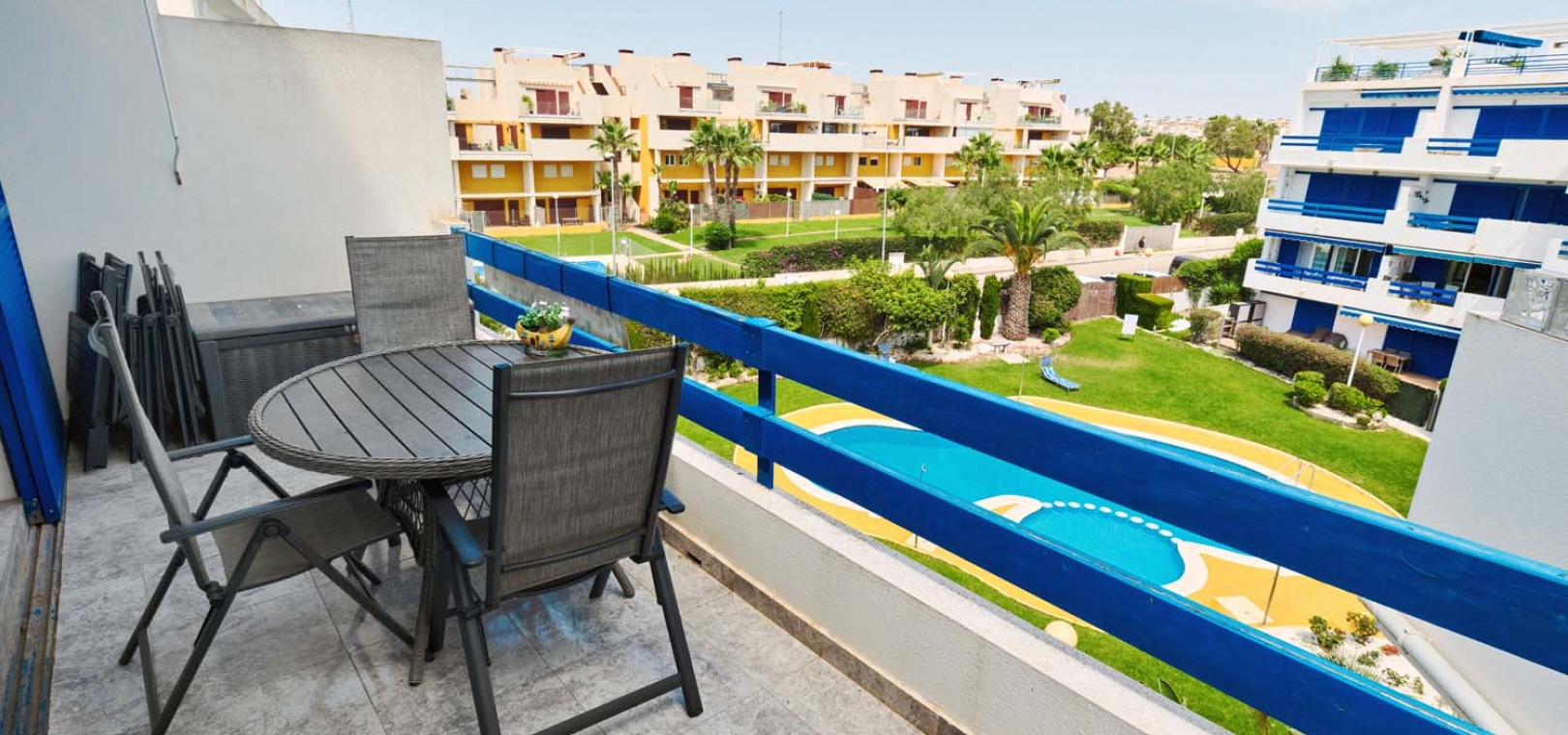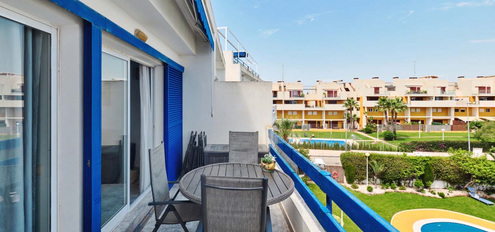 Een fantastische kans om dit goed gepresenteerde penthouse met 2 slaapkamers en 2 badkamers te kopen, ideaal gelegen in de gewilde wijk Las Terrazas in Playa Flamenca. Omgeven door prachtig onderhouden tuinen en een heerlijk gemeenschappelijk zwembad, ligt de woning op korte loopafstand van een ruime keuze aan bars, restaurants, supermarkten en de prachtige Blauwe Vlag-stranden van Orihuela Costa.