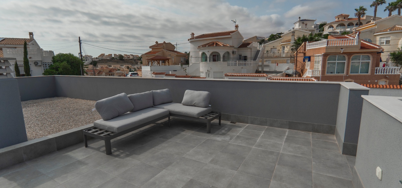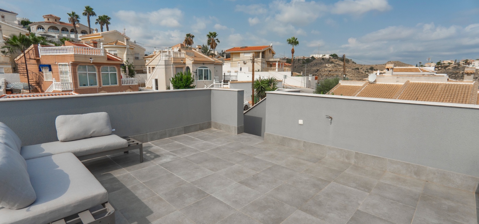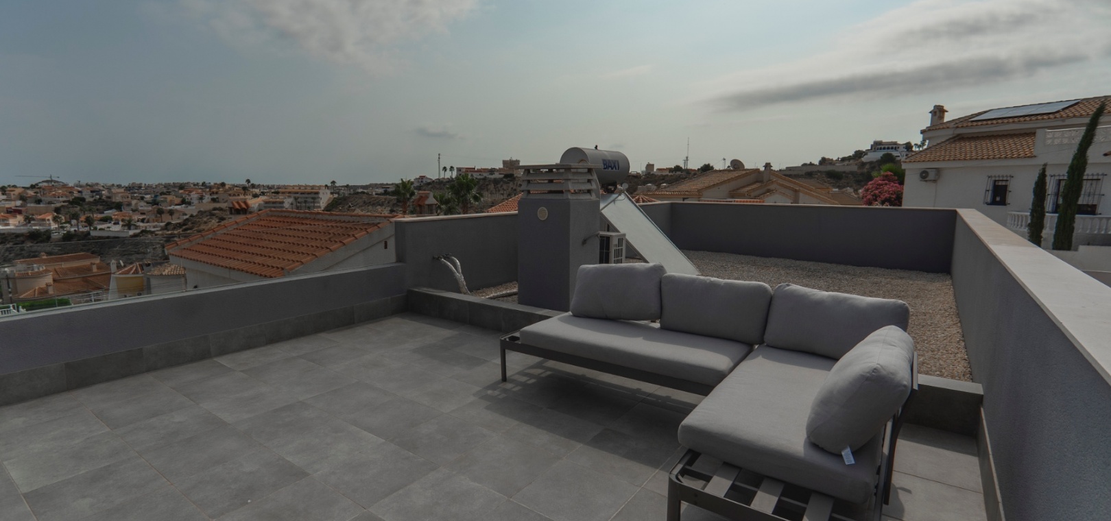 Privézwembad en zonovergoten patio's – Perfect voor ontspanning en vermaak Daksolarium – Panoramisch uitzicht op La Marquesa Golf en de omgeving Open-plan woonkamer – Lichte woonkamer met een moderne, volledig uitgeruste keuken 2 slaapkamers, 2 badkamers – ingebouwde kasten en inloopdouches Onderhoudsvriendelijke tuin – Met eigen parkeergelegenheid op het perceel Instapklaar – Opgeleverd in 2018, uitstekende staat