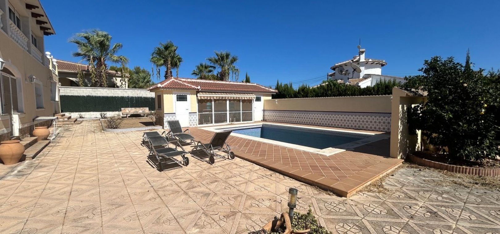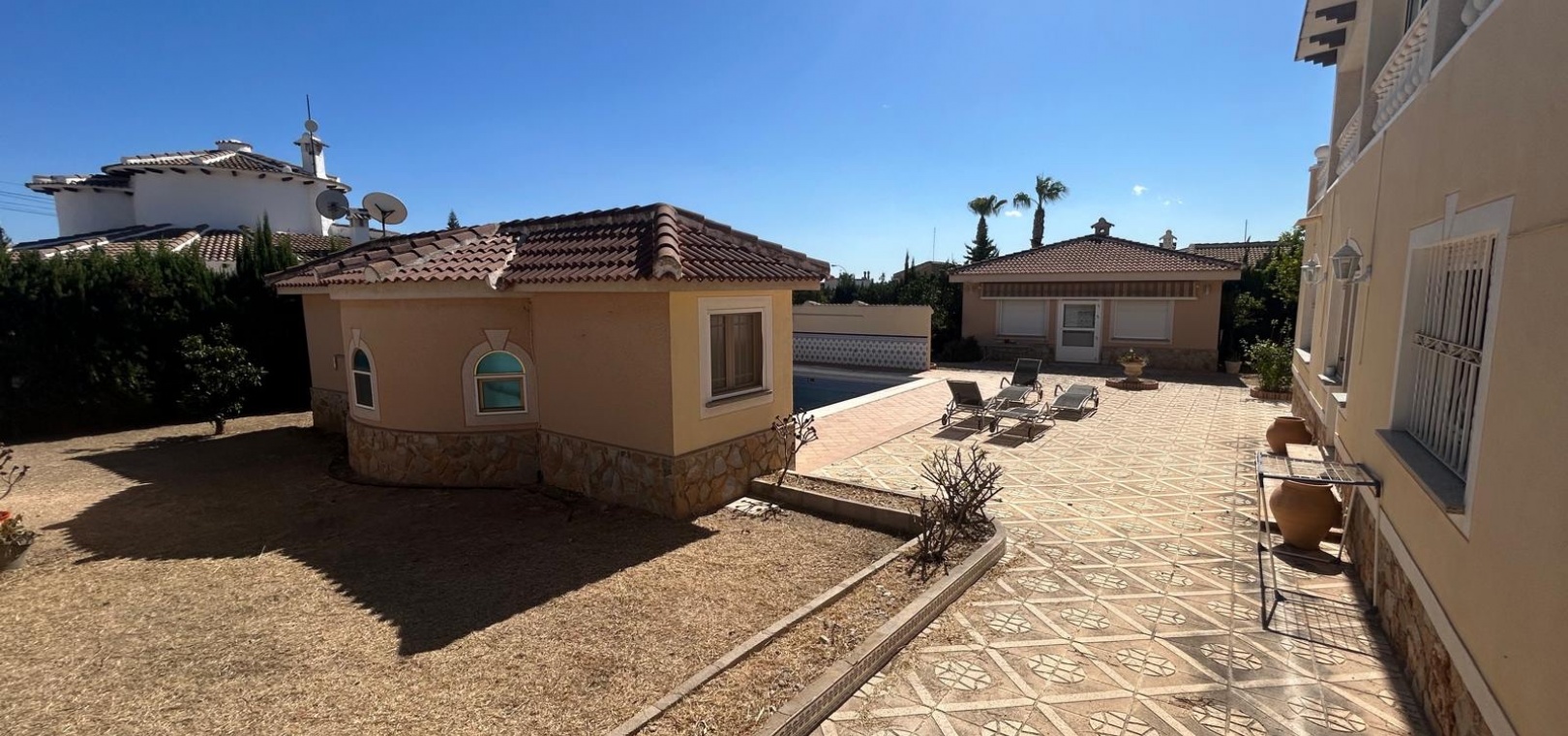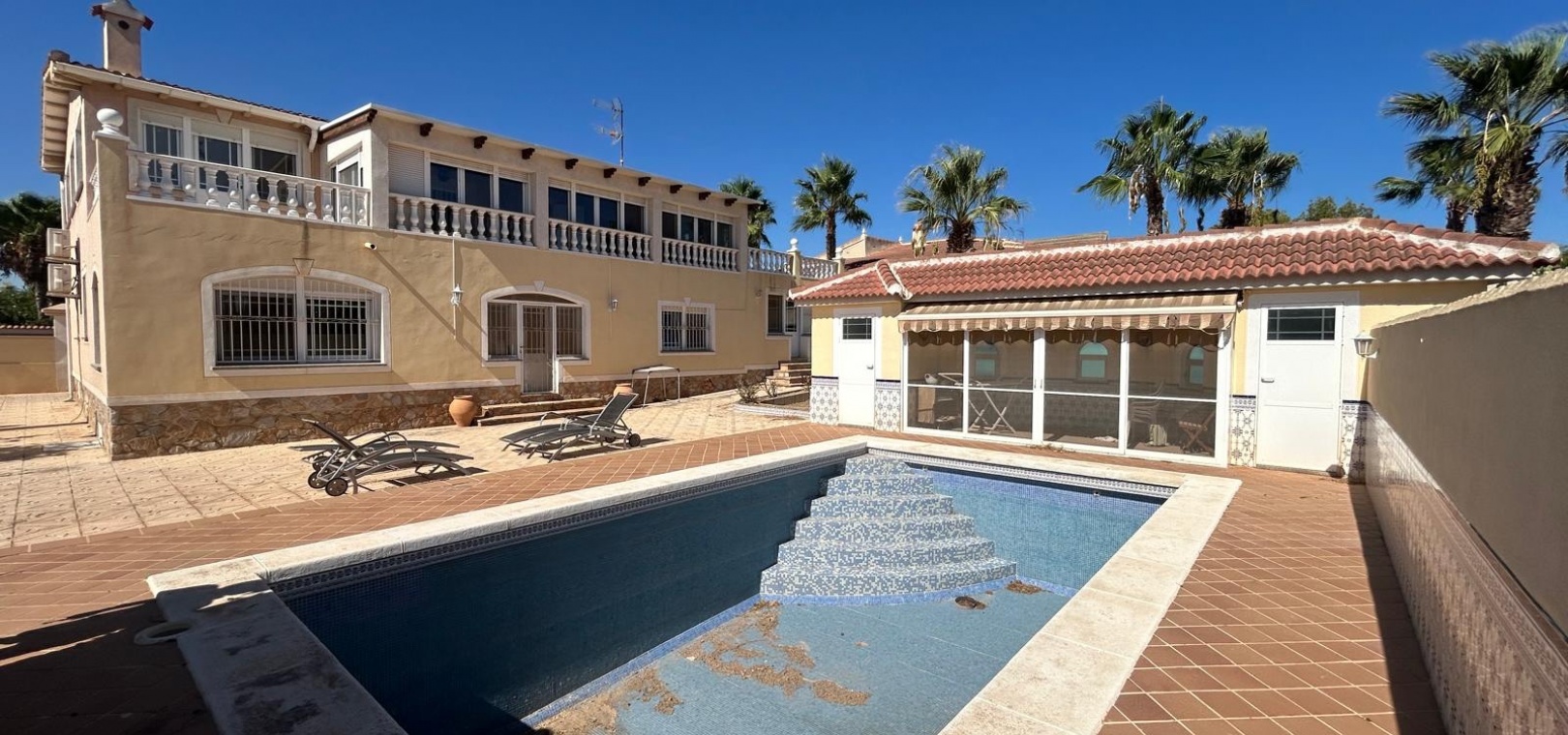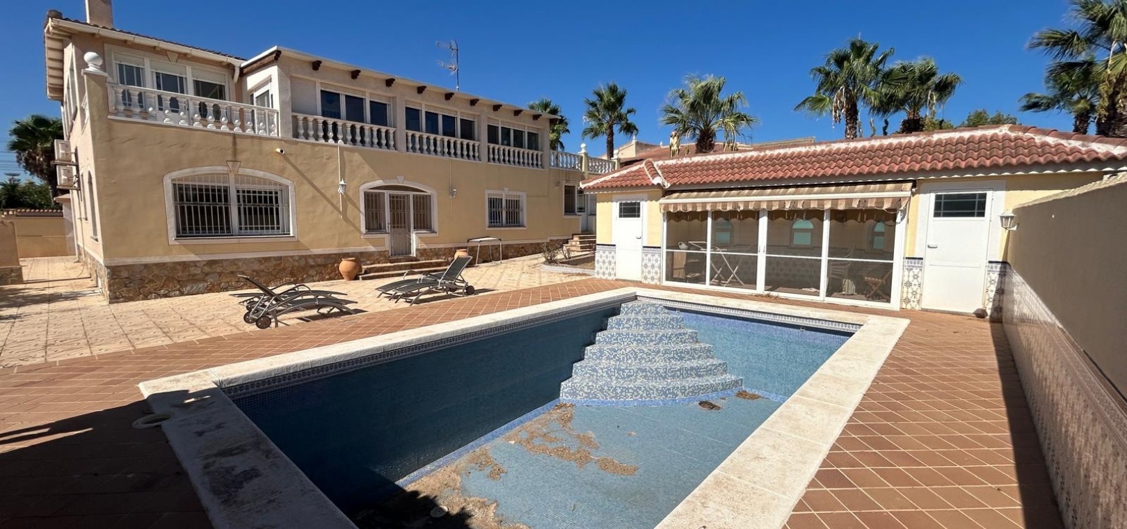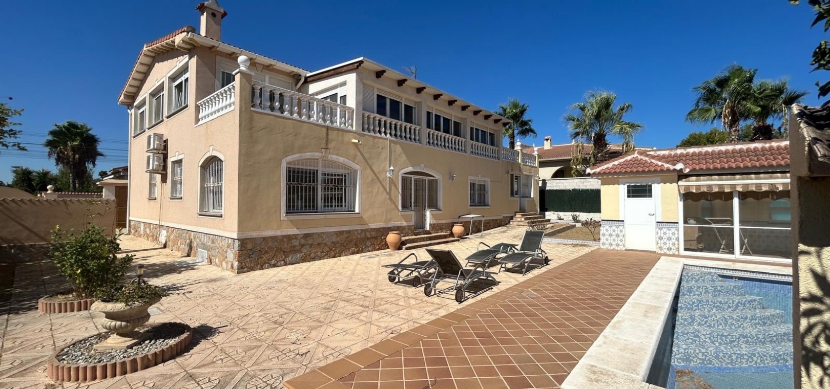 Prachtige villa met 6 slaapkamers en een apart gastenverblijf in het hart van Ciudad Quesada. Gelegen aan de gewilde Calle Azul, midden in het centrum van Ciudad Quesada (Rojales), biedt deze uitzonderlijke woning de perfecte combinatie van ruimte, comfort en gemak. Gelegen op een royaal perceel van 1.125 m² met een aanzienlijke bebouwde oppervlakte van 426 m², is deze villa ideaal voor grote gezinnen, het ontvangen van gasten of zelfs als investering. Belangrijkste kenmerken: 6 ruime slaapkamers en 4 badkamers, waaronder een volledig zelfstandige, onafhankelijke accommodatie in de woning - compleet met een eigen keuken, woonkamer, slaapkamer en badkamer - perfect voor gasten, een uitgebreide familie of verhuur. Een privézwembad omgeven door zonneterrassen en volgroeide tuinen, biedt een rustige buitenruimte. Drie privégarages bieden voldoende veilige parkeergelegenheid en berging. Gelegen op slechts een steenworp afstand van alle lokale voorzieningen, waaronder winkels, restaurants, medische centra en meer - geniet van alle voordelen van centraal wonen zonder in te leveren op privacy of ruimte. Deze zeldzame kans in het hart van Quesada combineert een centrale ligging met de luxe van een groot perceel en ruime woonruimte: een unieke vondst op de huidige markt.