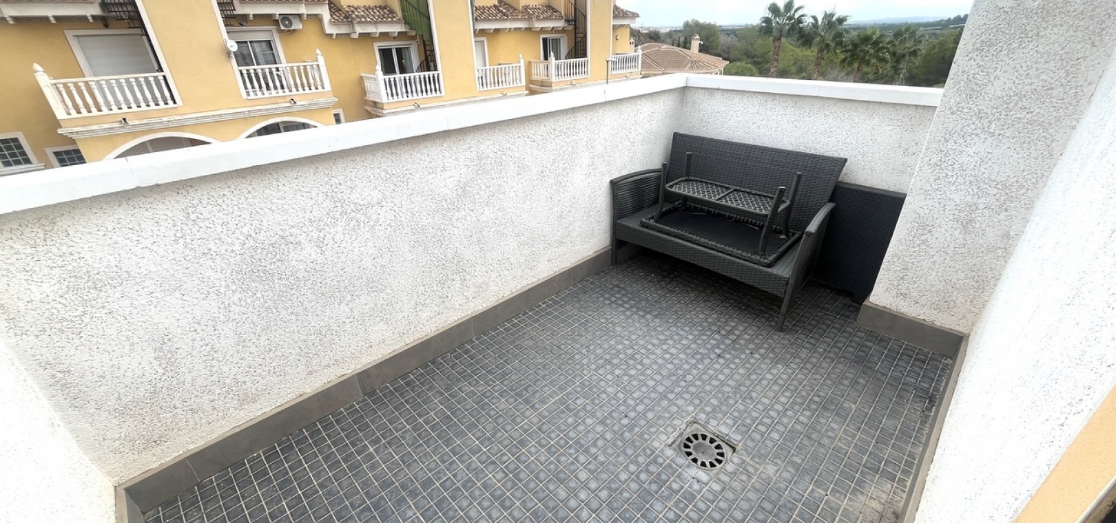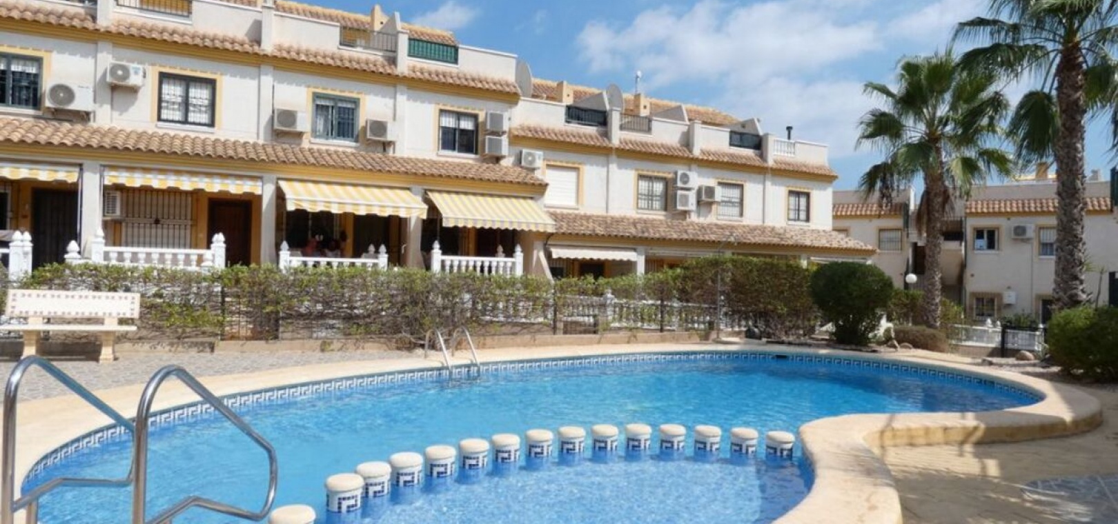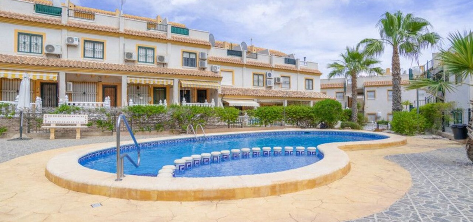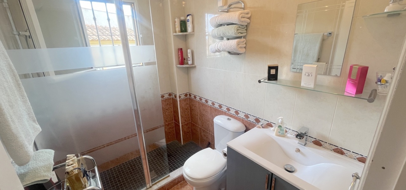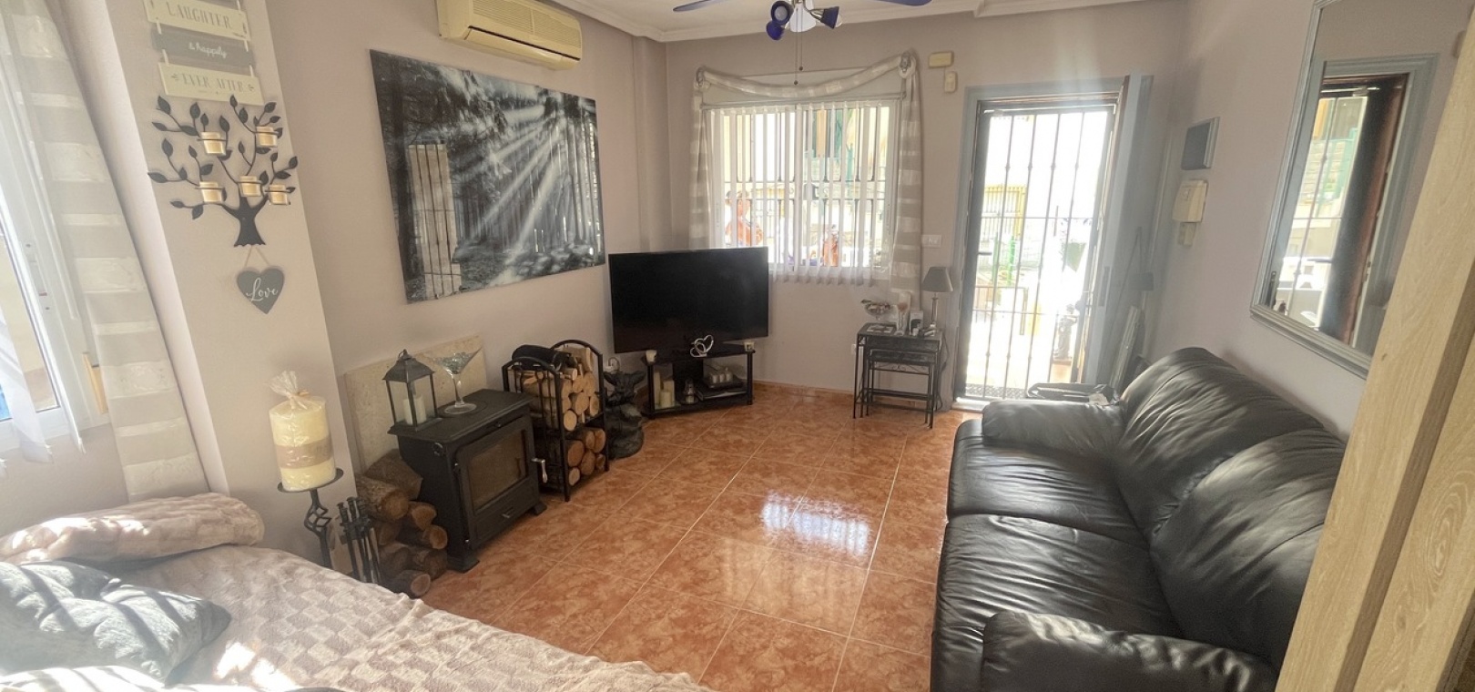 Charmante woning in San Andres, Montemar – Algorfa Ontdek deze heerlijke hoekwoning in het kleine en rustige complex San Andres in Montemar, Algorfa, met slechts 28 woningen die een prachtig gemeenschappelijk zwembad delen. Deze woning biedt privacy, gemak en een fantastische locatie en is de perfecte mix van comfort en een mediterrane levensstijl. De woning beschikt over twee ingangen, waaronder een off-road parkeerplaats die is aangepast voor een gemakkelijkere toegang. Aan de voorzijde kijkt een ruime tuin op twee niveaus direct uit op het zwembad - een ideale plek om te ontspannen of gasten te ontvangen. Binnen verwelkomt de begane grond u met een lichte en royale woonkamer die uitkomt op het terras, een gerenoveerde keuken en een handig toilet beneden. Boven vindt u twee tweepersoonsslaapkamers en een moderne familiebadkamer, gemoderniseerd met een stijlvolle inloopdouche. Helemaal boven beschikt de woning over een split-solarium met een buitendouche - één kant belegd met kunstgras om te loungen, de andere betegeld met een prachtig uitzicht op de pijnbomen. Deze woning is perfect gelegen op korte loopafstand van lokale bars, restaurants en voorzieningen. Voor ontspanning bent u in slechts 5 minuten bij de golfbaan La Finca, in 15 minuten bij de prachtige stranden van de Costa Blanca en in slechts 35 minuten rijden bij de luchthaven van Alicante. Een geweldige kans om een huis te bezitten in een rustige gemeenschap met alles wat u nodig heeft binnen handbereik.