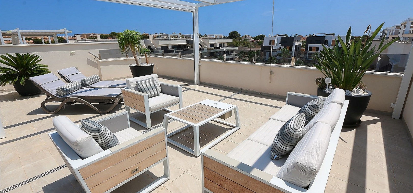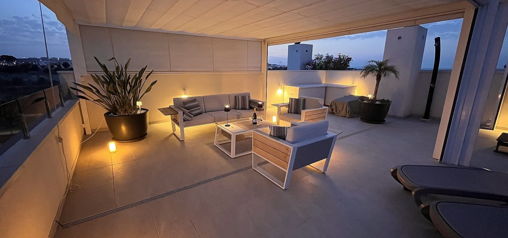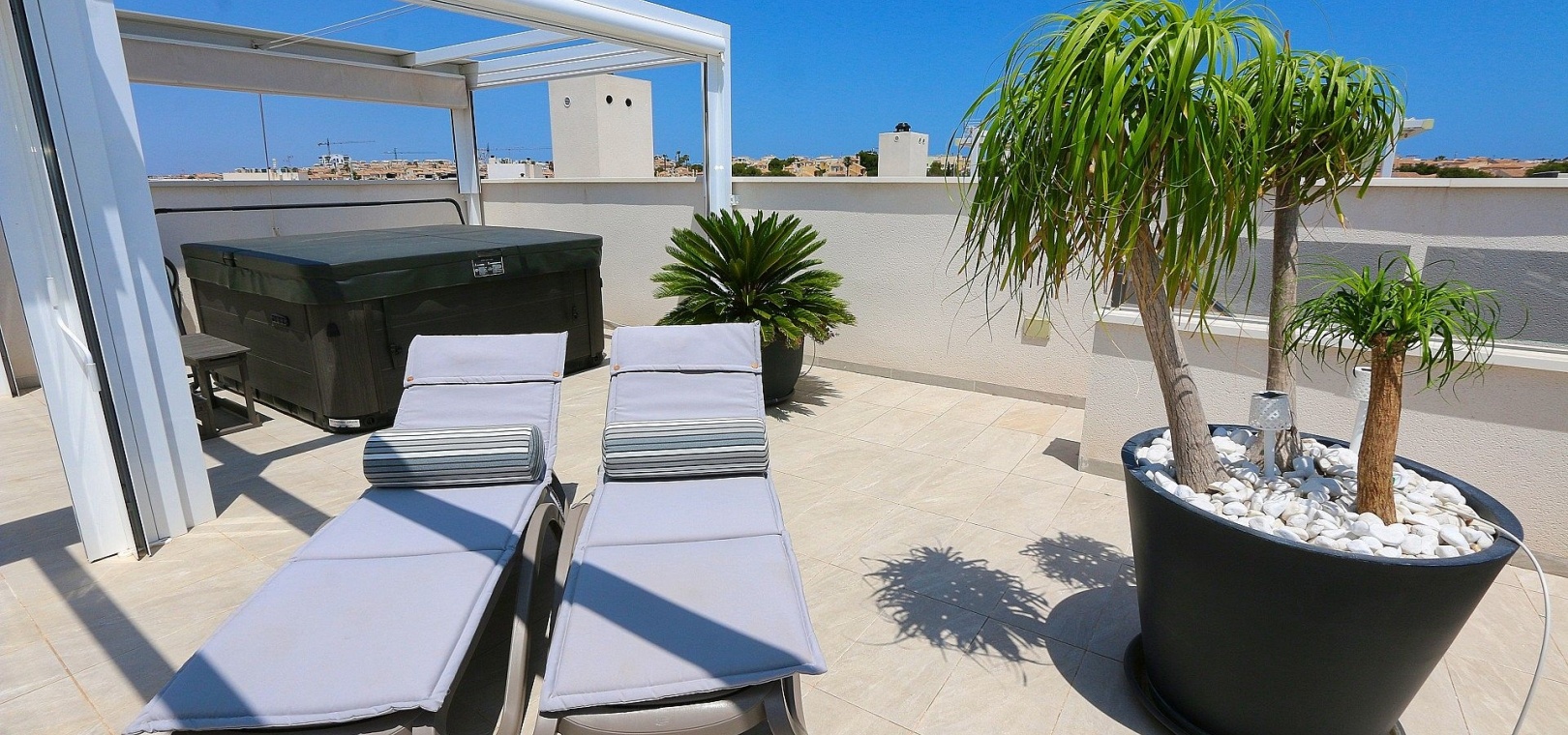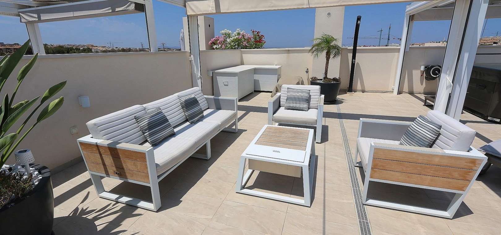 Deze woning ligt in het moderne complex Amanecer IX en beschikt over een privé dakterras , een ruim balkon en uw eigen jacuzzi : het ultieme buitenleven aan de Costa Blanca .