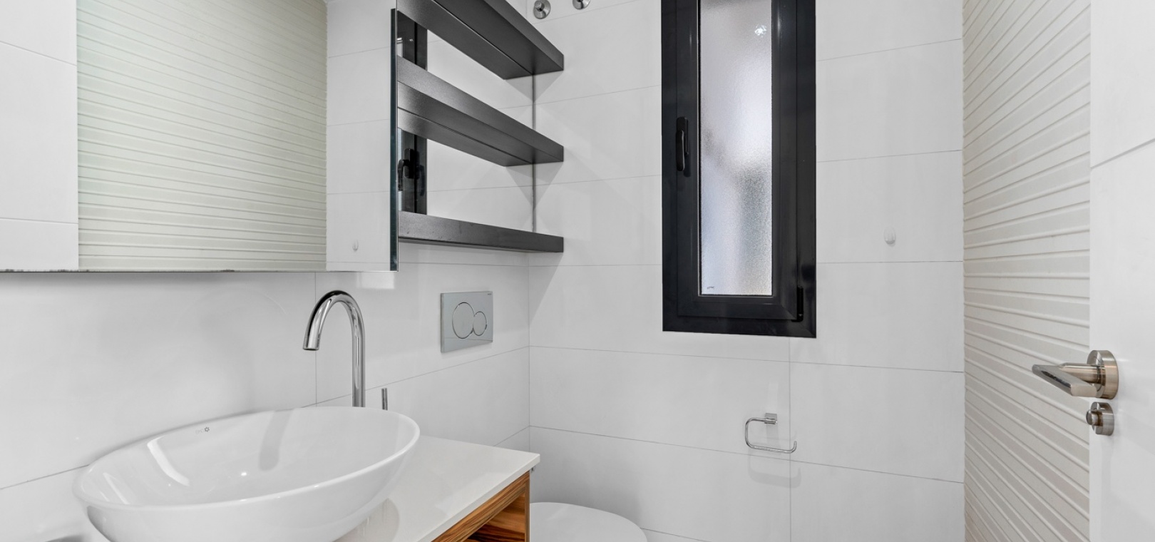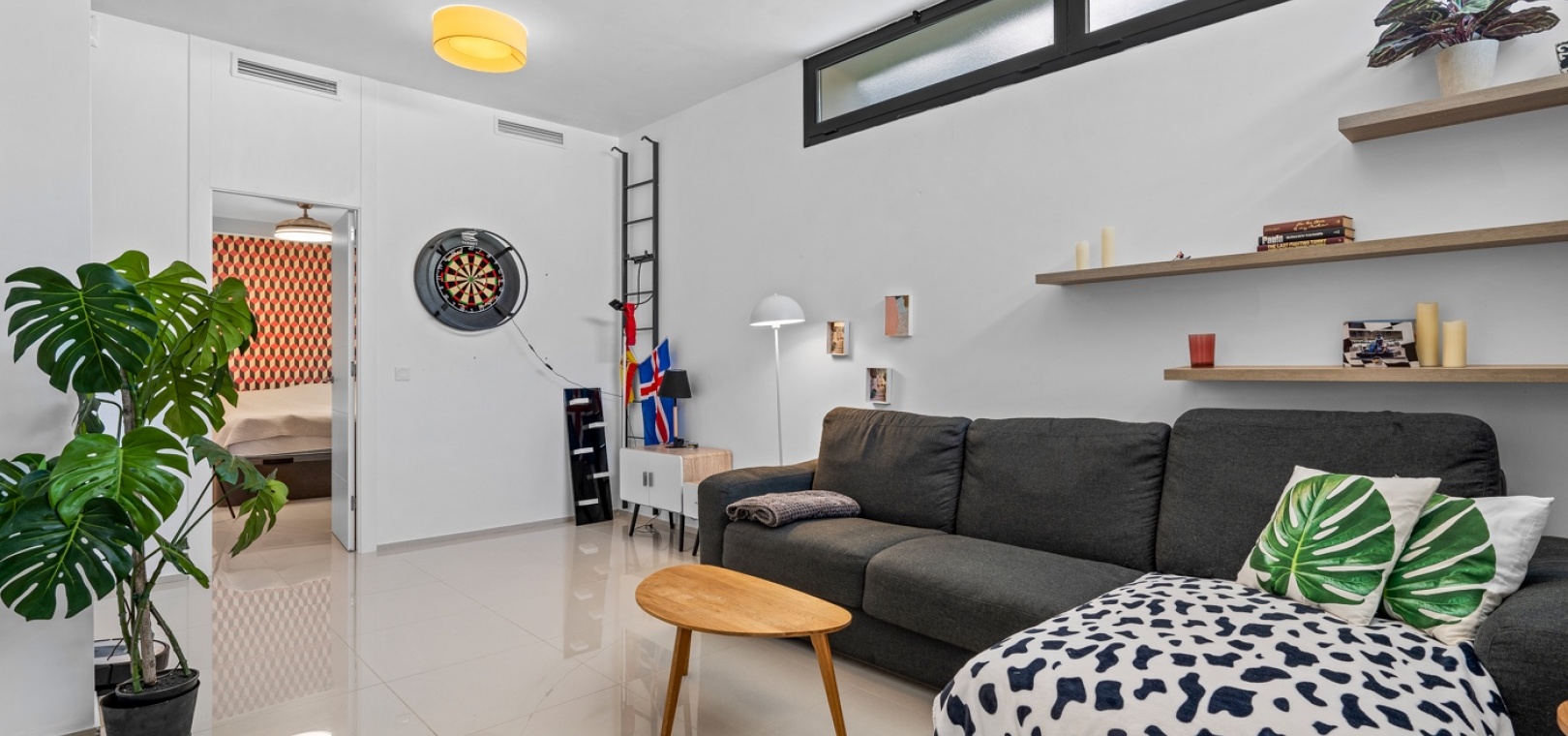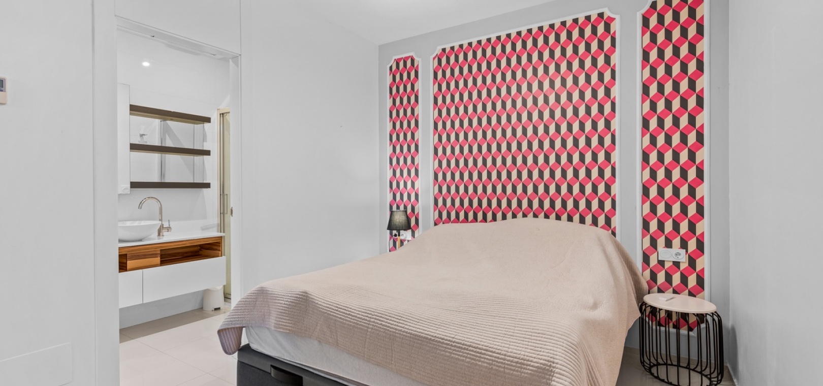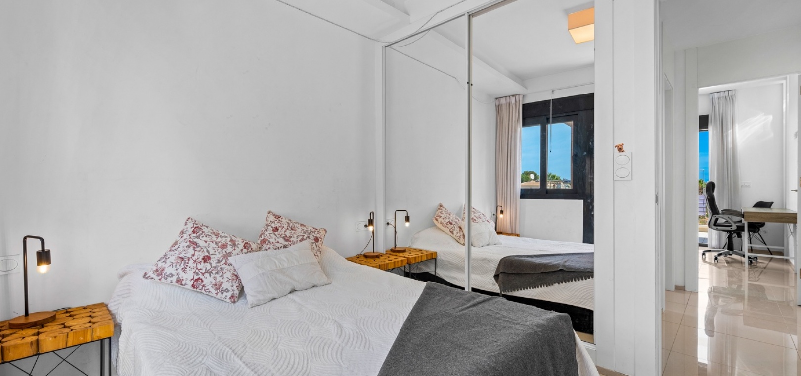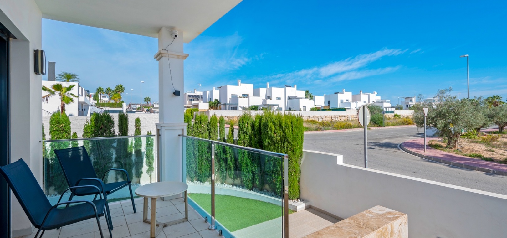 Het interieur is zorgvuldig ontworpen met functionaliteit en comfort in gedachten. Op de begane grond sluit een ruime woonkamer naadloos aan op een moderne open keuken. Beide ruimtes komen direct uit op de privétuin – de perfecte plek om te genieten van uw ochtendkoffie of te dineren bij zonsondergang in de warme Spaanse bries. Op deze verdieping bevinden zich ook een gastentoilet en een praktische bijkeuken.