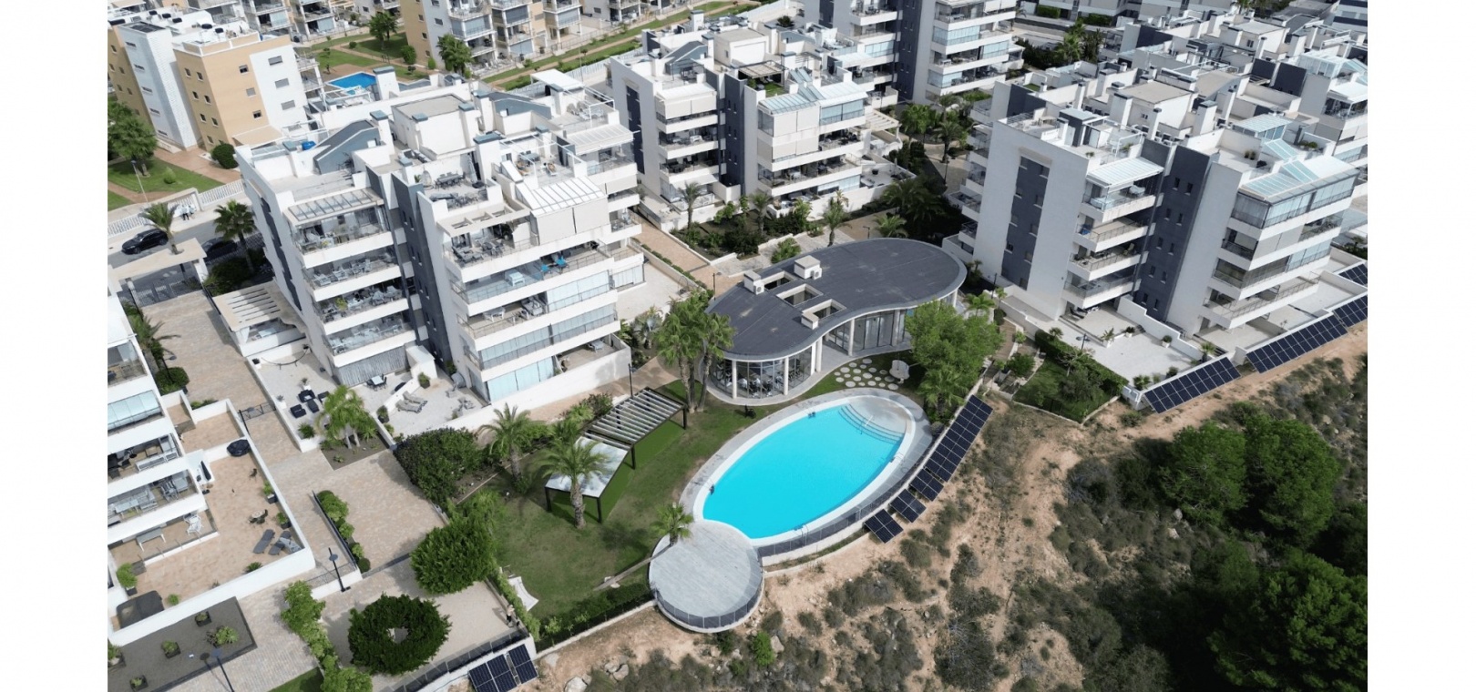 Het Green Hills-complex beschikt over drie zwembaden (twee buiten en één verwarmd binnen), een sauna en een fitnessruimte.Dankzij zonnepanelen voor de hele gemeenschap zijn de gemeenschapskosten lager.
