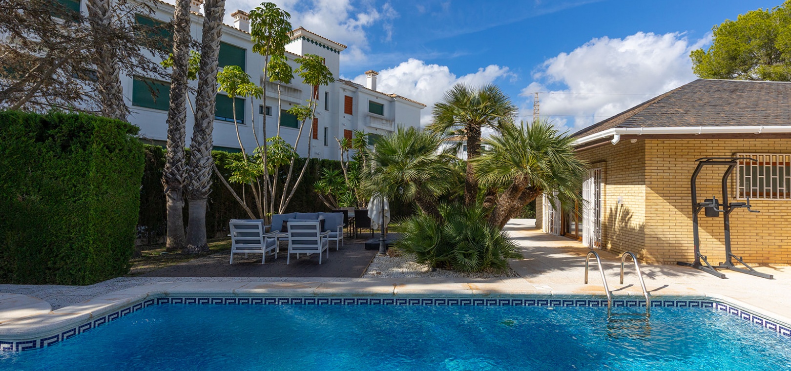 Deze prachtige vrijstaande woning is gelegen in de gewilde wijk Las Filipinas in Villamartín , op een ruim perceel van 1.510 m² dat uitzonderlijke privacy en een fantastische buitenomgeving biedt.