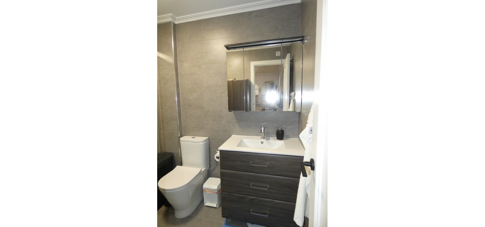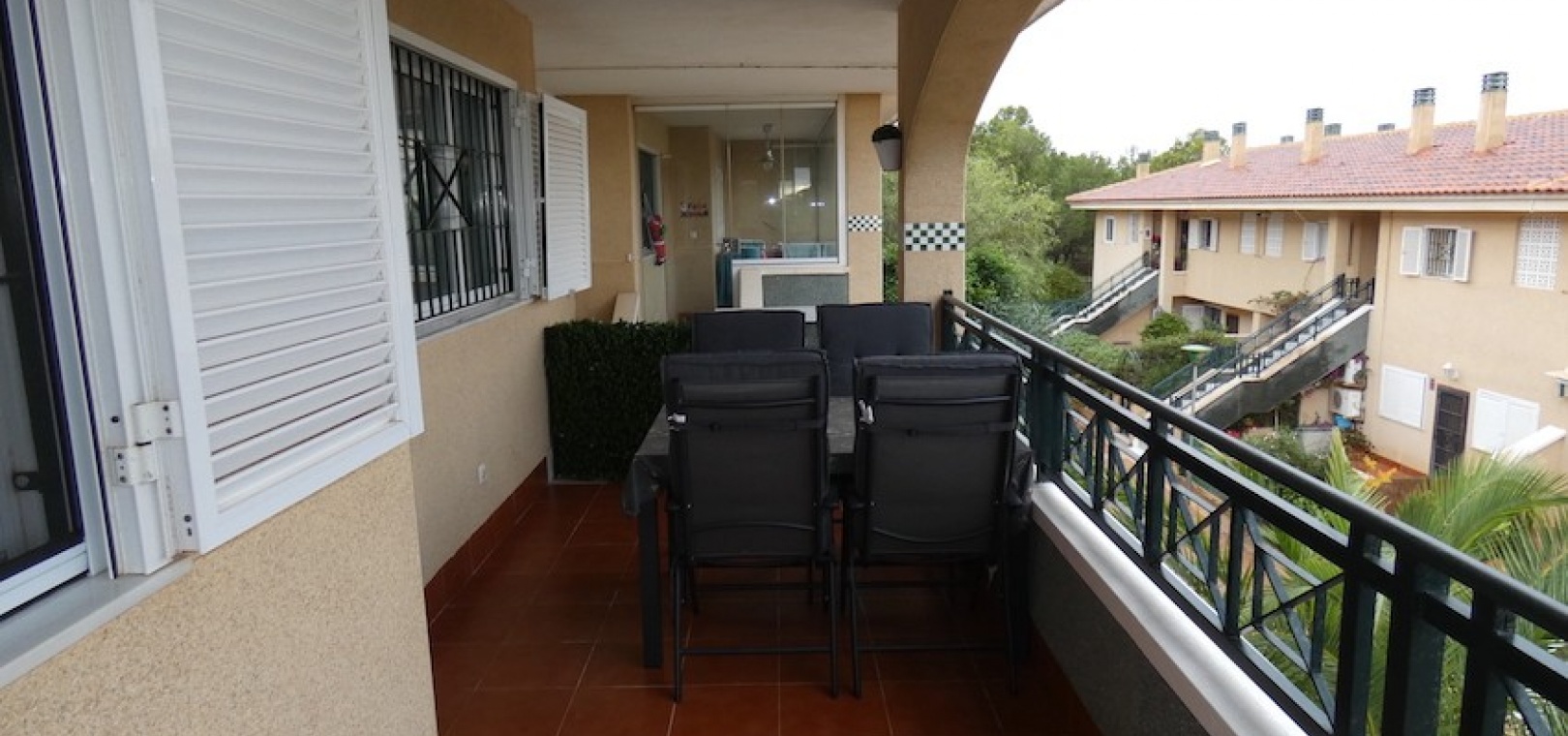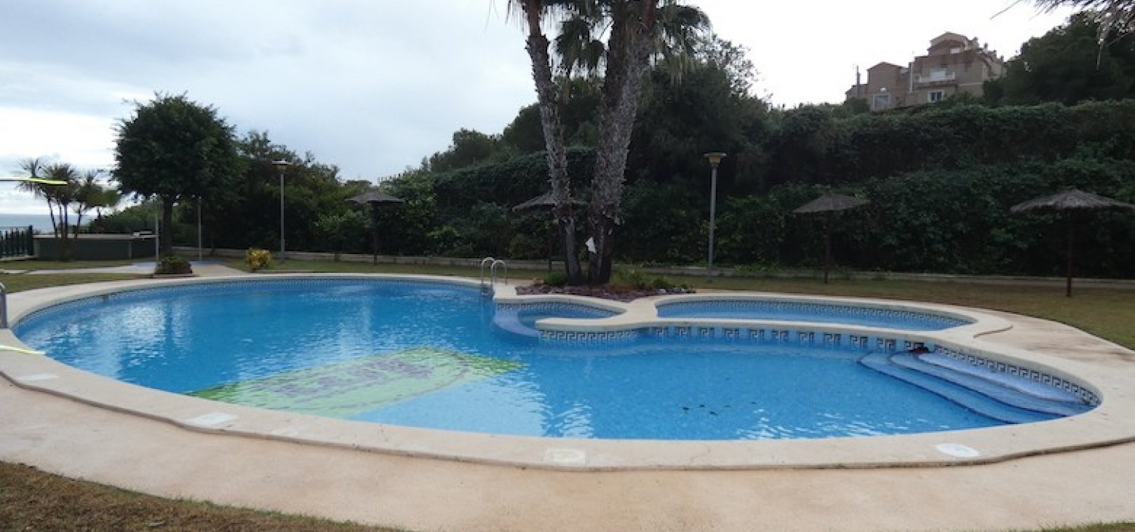 Het appartement bevindt zich in een afgesloten complex met toegang tot een prachtig gemeenschappelijk zwembad en tuinen met uitzicht op zee. Het appartement is door de huidige eigenaar gemoderniseerd en beschikt over een ruim terras aan de voorzijde met uitzicht op zee. Binnen vindt u de woon-/eetkamer, een compacte keuken en een bijkeuken. Het appartement heeft tevens twee slaapkamers, een badkamer en een berging. Het appartement is rustig gelegen in het complex, maar op slechts één minuut lopen van het gemeenschappelijke zwembad.