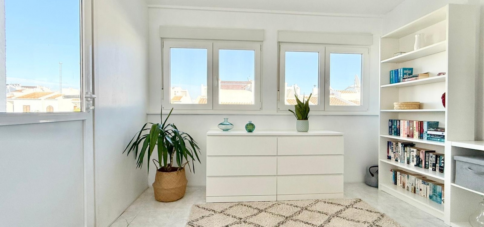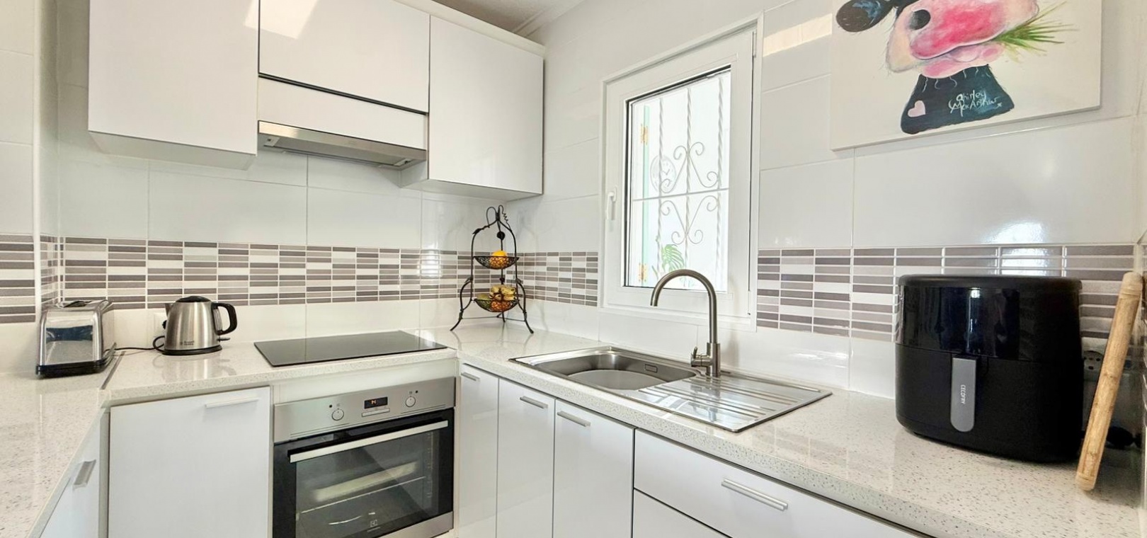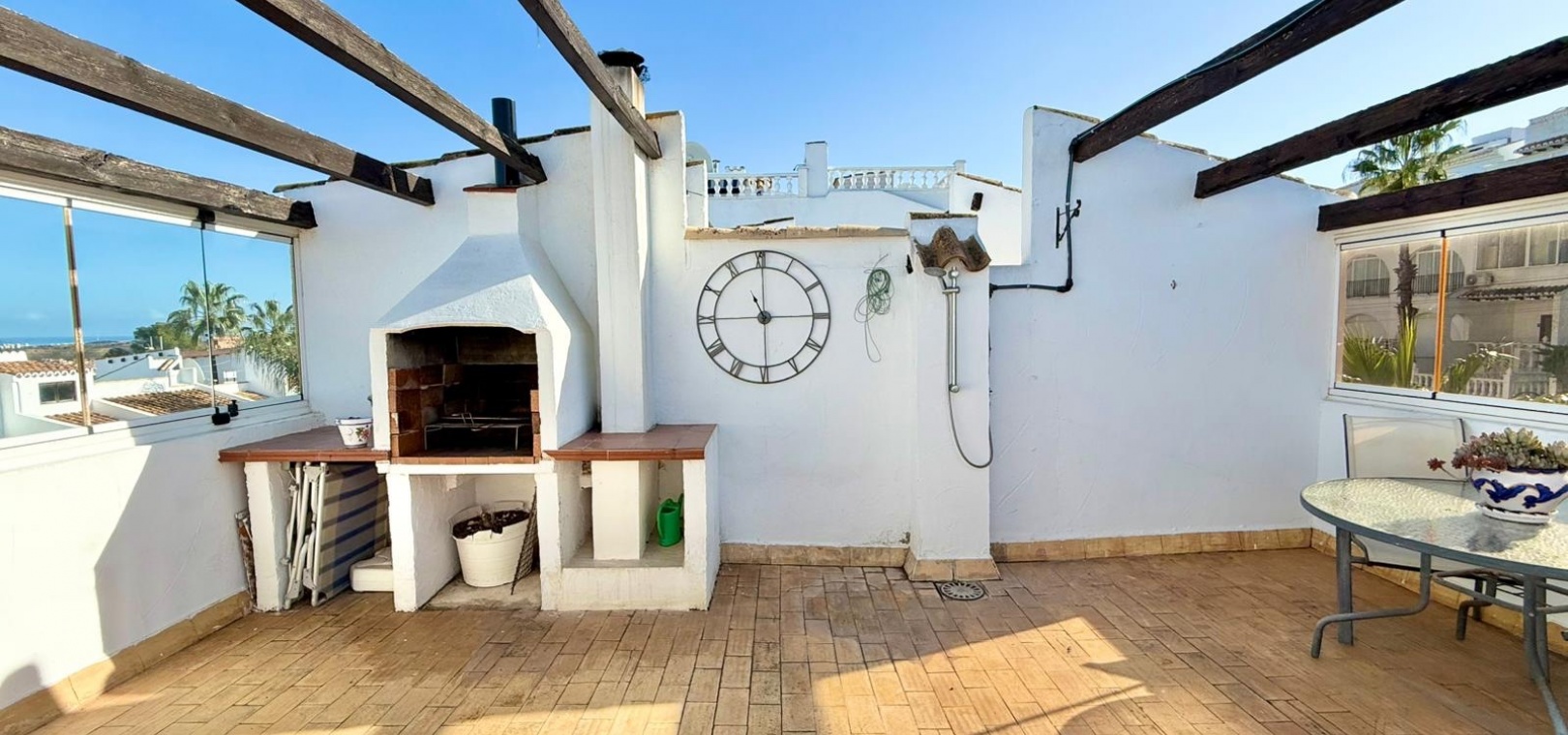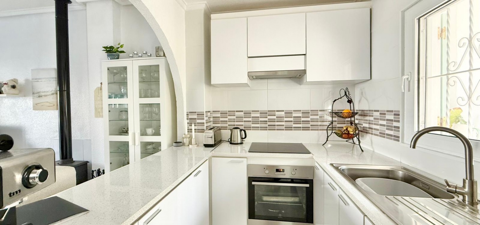 Deze prachtig gerenoveerde hoekwoning met twee slaapkamers wordt te koop aangeboden in het hart van Ciudad Quesada, een levendige en gewilde woonwijk aan de Costa Blanca. Gelegen nabij het stadscentrum, combineert deze woning klassieke Spaanse charme met moderne upgrades. Met een weids uitzicht op zee vanaf het verhoogde solarium en een gemeenschappelijk zwembad, biedt deze woning een uitzonderlijke kans voor zowel permanent wonen als vakantiegebruik. Binnen verwelkomt de woning u met een doordachte indeling die ruimte en licht optimaal benut. Twee goed geproportioneerde slaapkamers en stijlvolle woonruimtes worden aangevuld door een volledig uitgeruste keuken en eigentijdse afwerkingen. Het interieur loopt naadloos over in de buitenruimtes – perfect om te ontspannen of te entertainen. Het verhoogde solarium biedt een panoramisch uitzicht en het hele jaar door zon, waardoor het een opvallend kenmerk van deze woning is. Deze residentie biedt ook het praktische comfort en de lifestyle-voorzieningen waar de hedendaagse koper naar op zoek is. Geniet van privé buitenactiviteiten met uw gemeenschappelijke zwembad en terras, en gemakkelijke toegang tot lokale voorzieningen, cafés, winkels en diensten op slechts een steenworp afstand. Naast de aantrekkelijkheid als woonhuis, maakt de locatie van de woning het een aantrekkelijke optie voor verhuurinvesteringen of seizoensverblijven aan de Middellandse Zeekust. Gerenoveerde hoekwoning met 2 slaapkamers in Ciudad Quesada, Costa Blanca. Dichtbij voorzieningen, restaurants en diensten in het centrum. Gemeenschappelijk zwembad en ruime buitenruimte om te ontspannen en te entertainen. Solarium met uitzicht op zee – ideaal om van de zon te genieten. Modern interieur met open woonruimtes en hoogwaardige afwerking. Goed doordachte indeling met twee slaapkamers en praktische woonruimtes. Perfect als permanente woning, vakantiehuis of vakantiewoning. Op loopafstand van lokale winkels, cafés en voorzieningen.