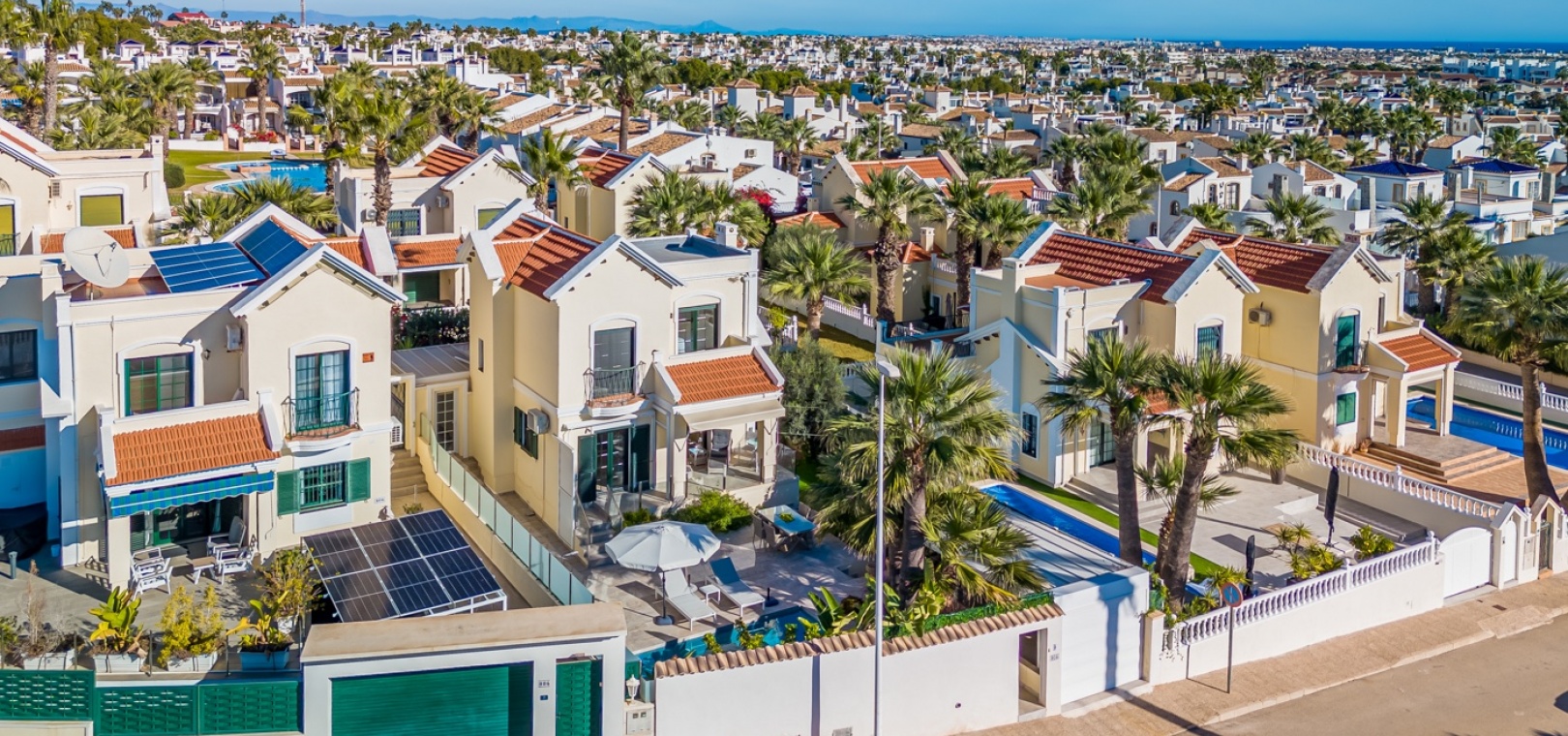 Deze vrijstaande villa is gelegen in de charmante woonwijk Los Dolses en combineert comfort, functionaliteit en de mediterrane levensstijl . Gelegen aan een rustige doodlopende straat met alleen doorgaand verkeer, biedt de villa privacy en een vredige omgeving .