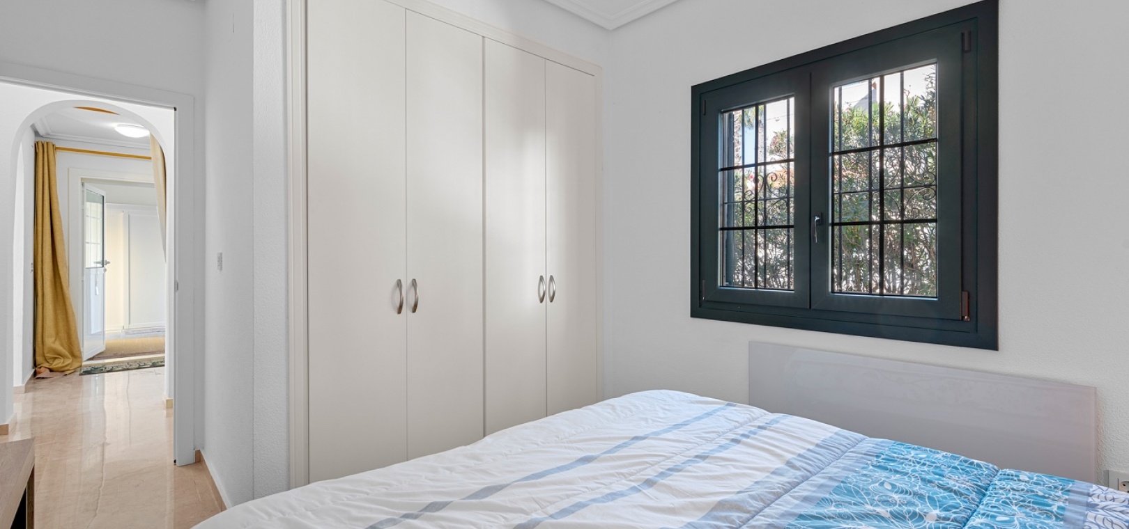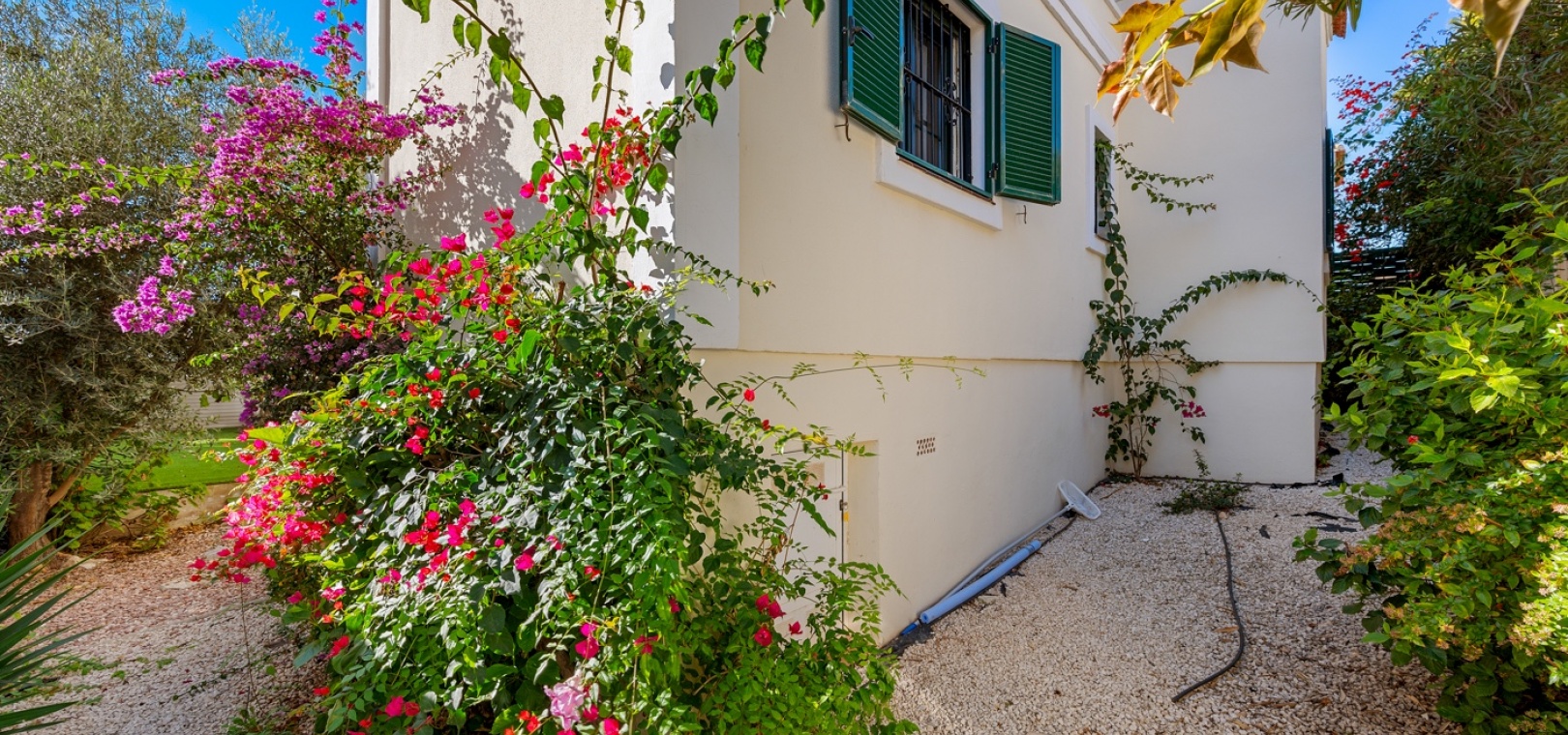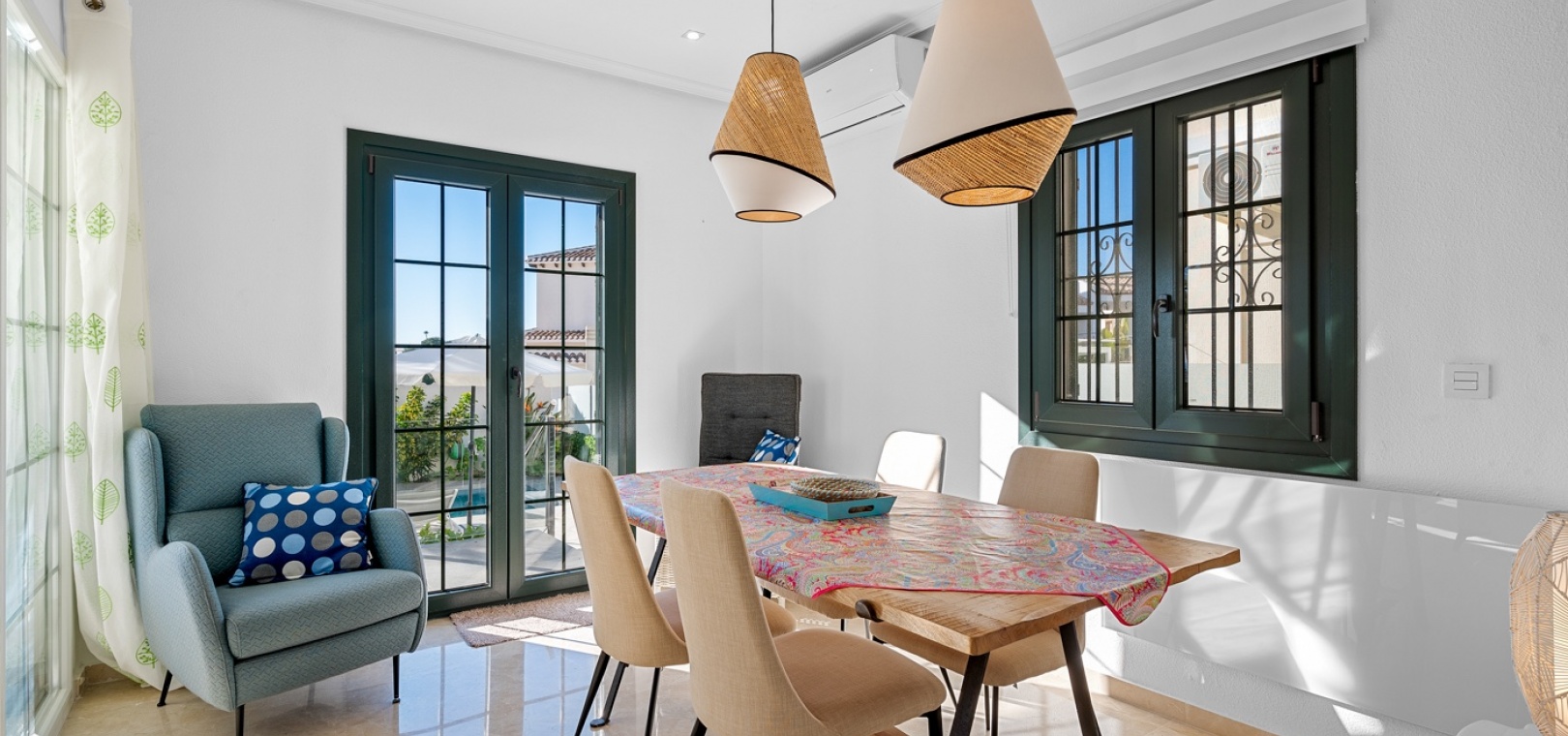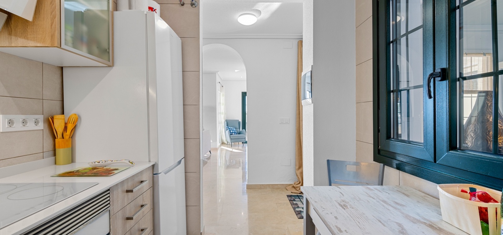 De villa beschikt over drie ruime slaapkamers en twee moderne badkamers , met een aparte, praktische keuken in het hart van de woning – ideaal om te koken in een lichte, goed geventileerde ruimte. De woning is gedeeltelijk gemeubileerd en is voorzien van airconditioning in de woonkamer, verwarmingspanelen en rolluiken voor comfort het hele jaar door.